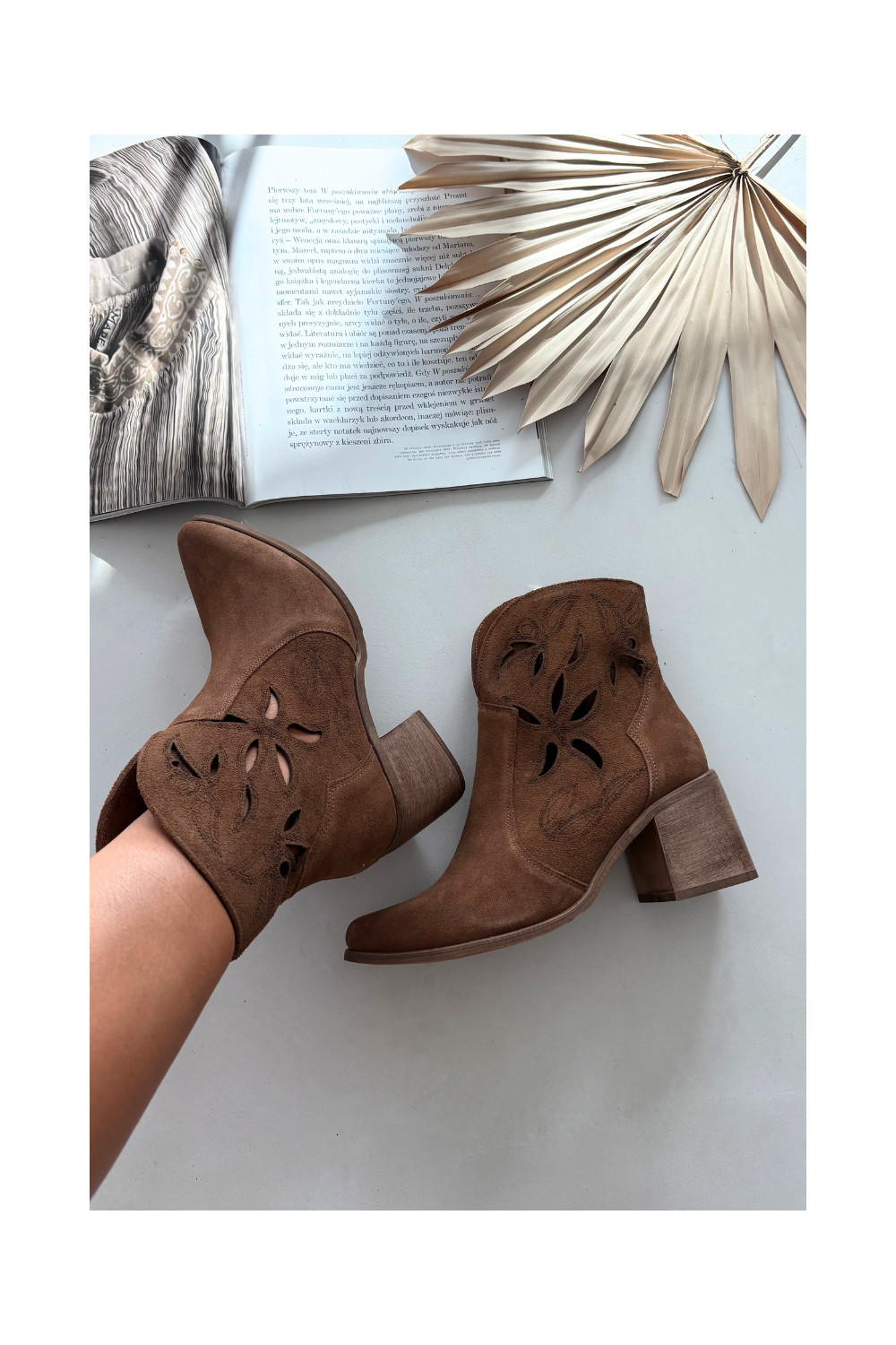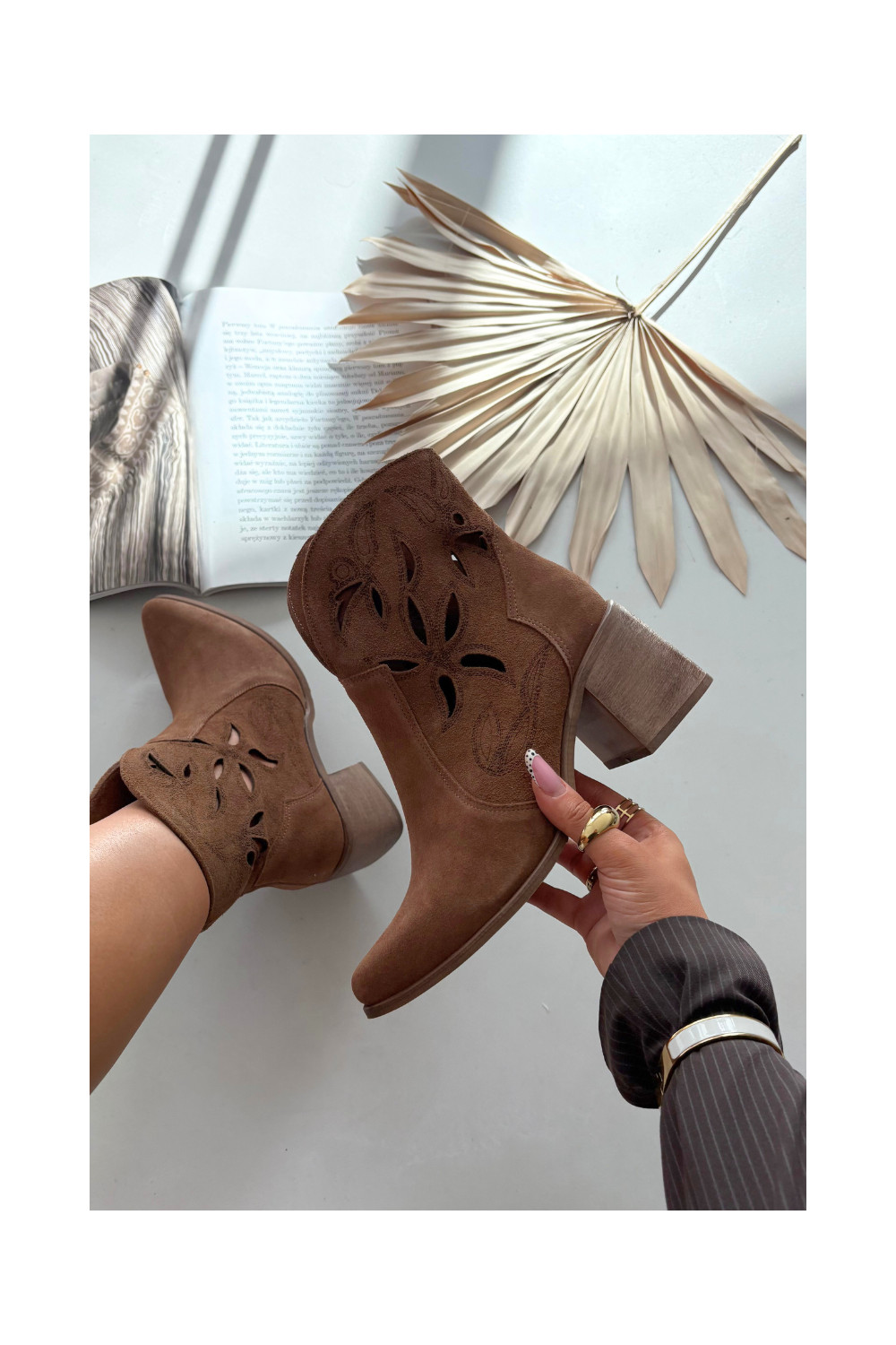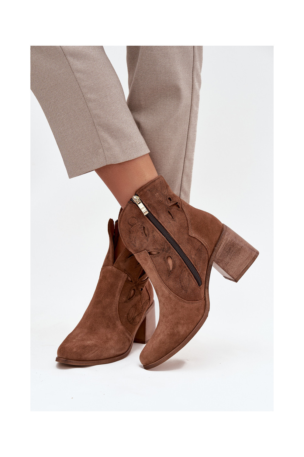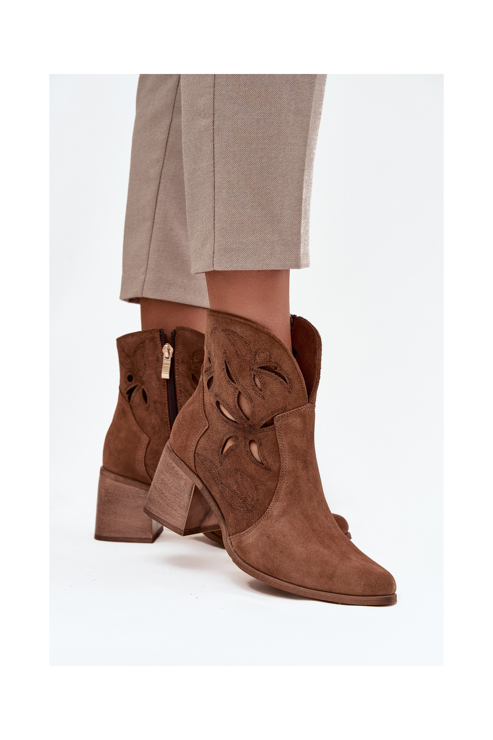Dámské podpatky s ažurovými prvky Z Naturalnego Zamszu s podpatky Zazoo 3690 hnědá