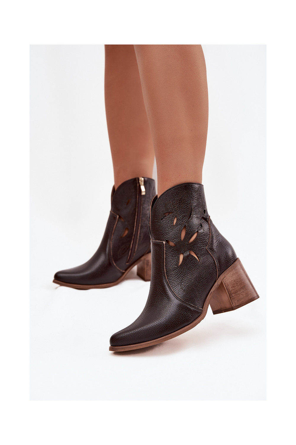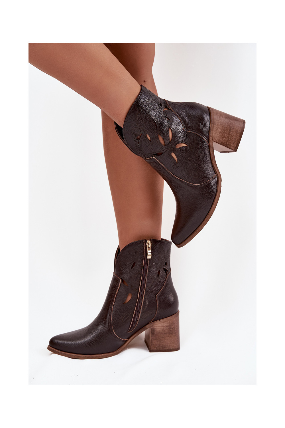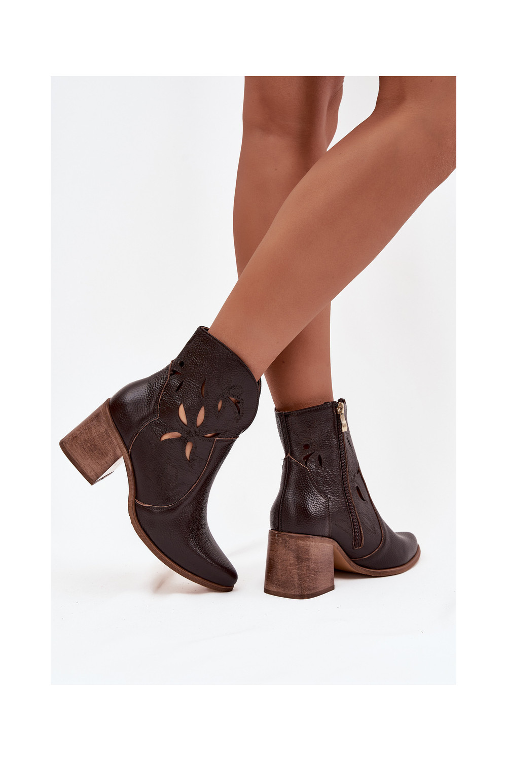 Dámské podpatky s ažurovými prvky Z Naturalnej Skóry s podpatky Zazoo 3690 Czekoladowe