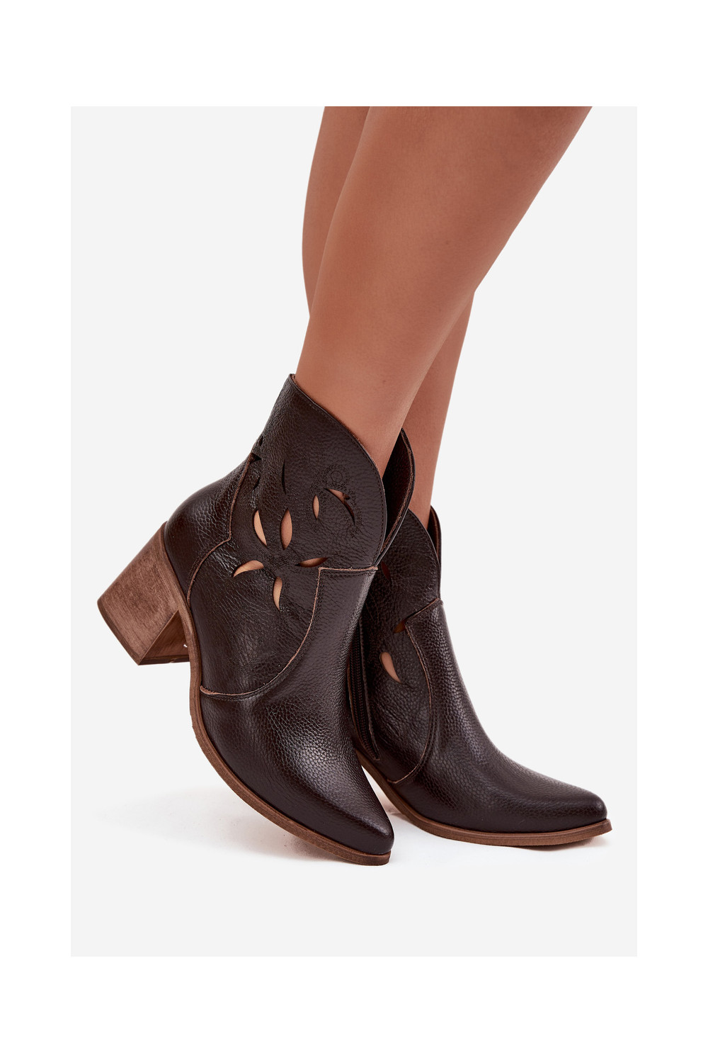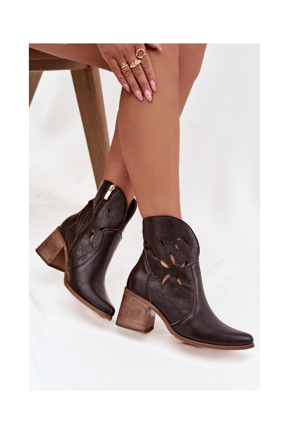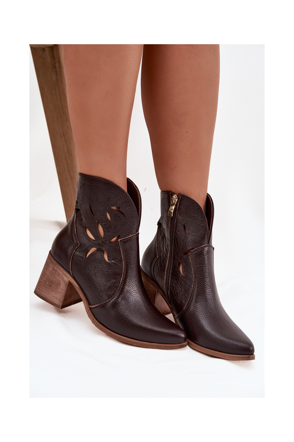 Dámské podpatky s ažurovými prvky Z Naturalnej Skóry s podpatky Zazoo 3690 Czekoladowe