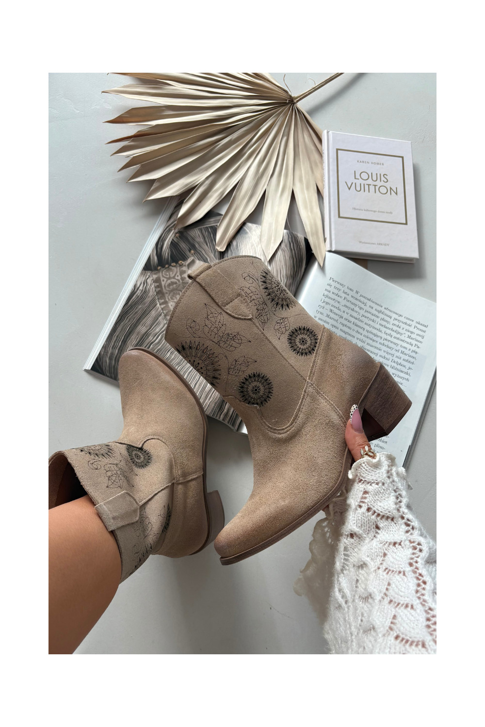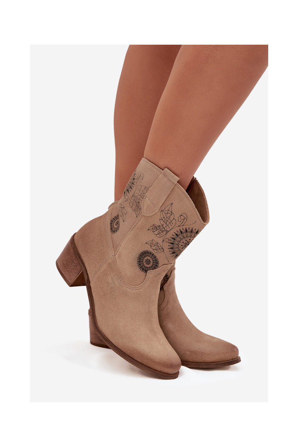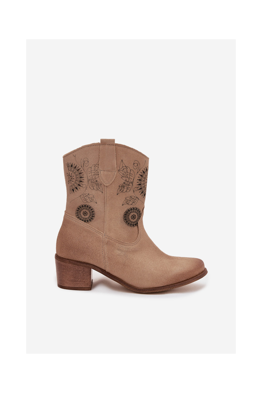 ze semiše Dřeváky s ažurovými prvky s podpatky Zazoo 3844 béžové