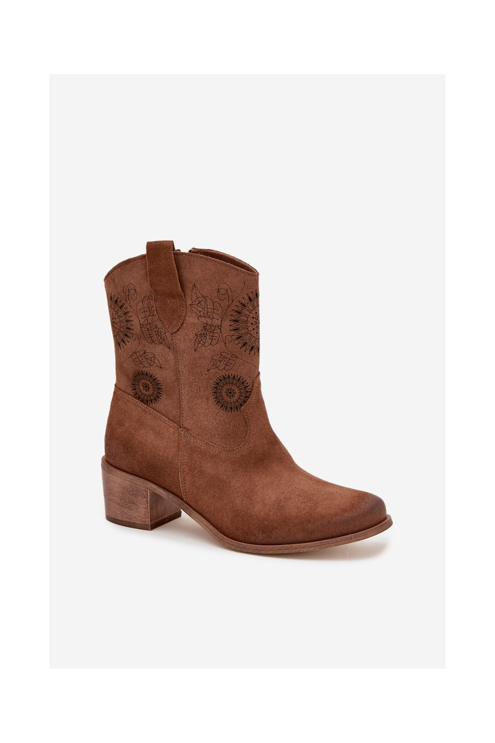 ze semiše Dřeváky s ažurovými prvky s podpatky Zazoo 3844 hnědá