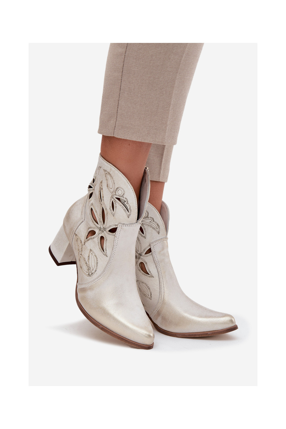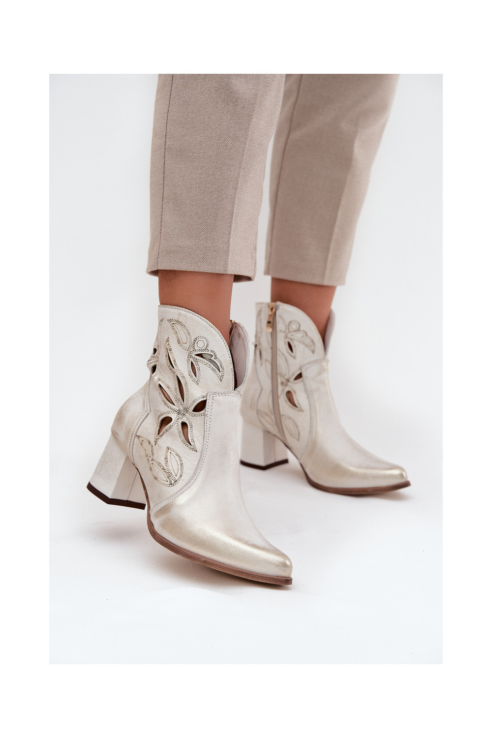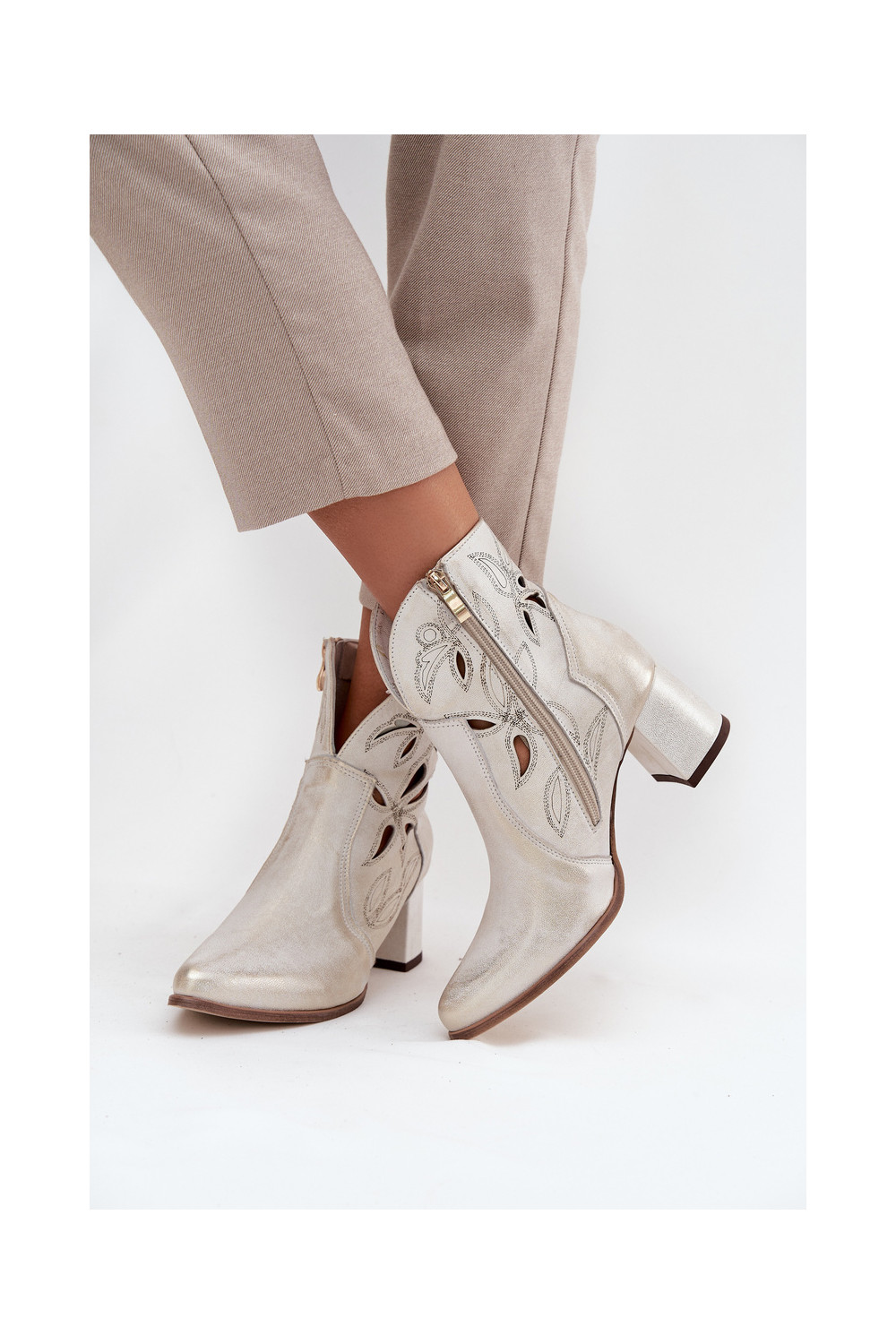 s ažurovými prvky Dámské podpatky Zazoo 3647 zlaté barvy Przecierany