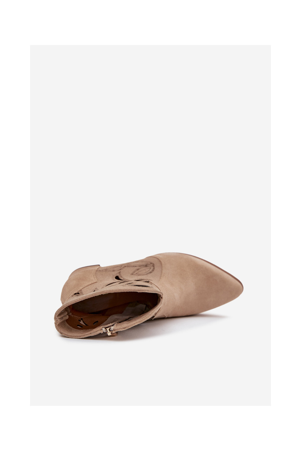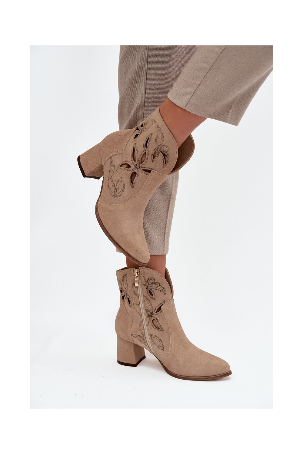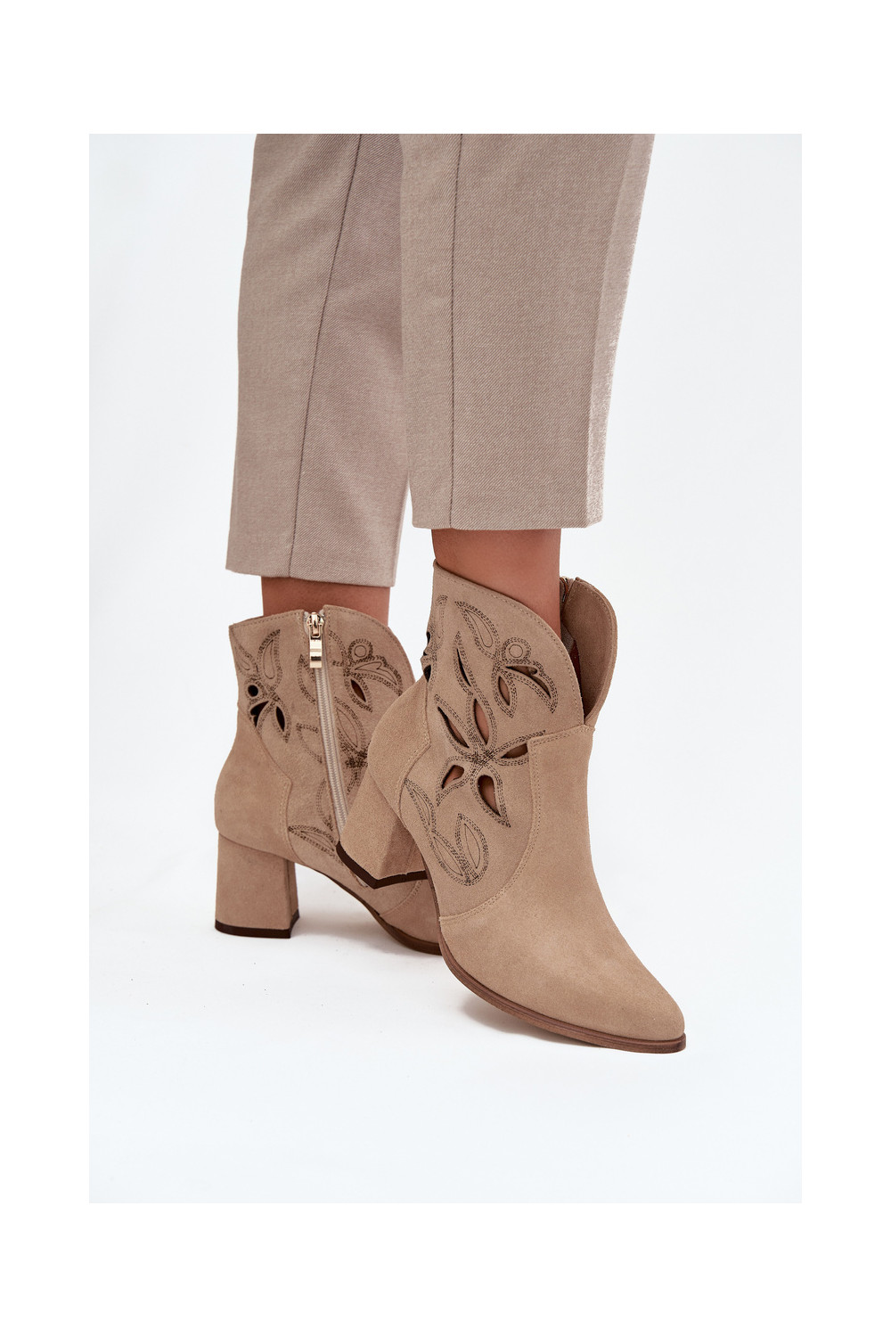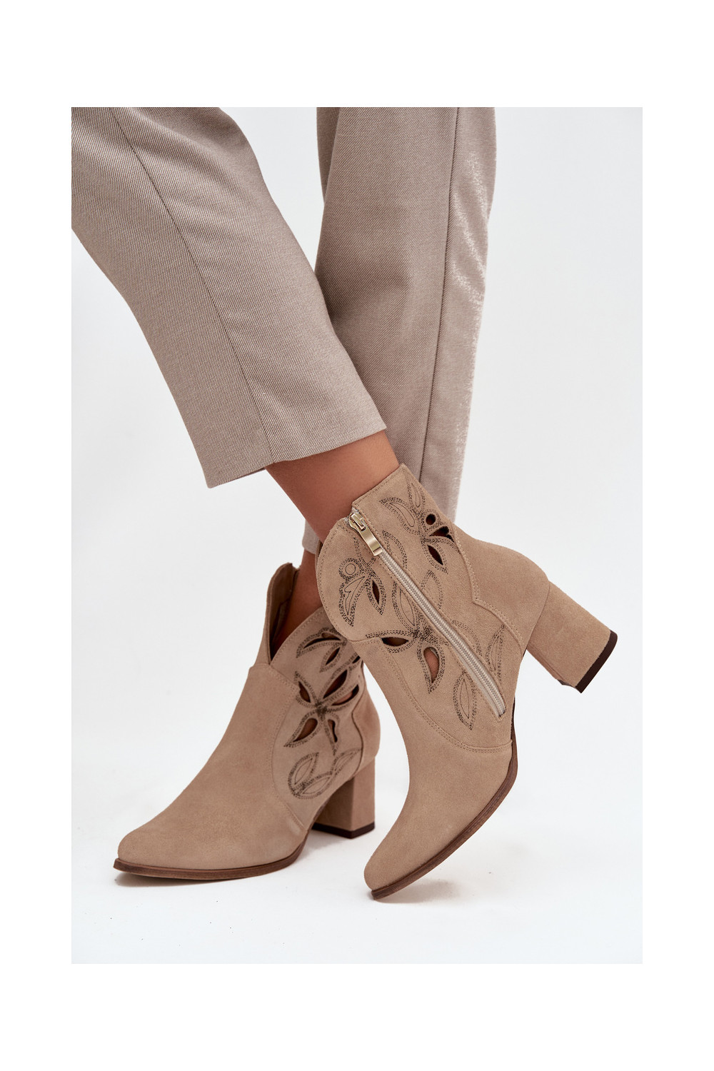 Prolamované semišové kotníkové boty s podpatkem Zazoo 3647 béžové