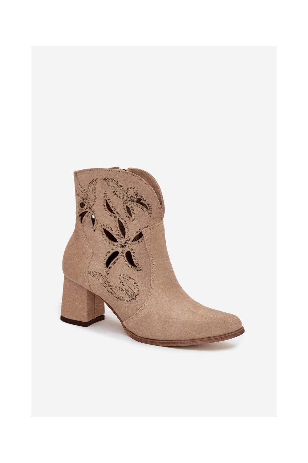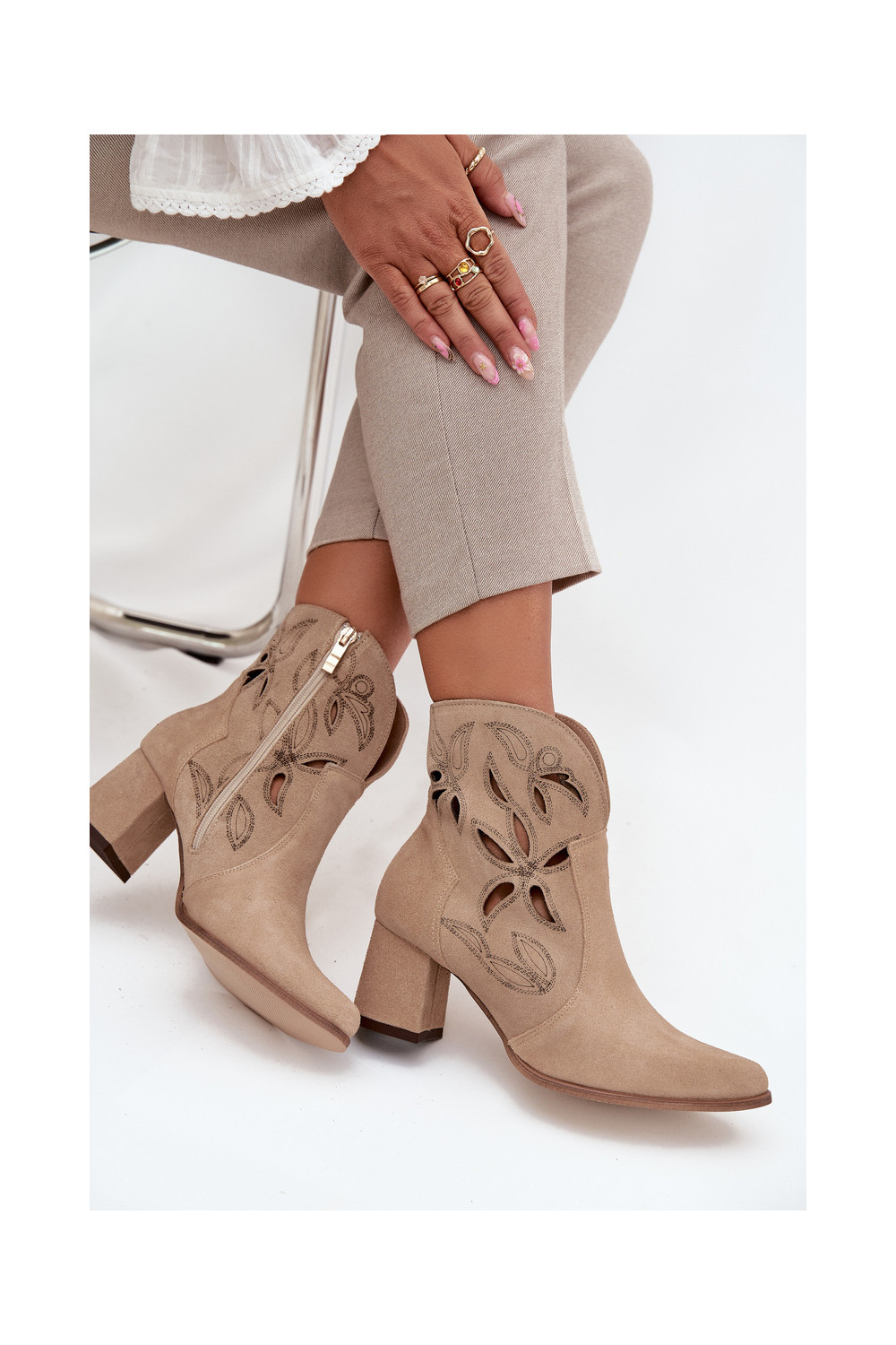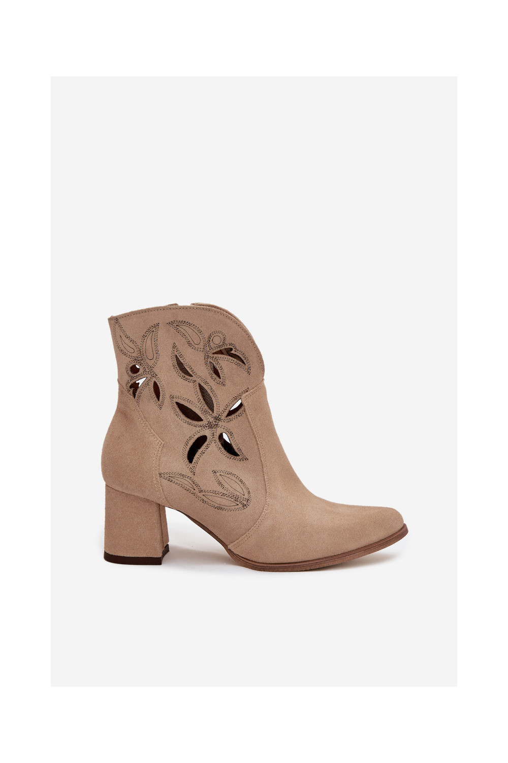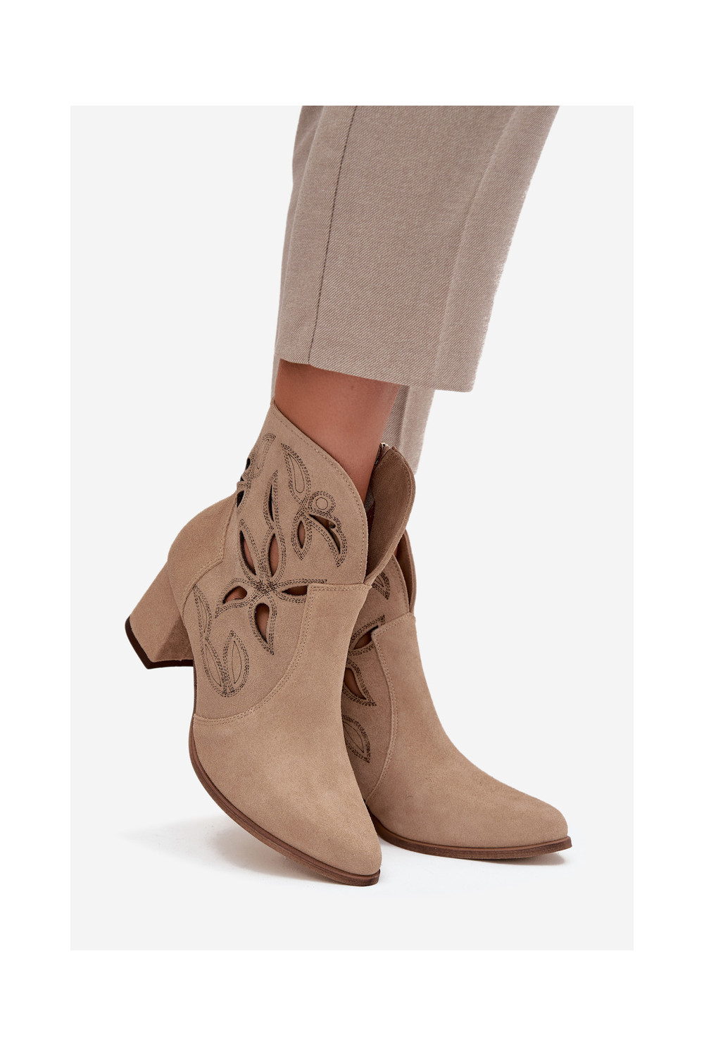 Prolamované semišové kotníkové boty s podpatkem Zazoo 3647 béžové