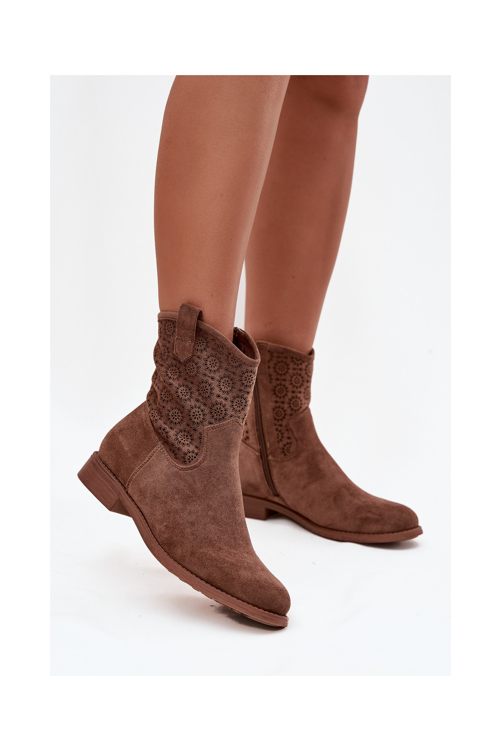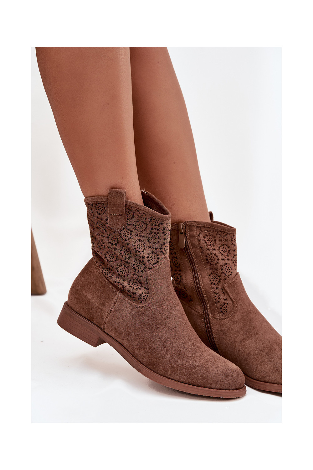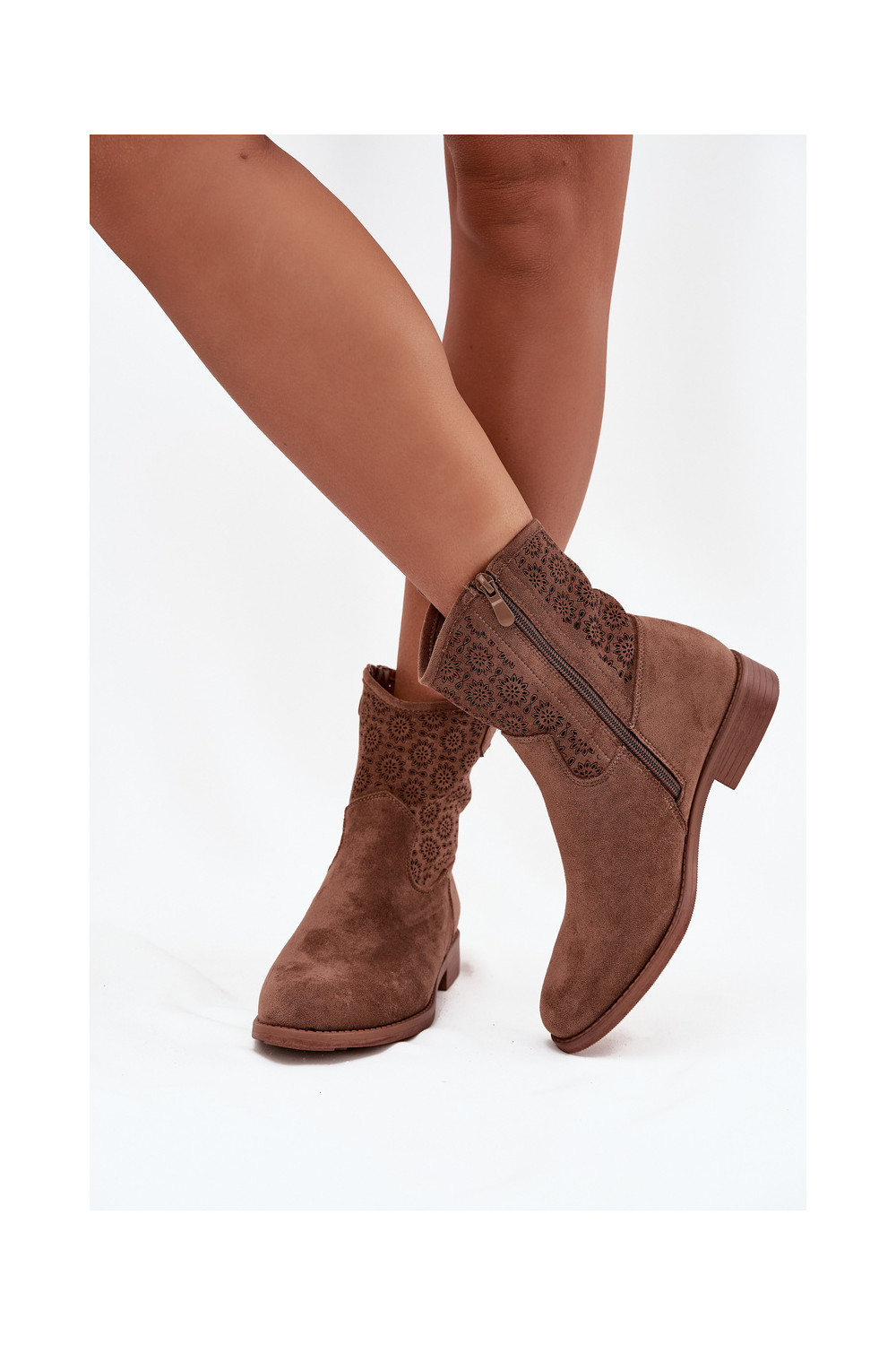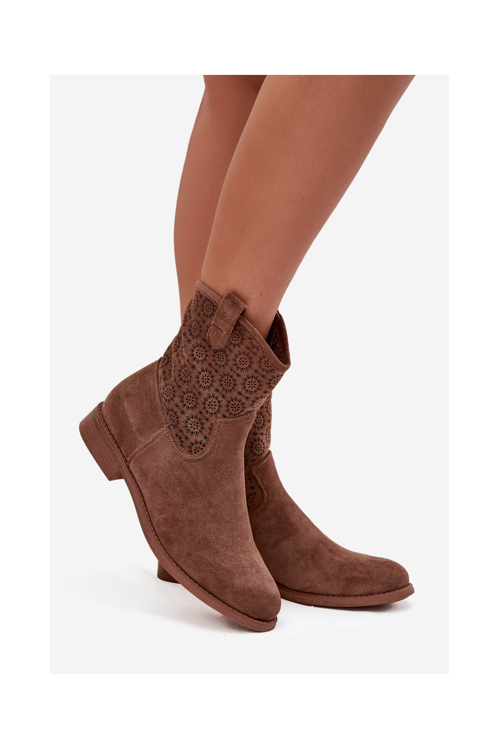 Dámské podpatky s širokými podpatky s ažurovými prvky S.Barski HY52-530 hnědá