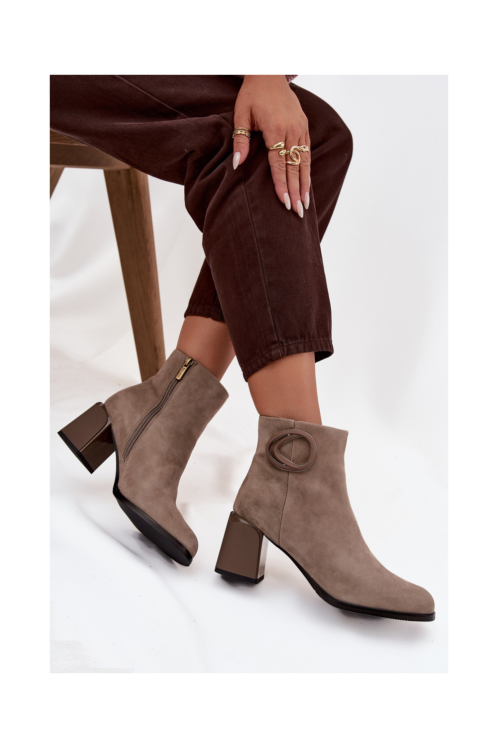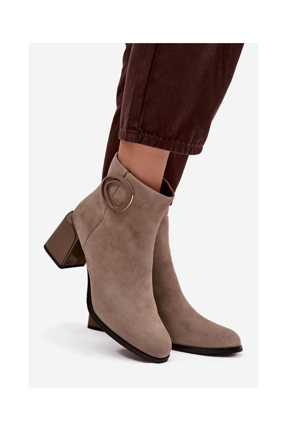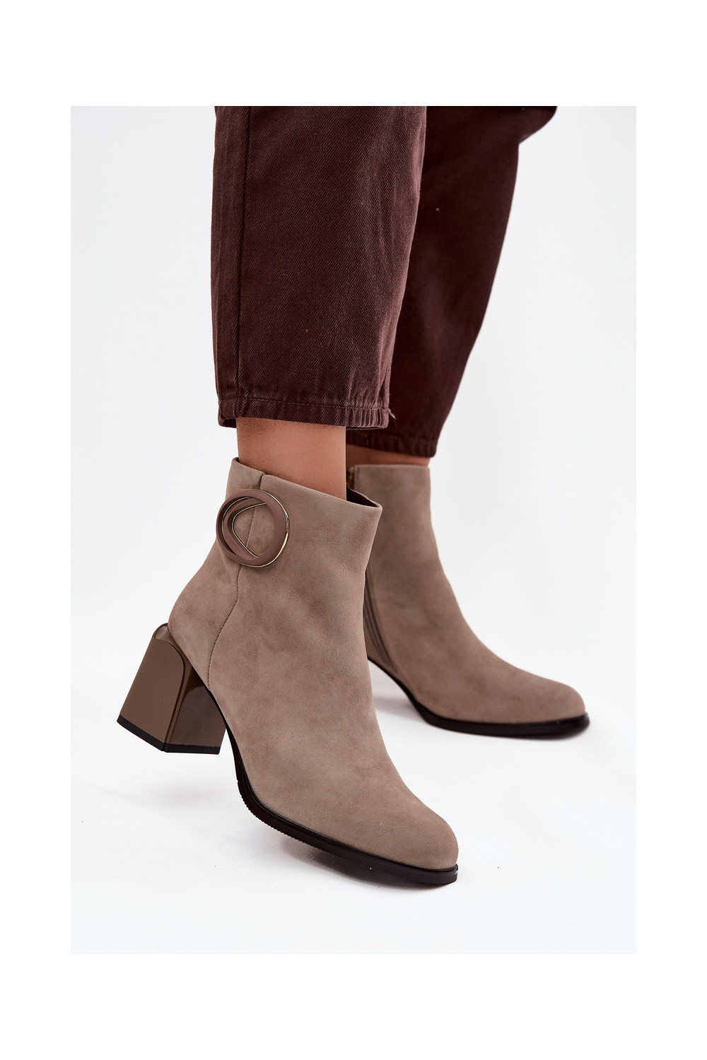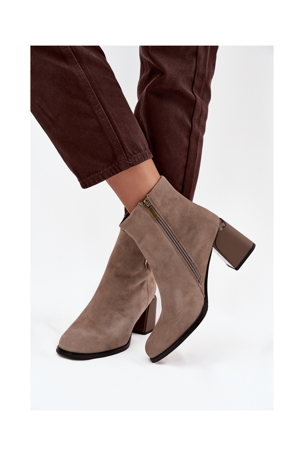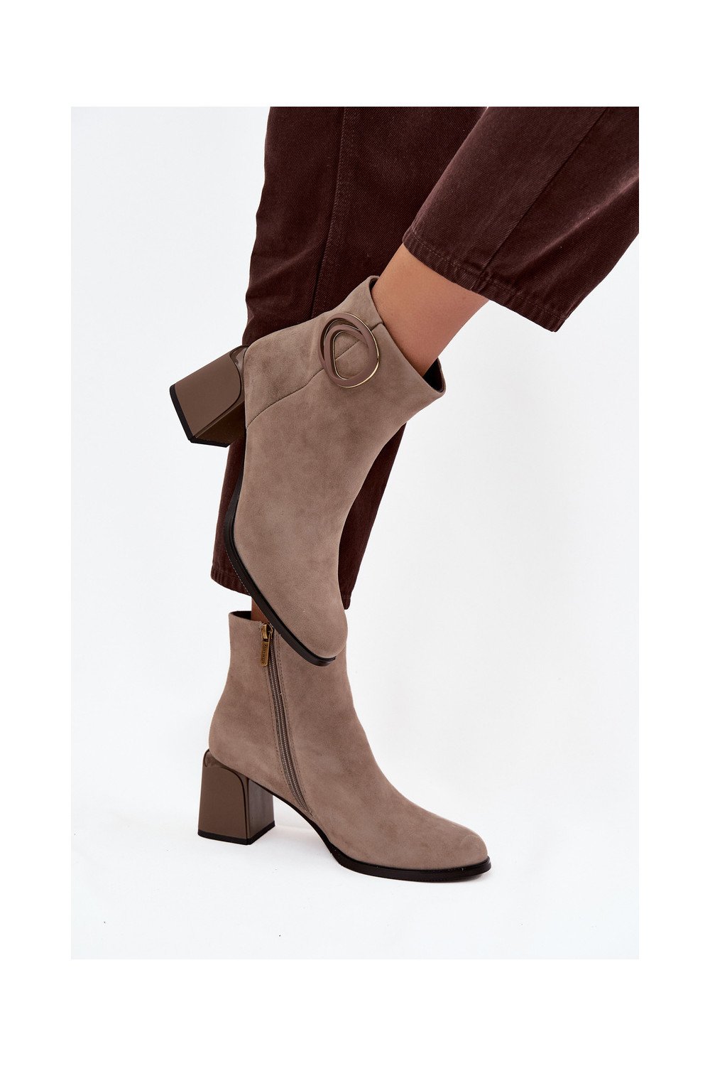 ze semiše Teplé boty na podpatku Detalem Artiker 57C0014 béžové