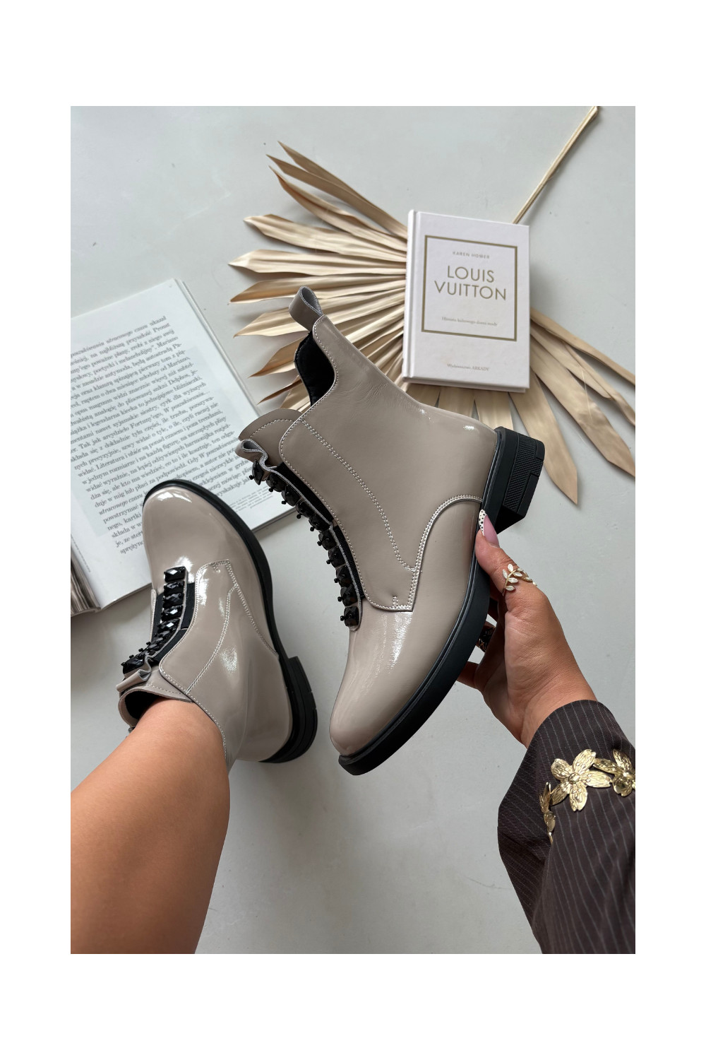 s efektem laku Dámské podpatky Z Naturalnej Skóry D&A MR52-108 béžové