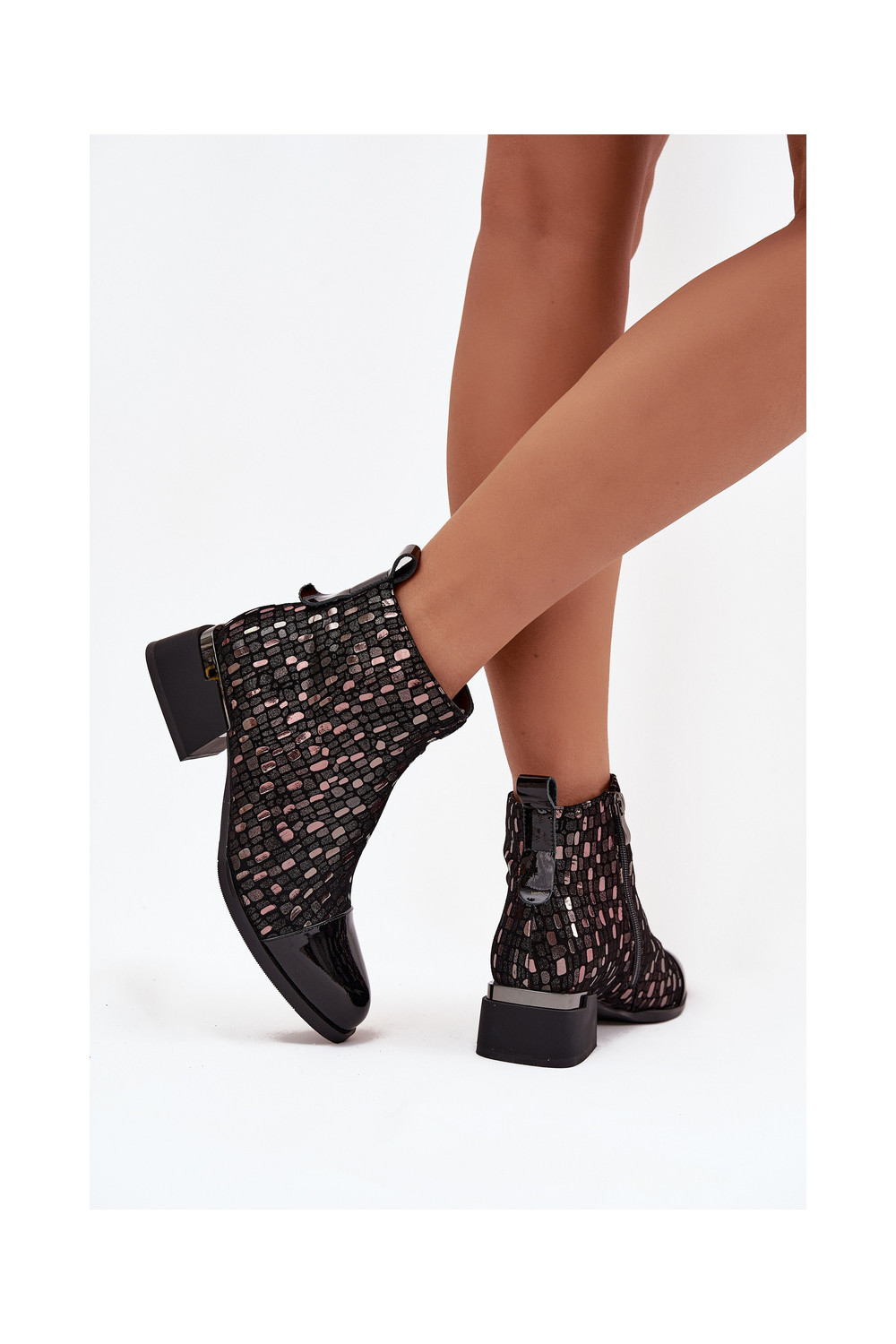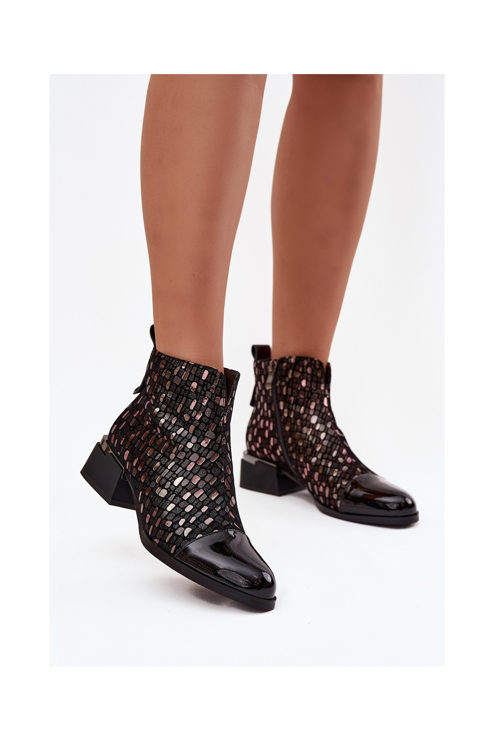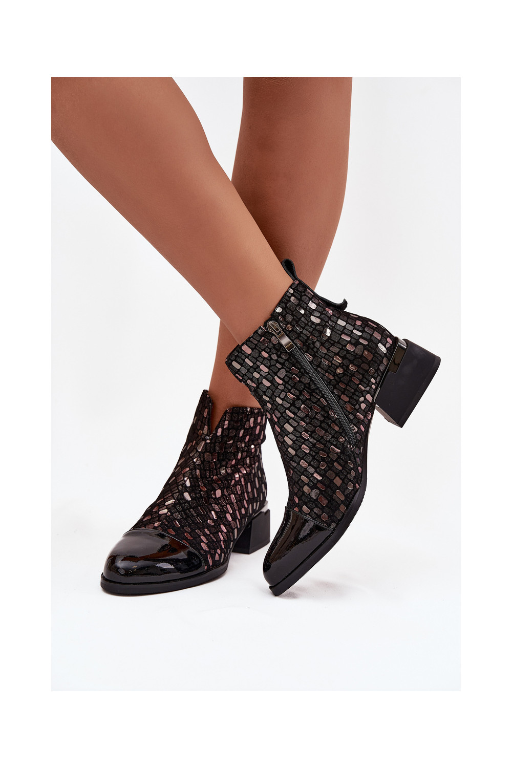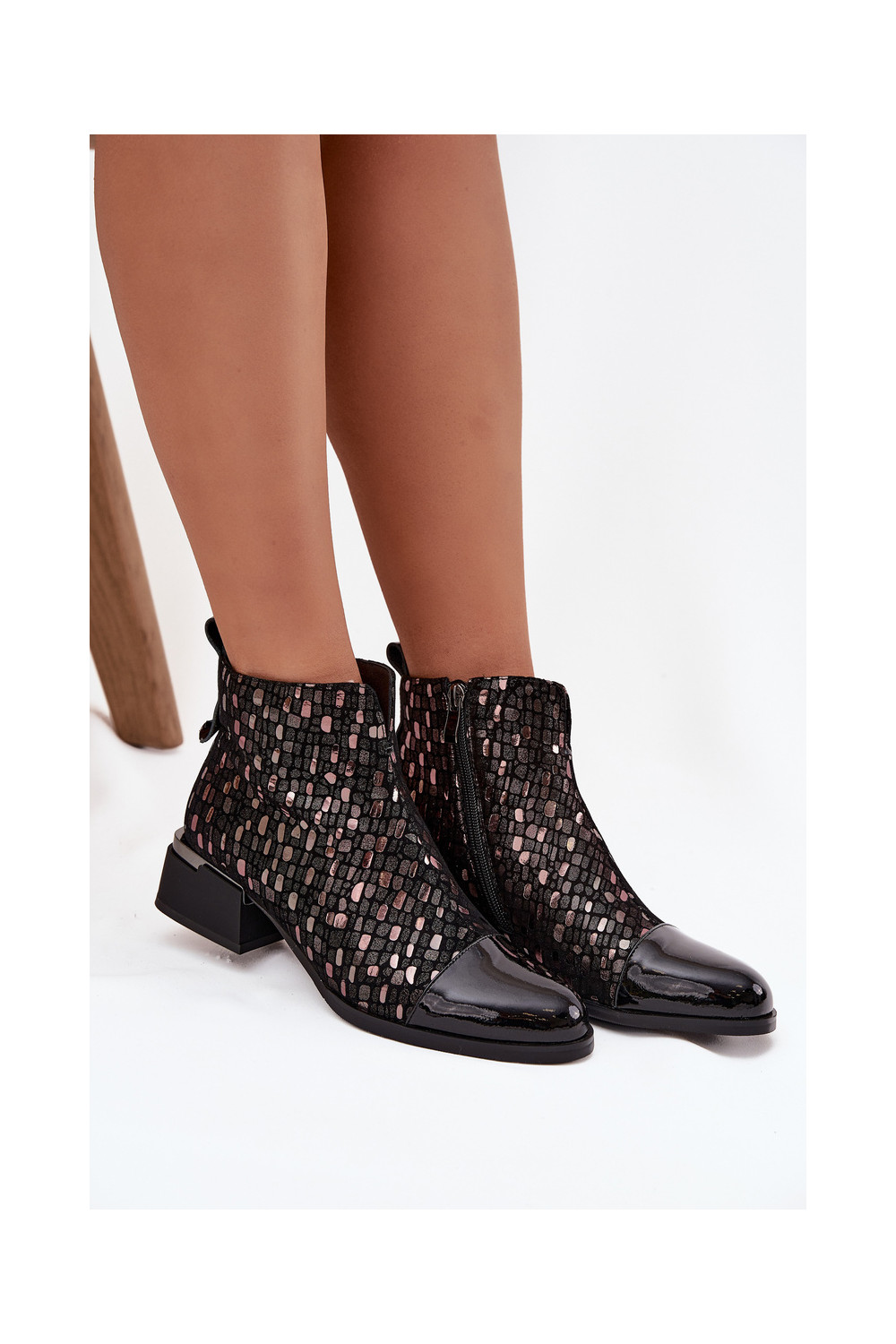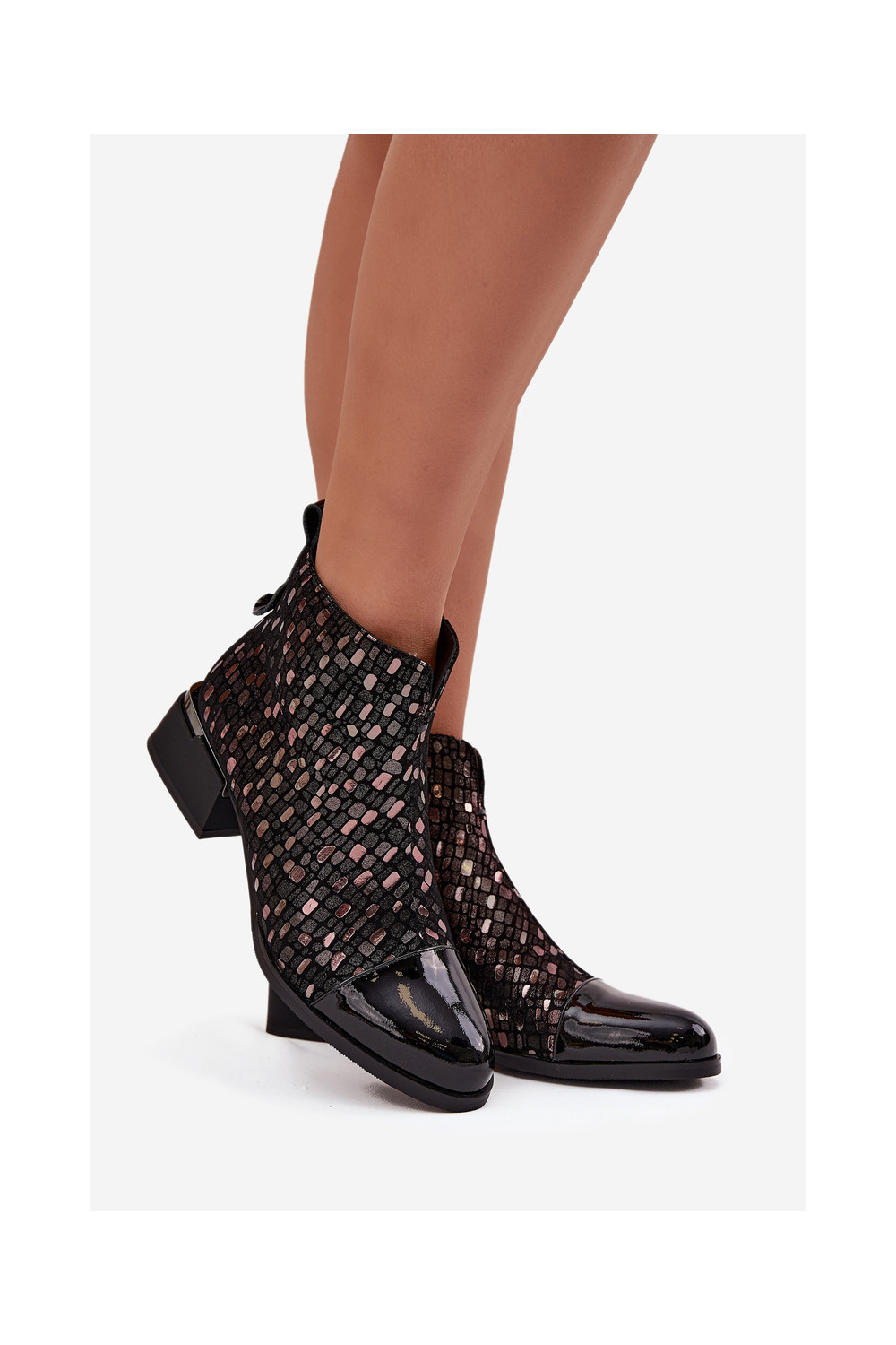 s efektem laku Dámské podpatky Z Naturalnej Skóry na nízkém podpatku D&A LZ52-960 Černé