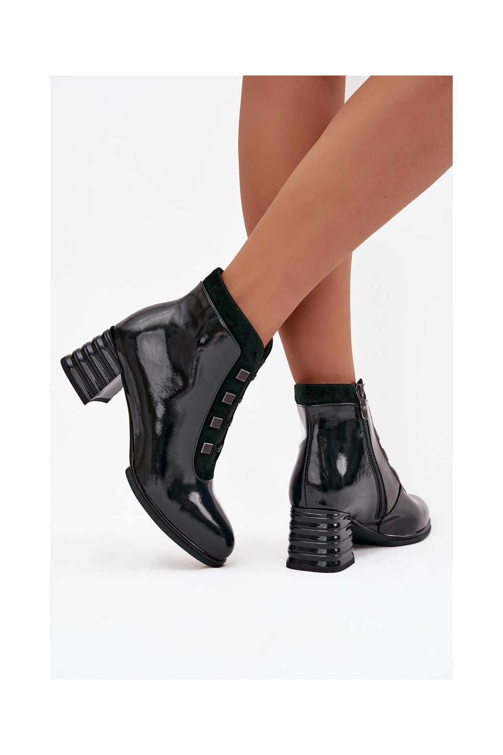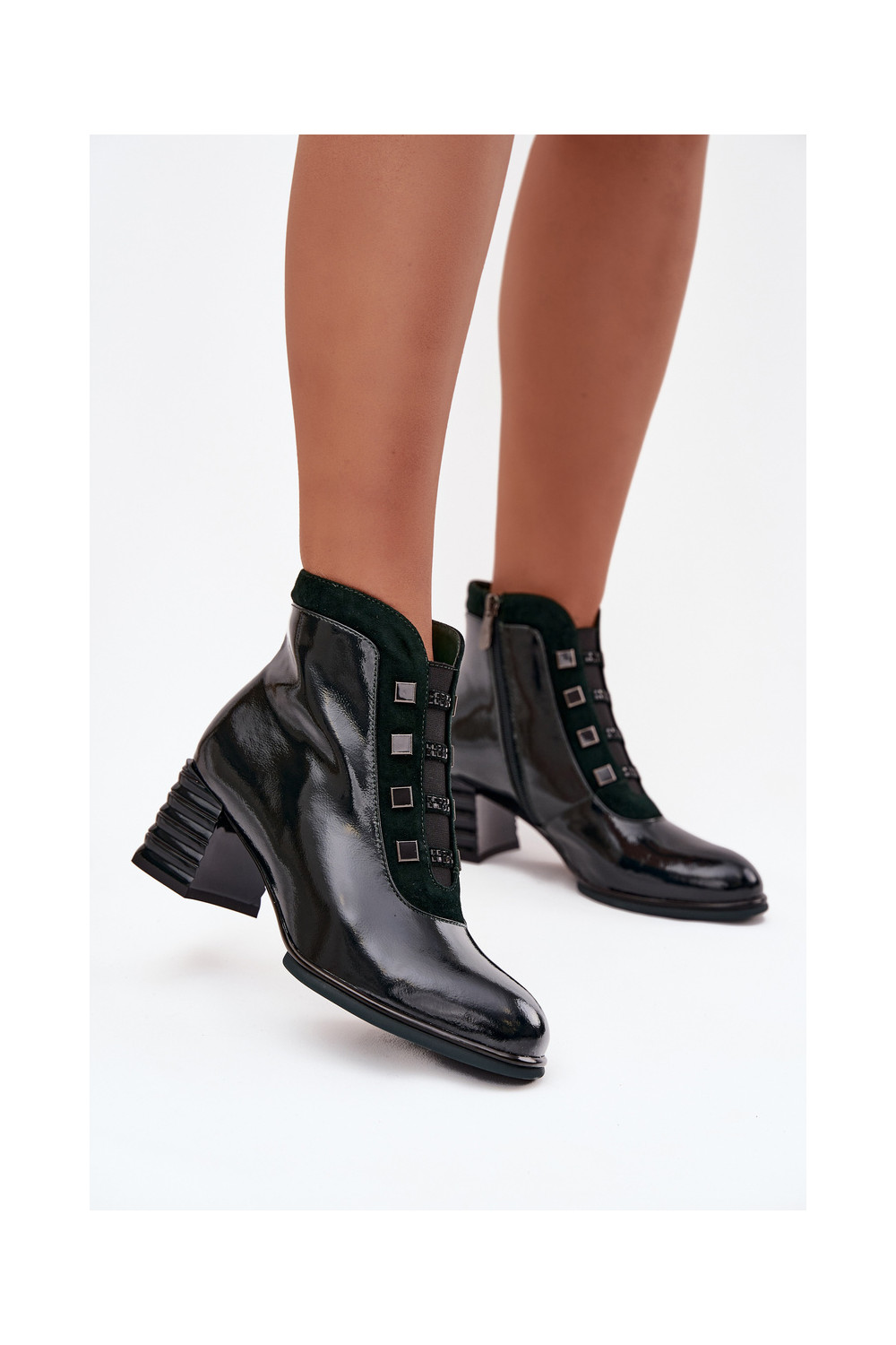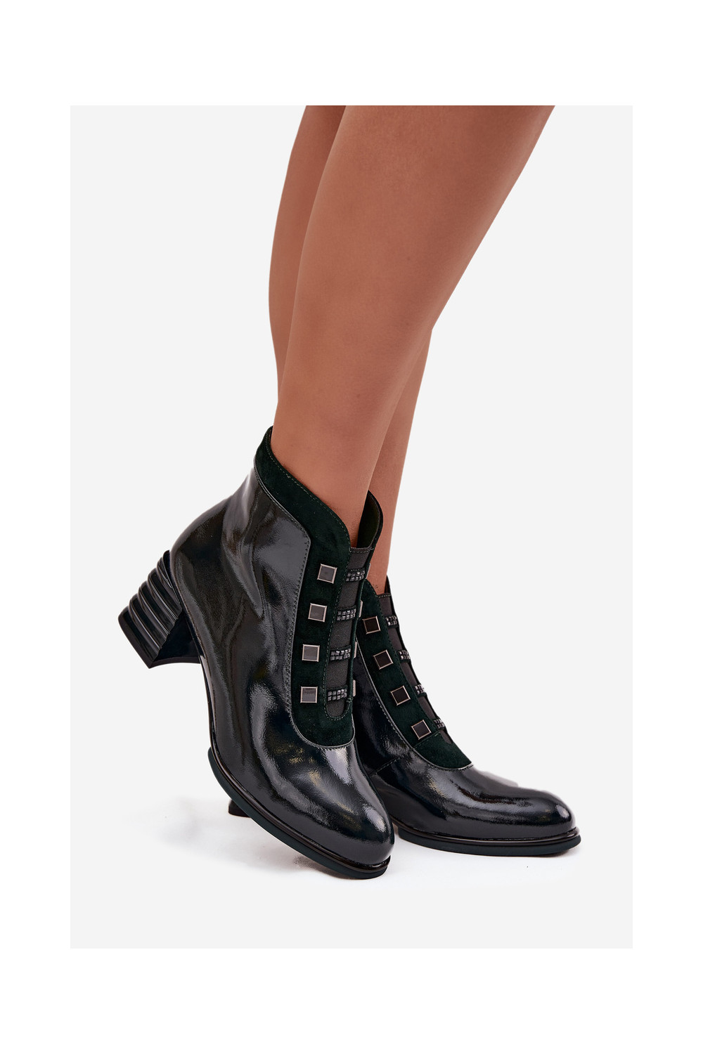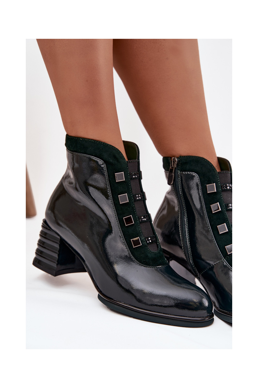 s efektem laku Dámské podpatky Z Naturalnej Skóry s podpatky D&ACR52-696 khaki