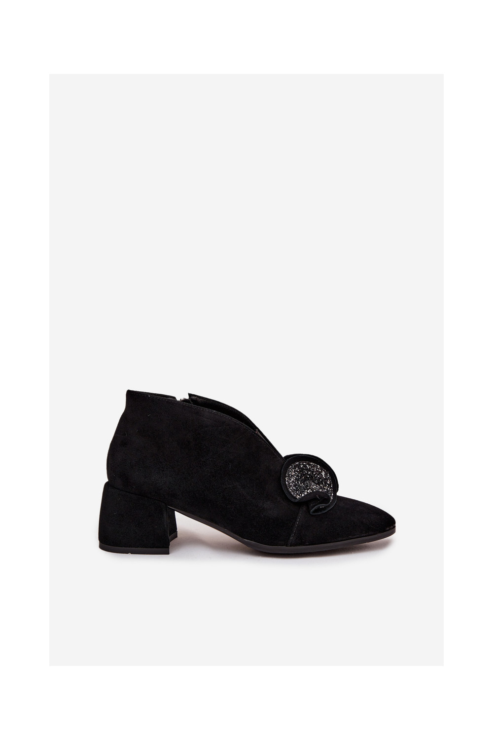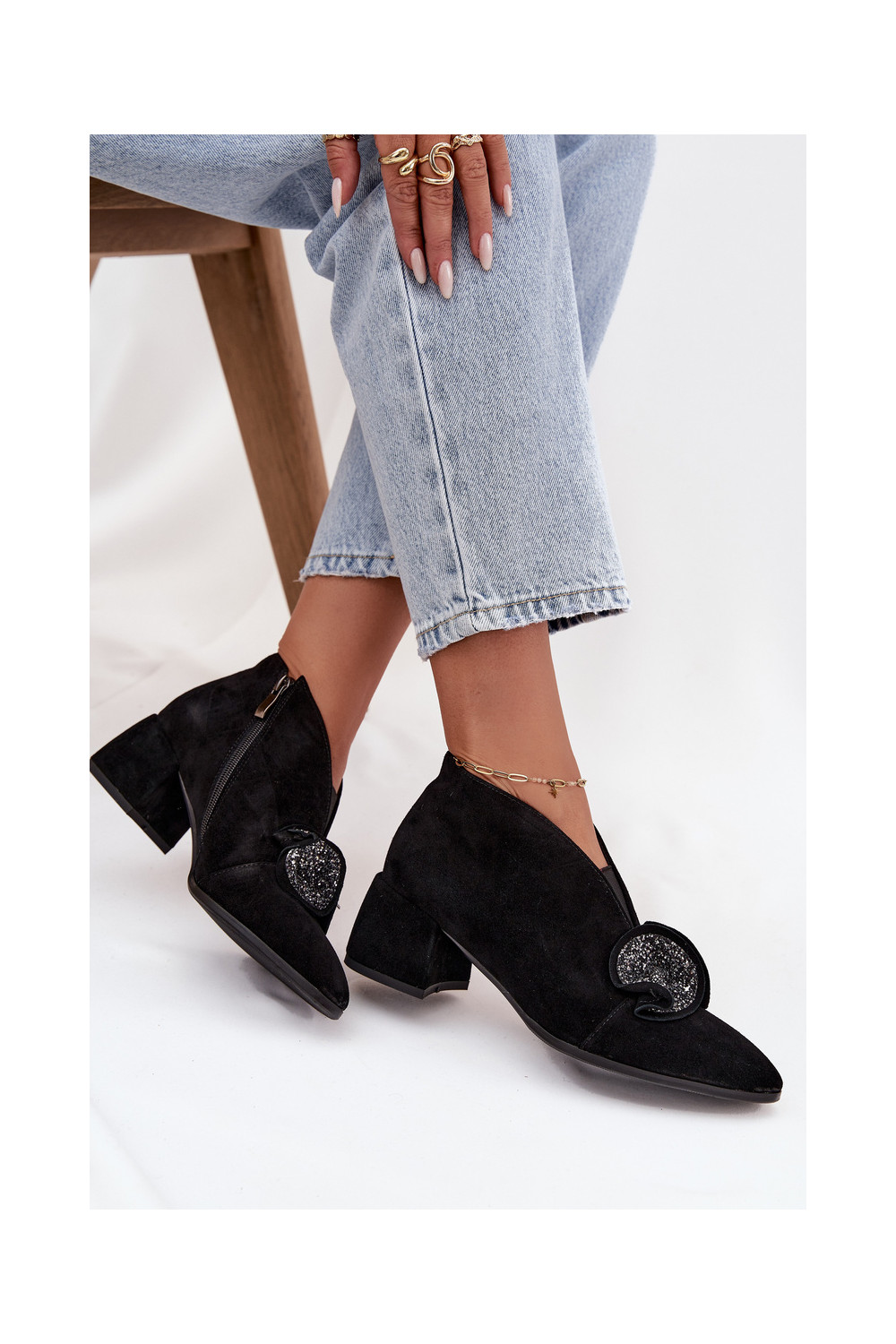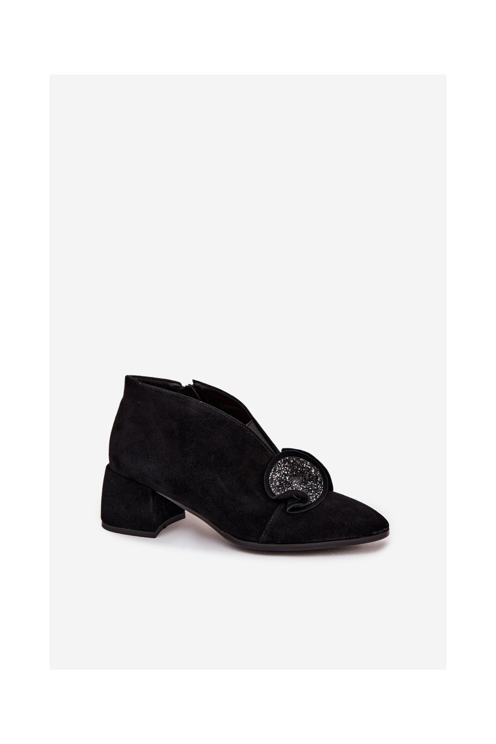 Semišové boty s podpatky s ornamenty D&A MR52-182 Černé
