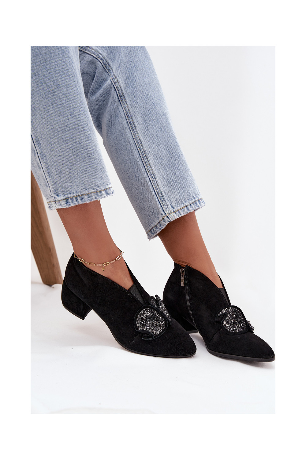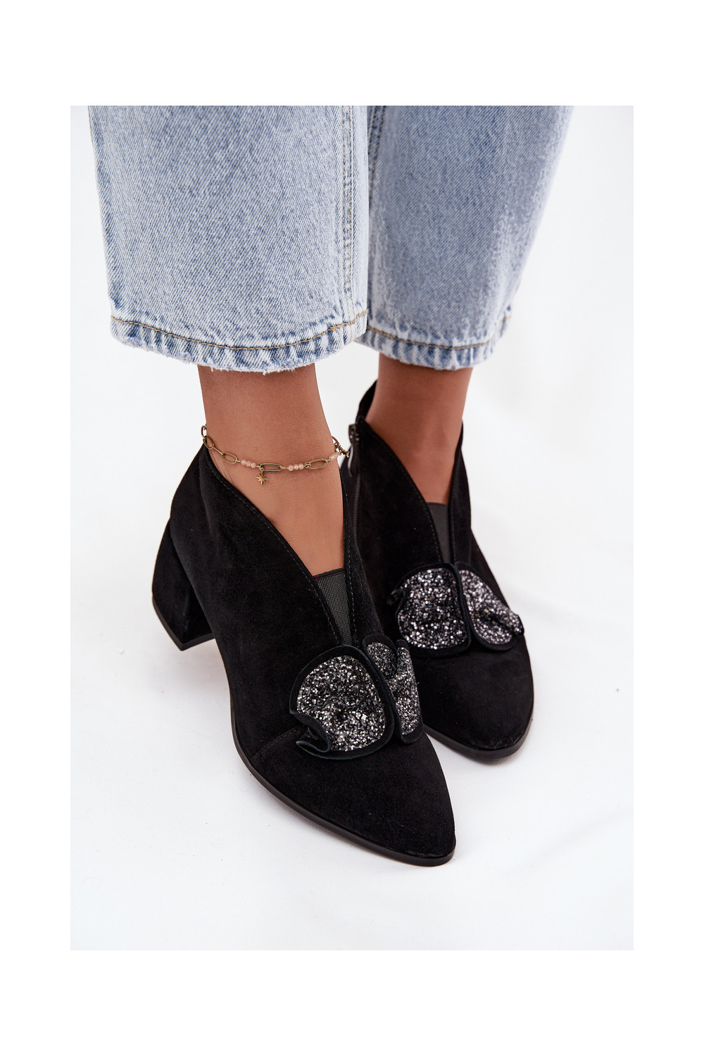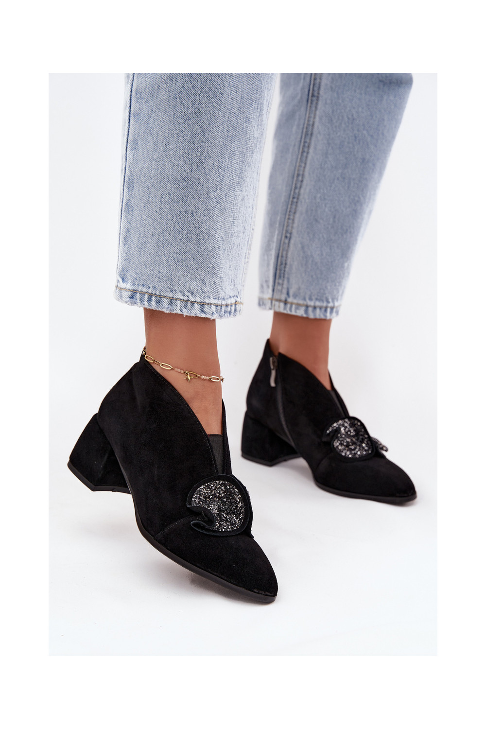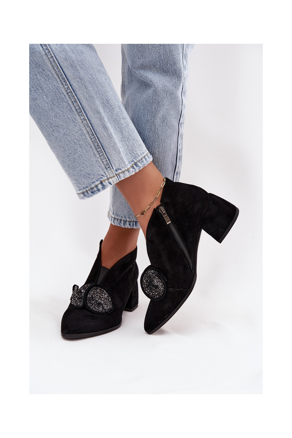 Semišové boty s podpatky s ornamenty D&A MR52-182 Černé