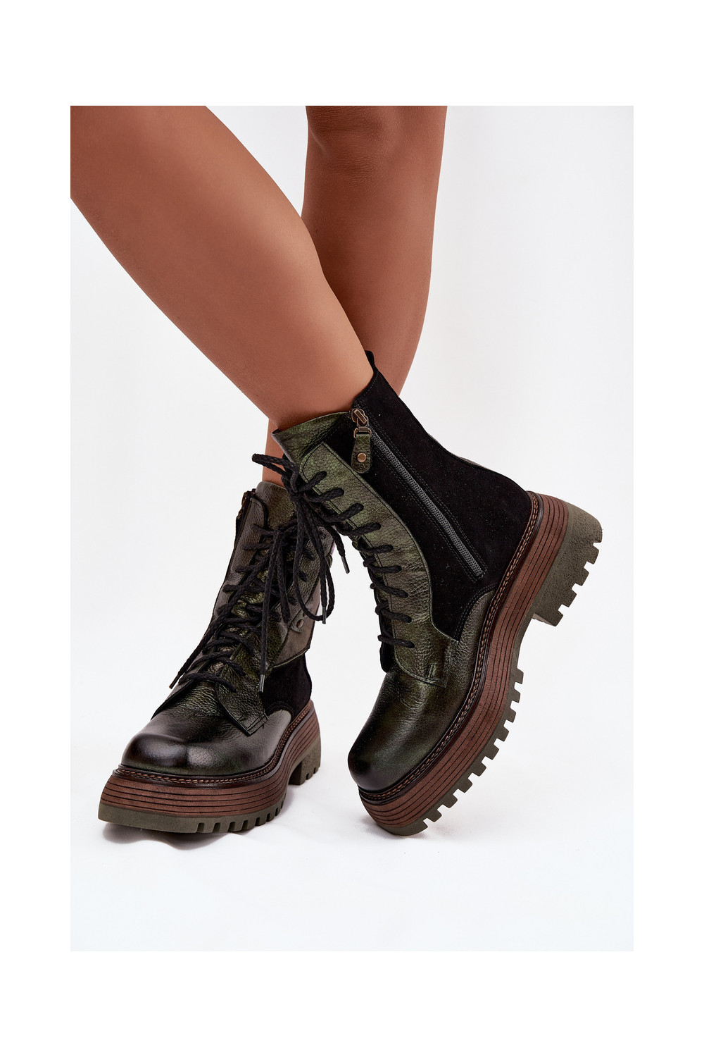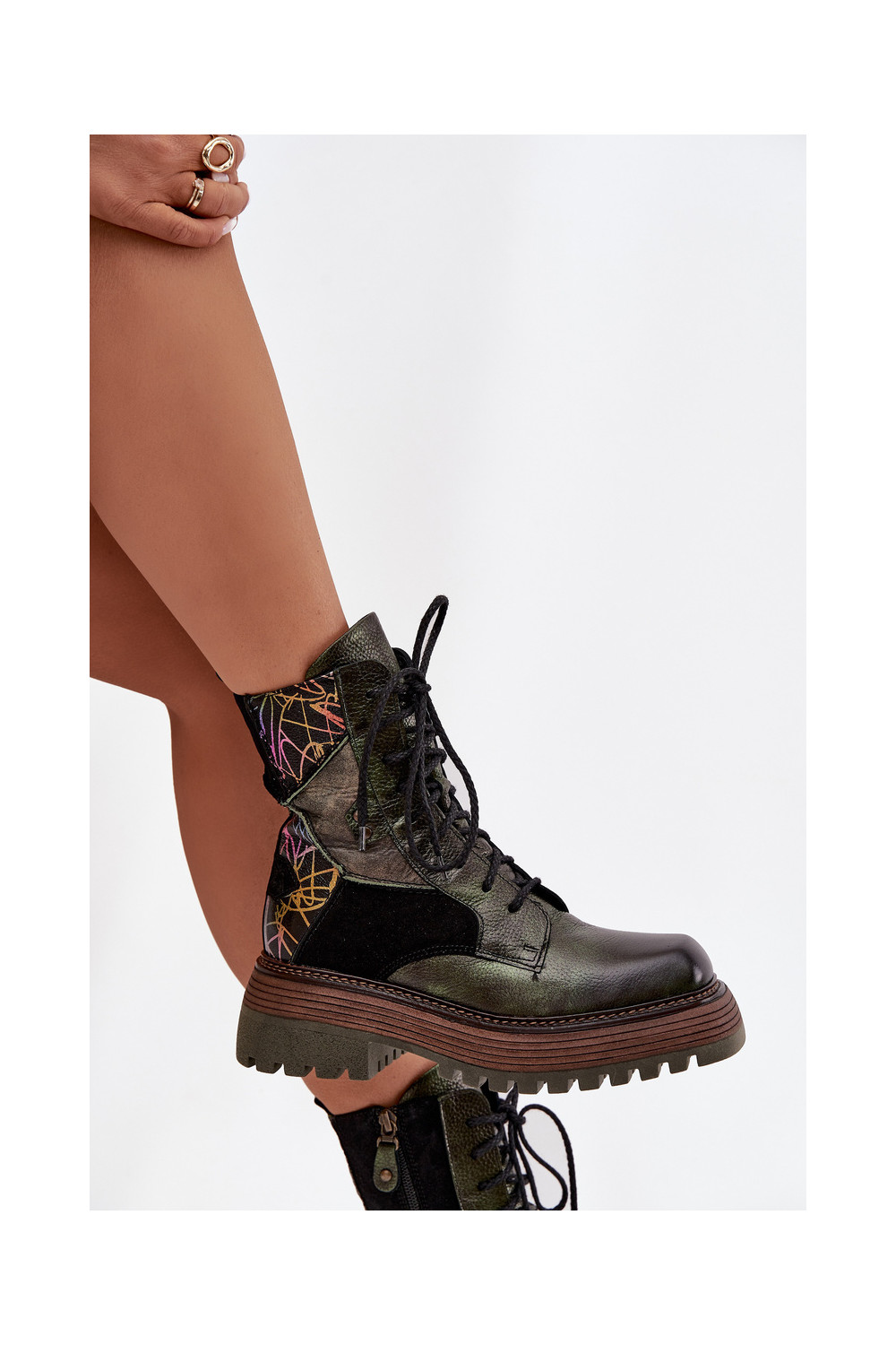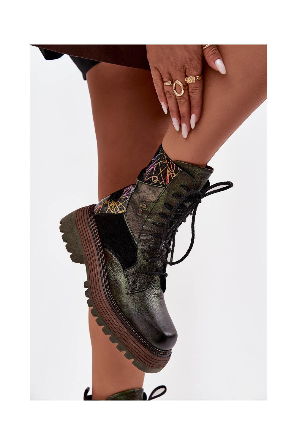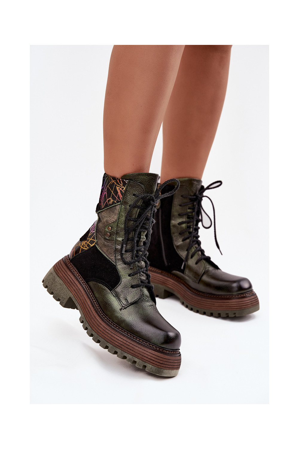 Dřeváky Dámské boty s platformou 07104-09 khaki