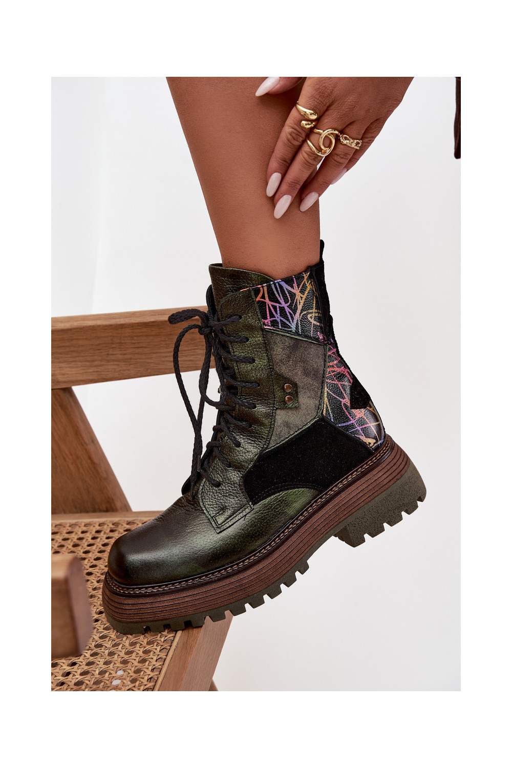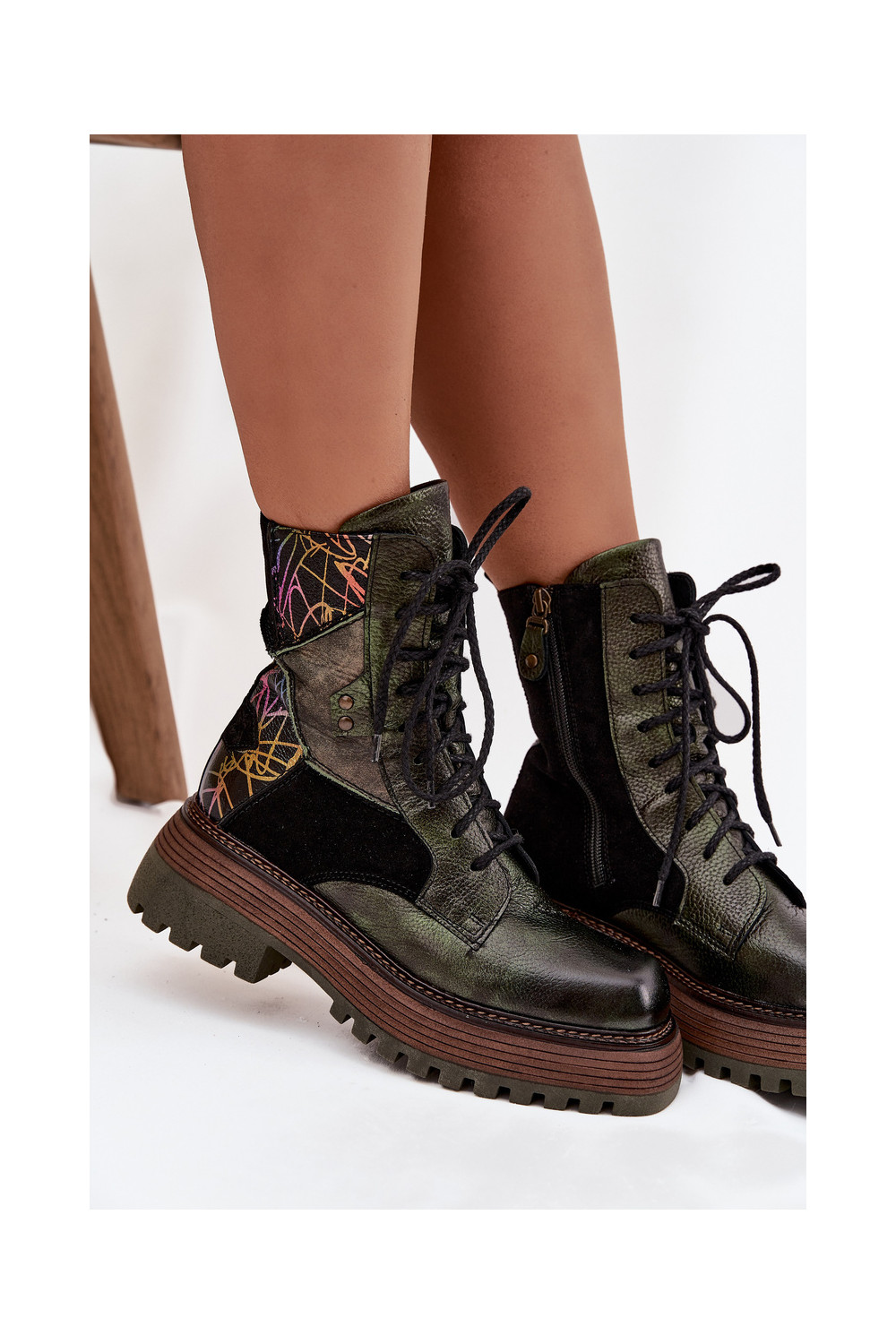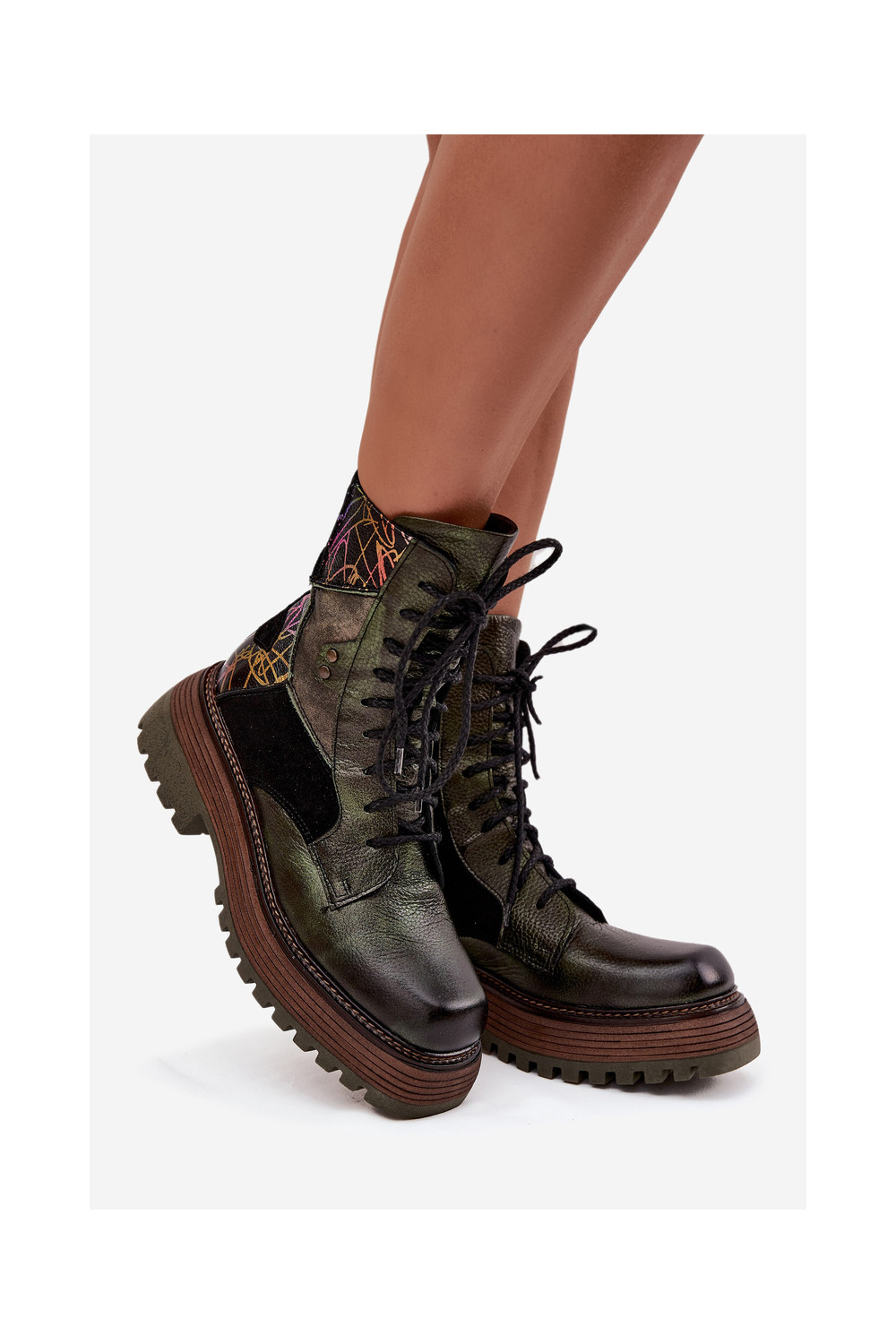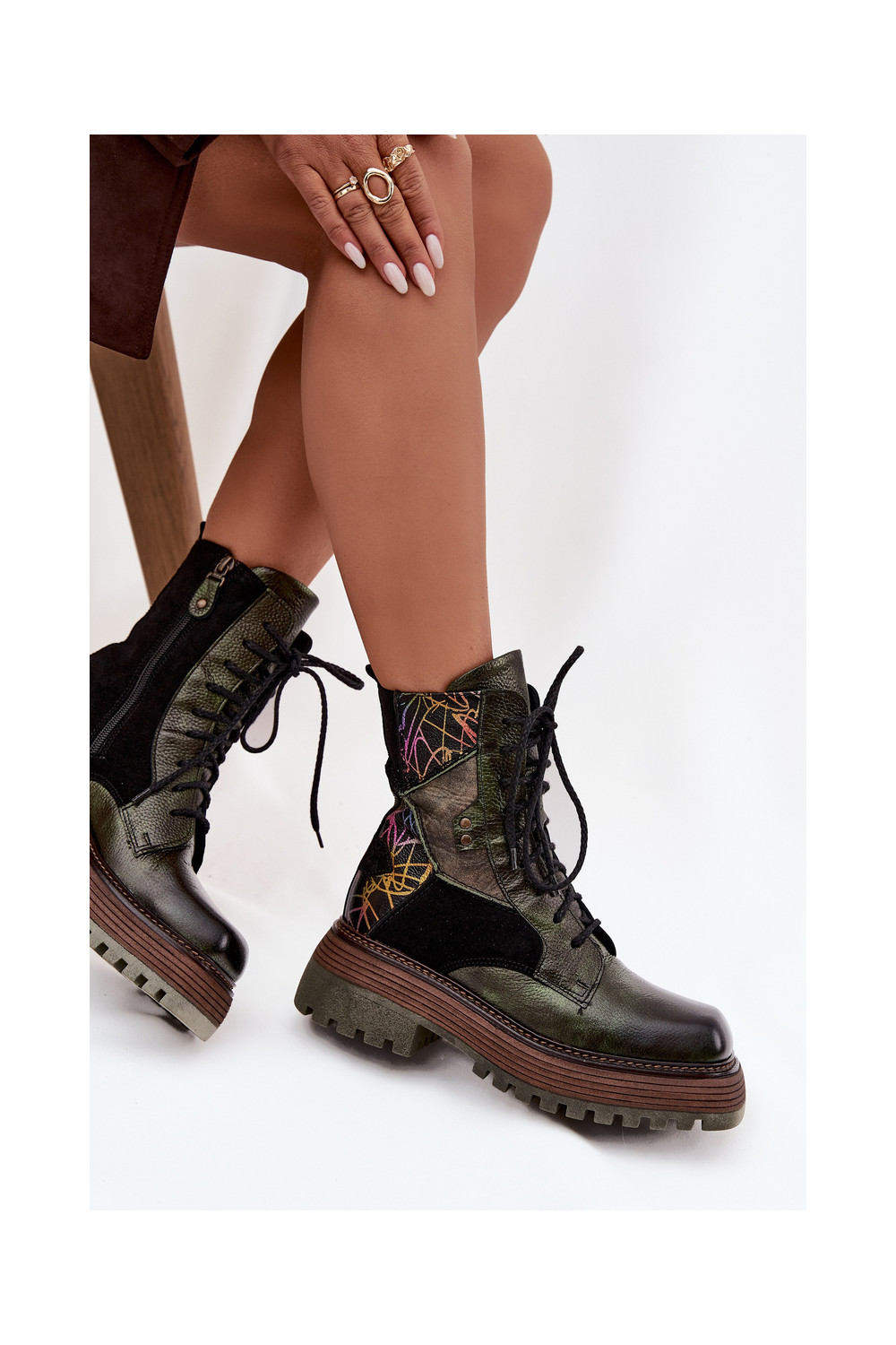 Dřeváky Dámské boty s platformou 07104-09 khaki
