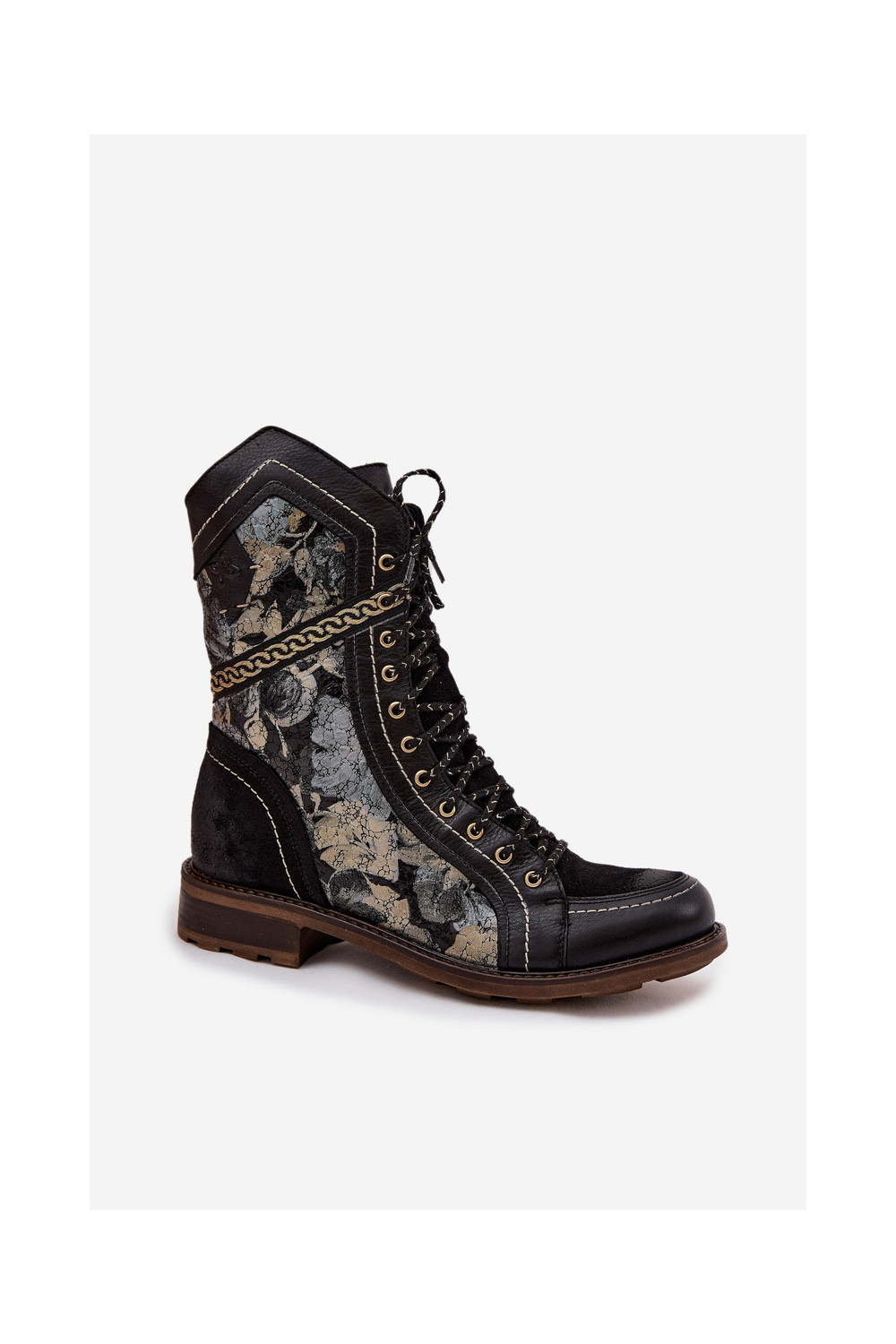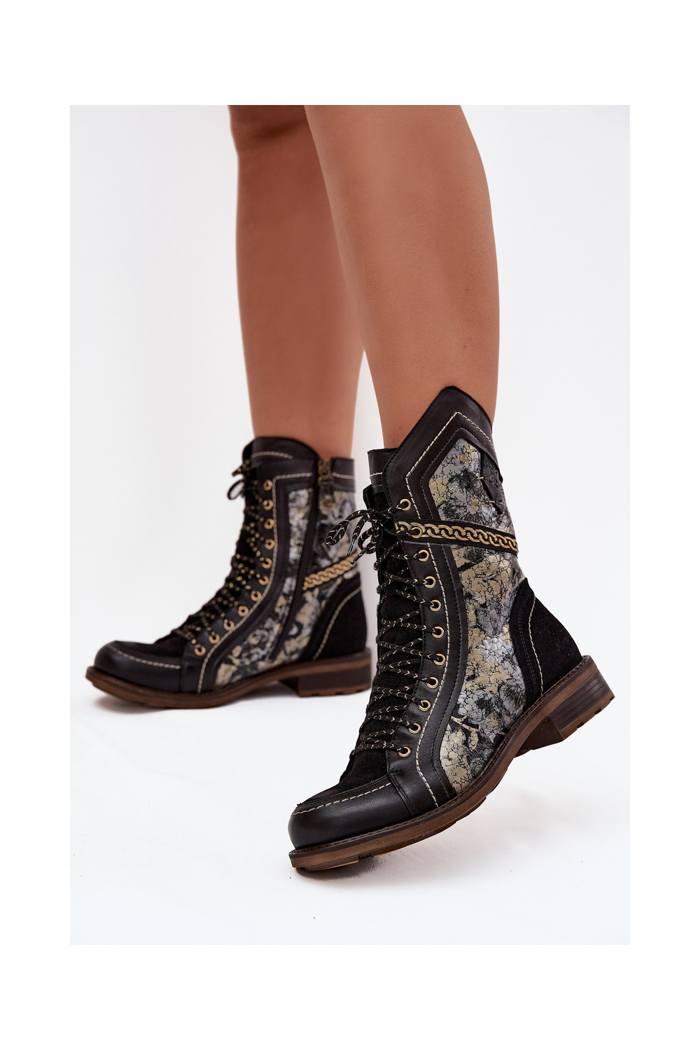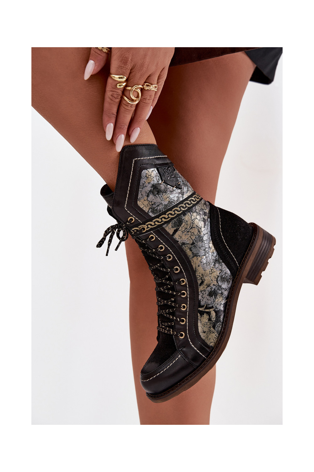 Dámské podpatky Z Naturalnej Skóry 07097-01 Černé a-zlaté barvy
