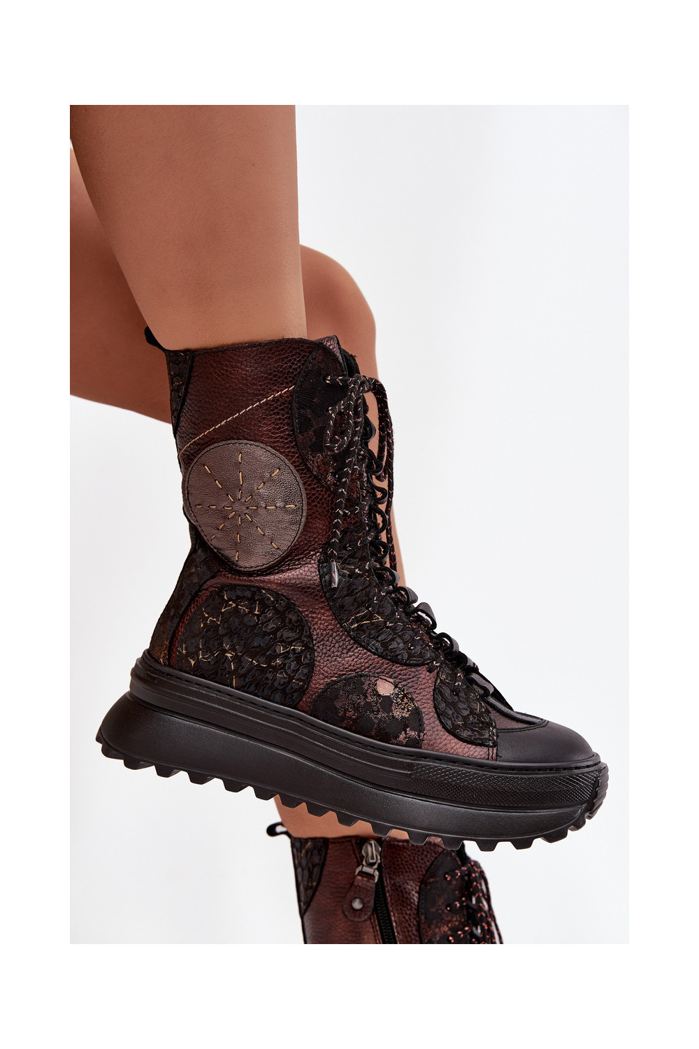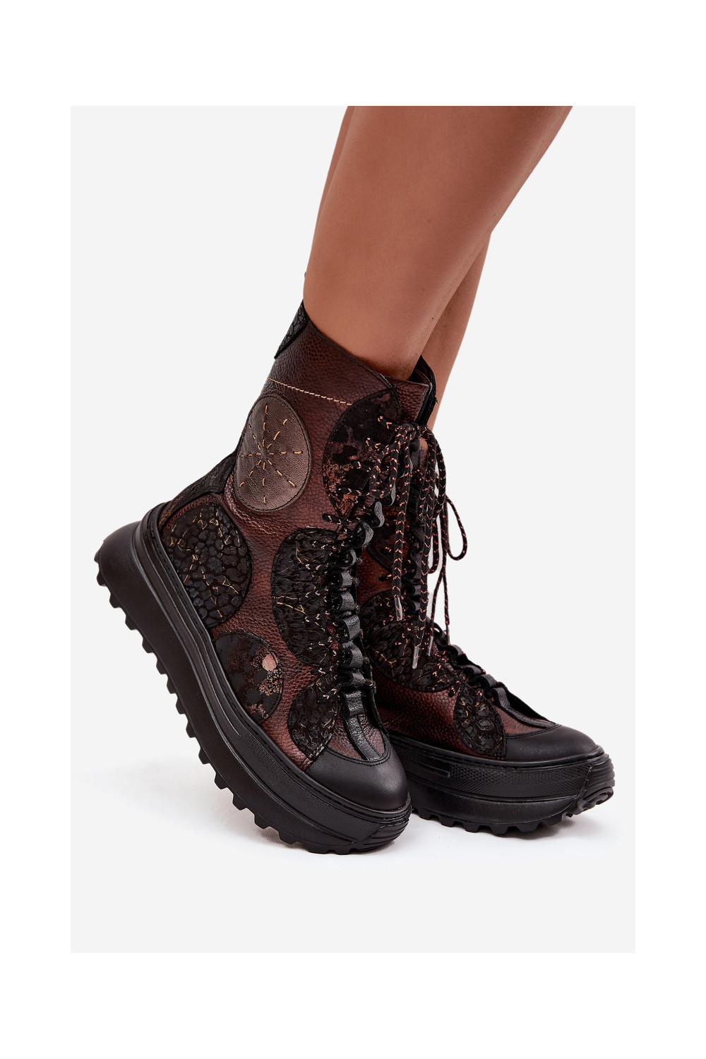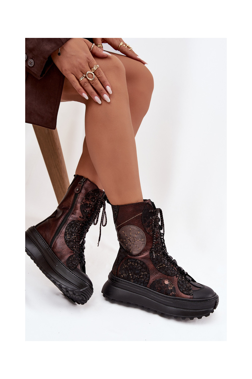Dřeváky s platformou zateplené 06565-02 hnědá-zlaté barvy