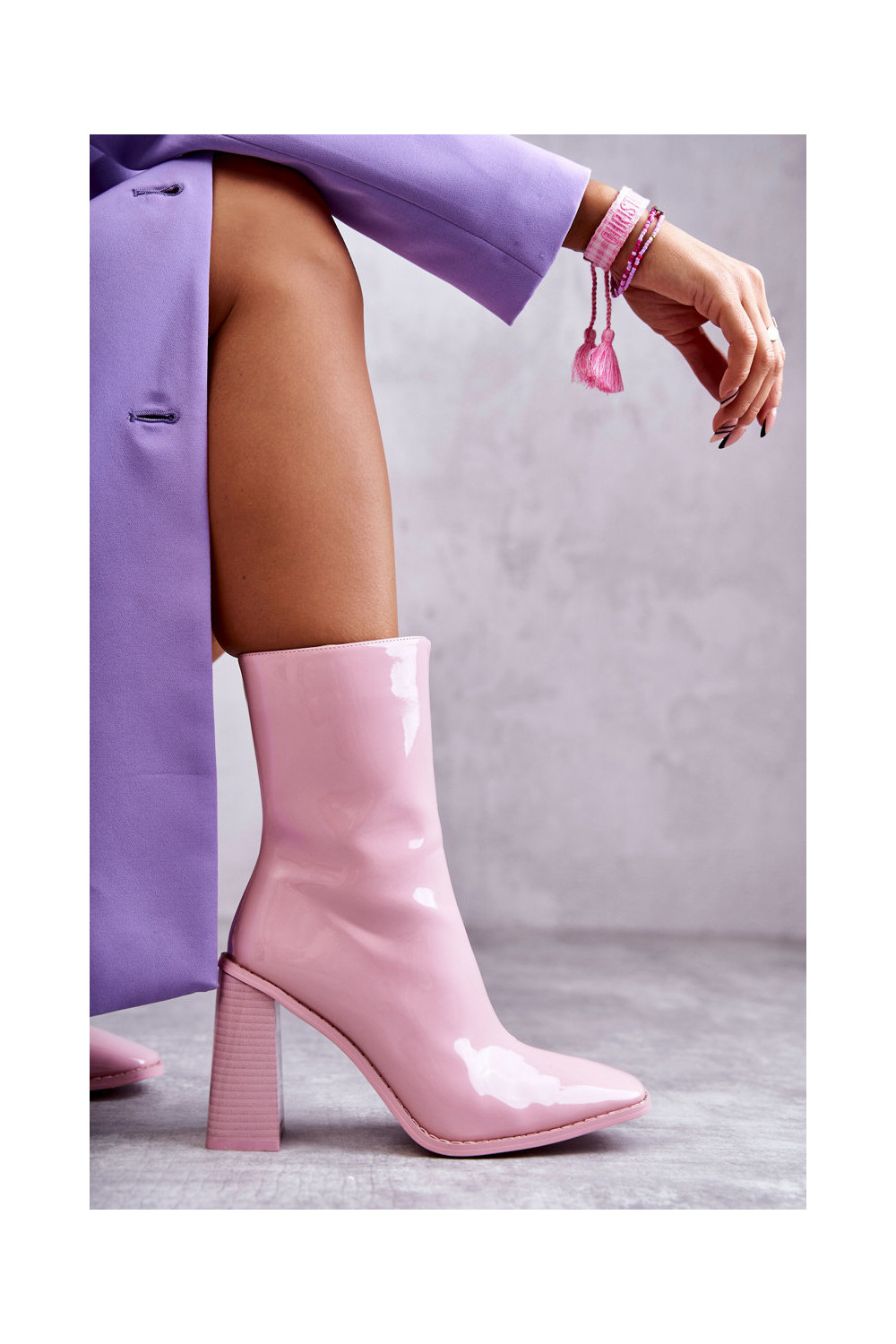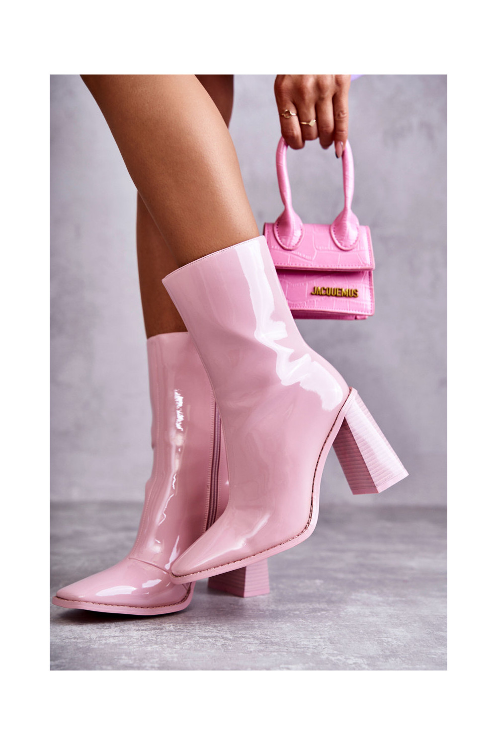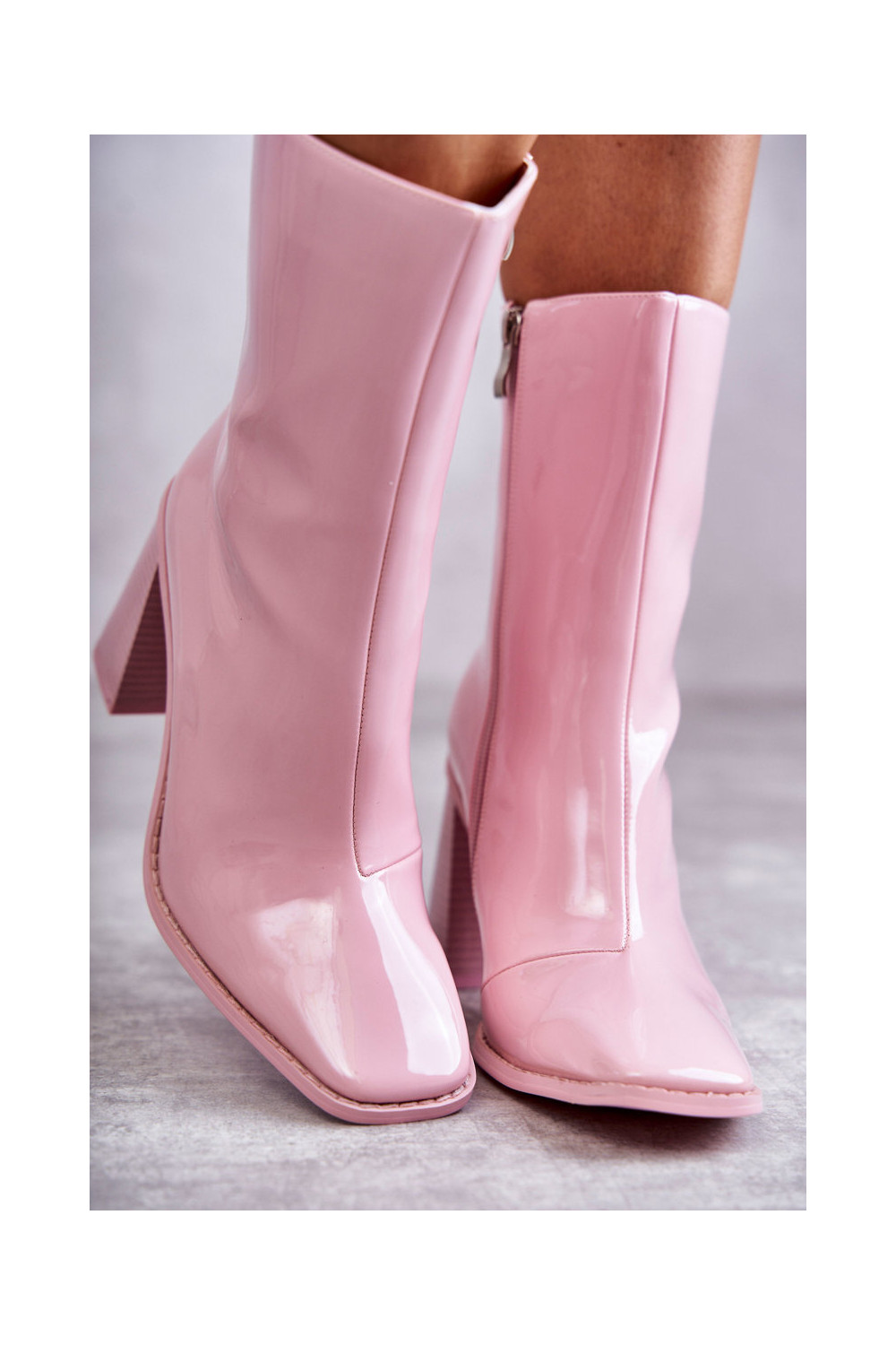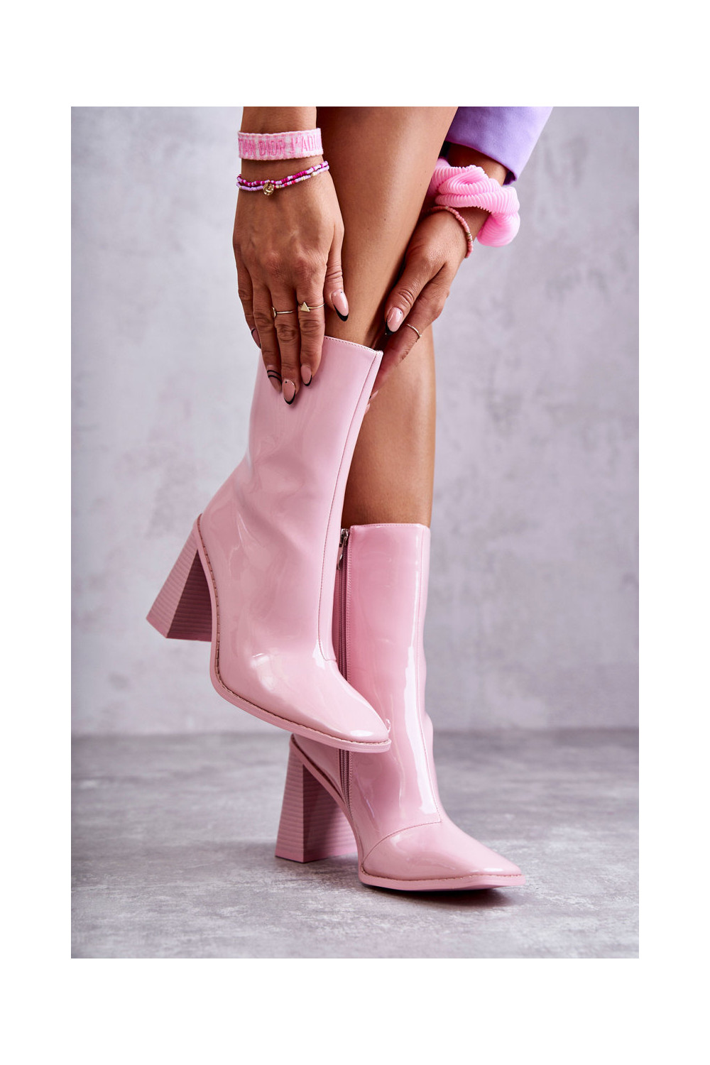 s efektem laku Dřeváky dlouhé boty růžová Margit