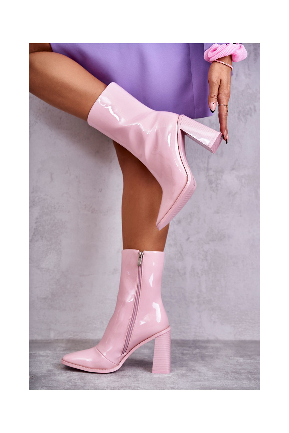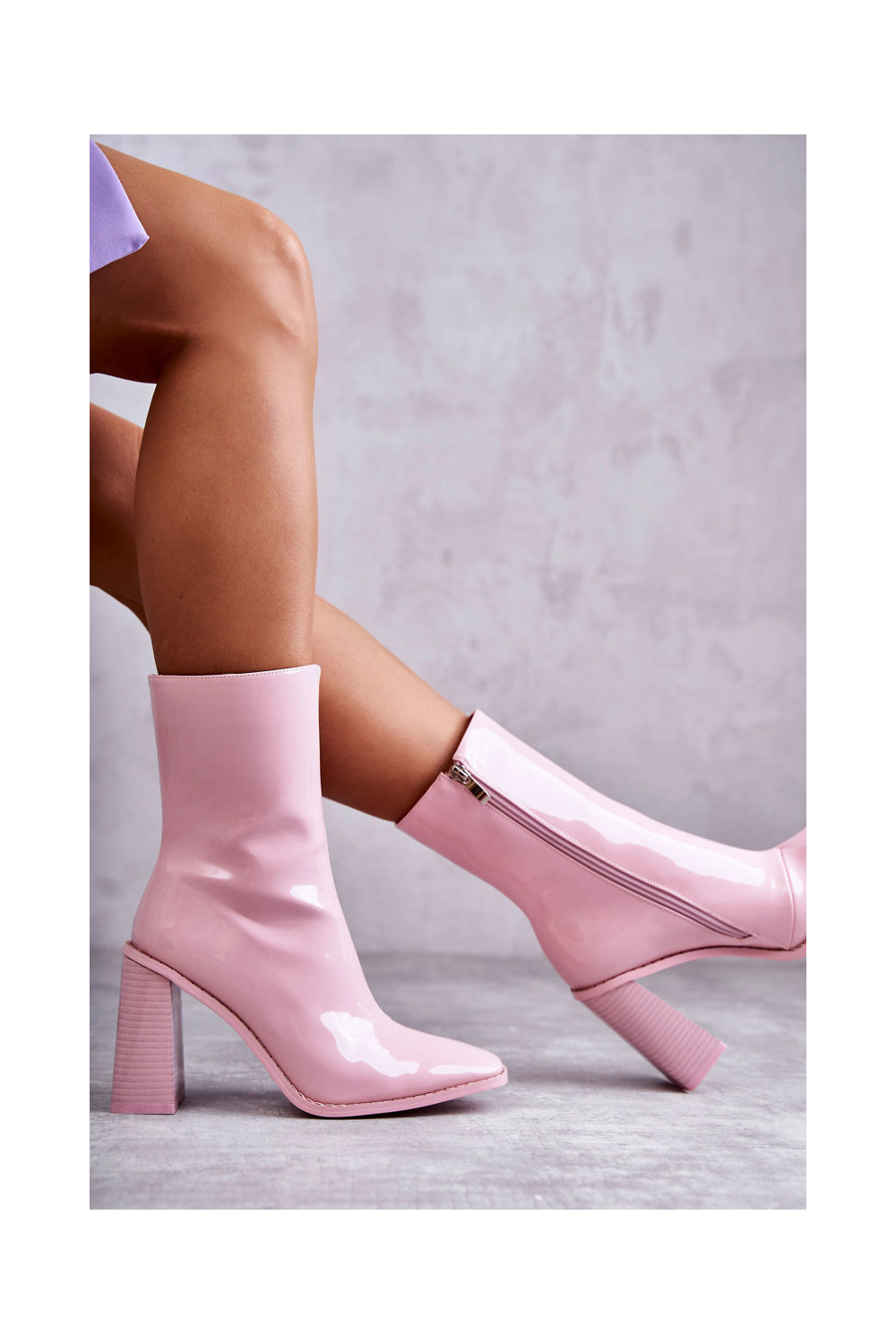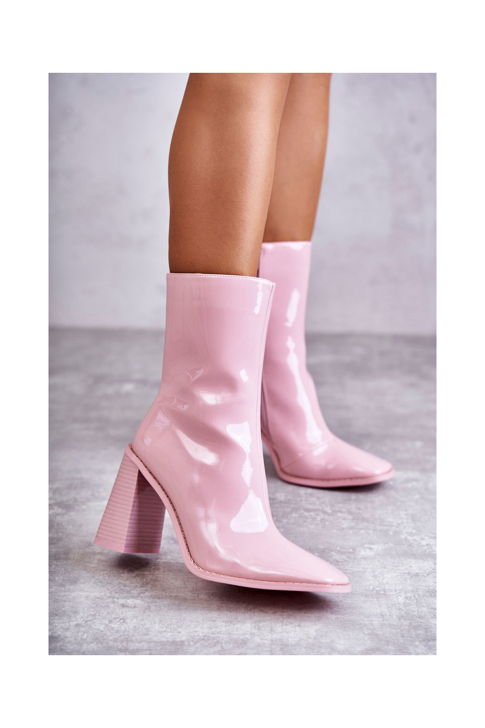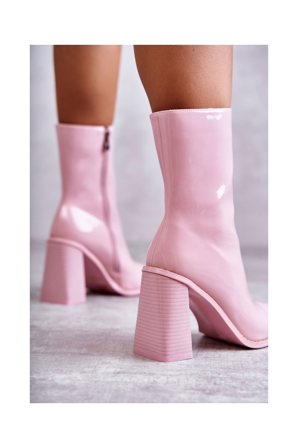 s efektem laku Dřeváky dlouhé boty růžová Margit