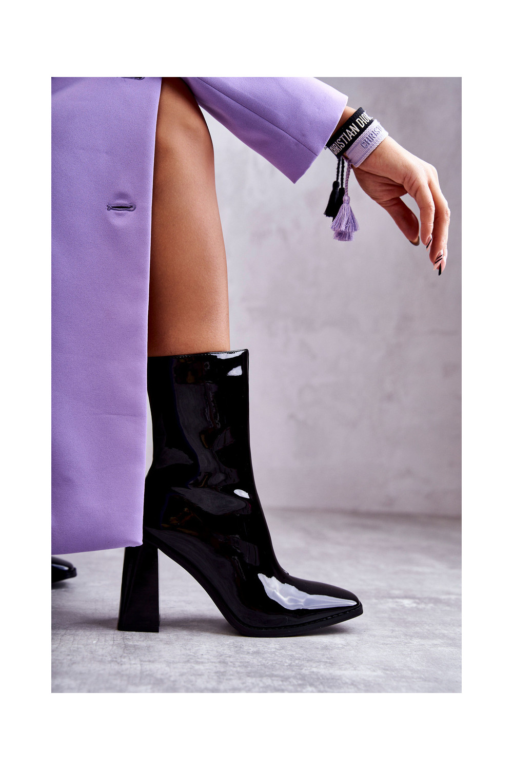 s efektem laku Dřeváky dlouhé boty Černé Margit