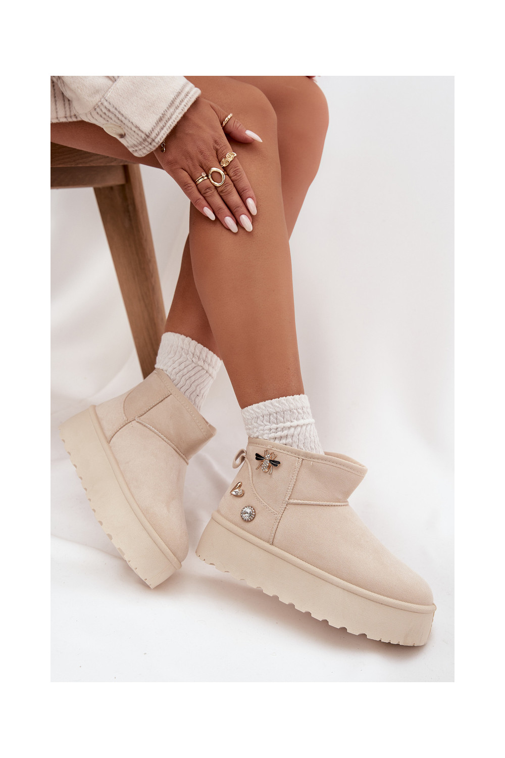 Sněhule s platformou Z Przypinkami slonová kost Maelle