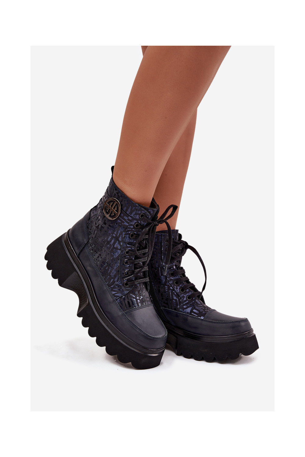 Dřeváky s platformou I Ozdobnym Detalem Artiker 57C2271 tmavě modrá