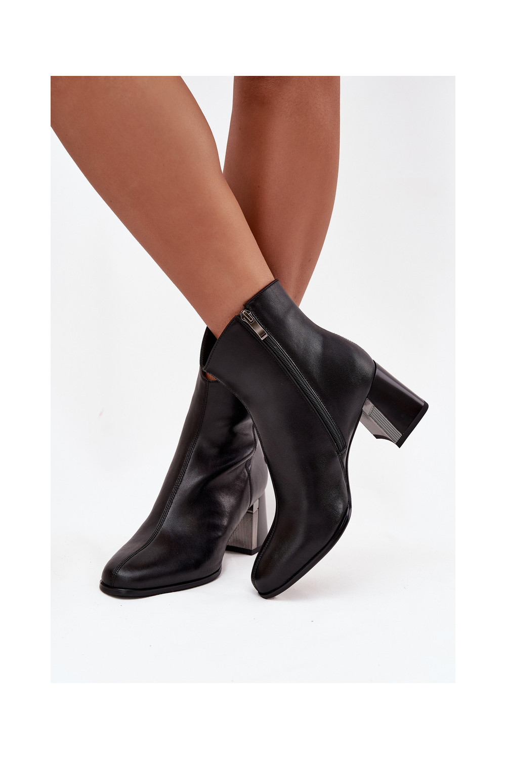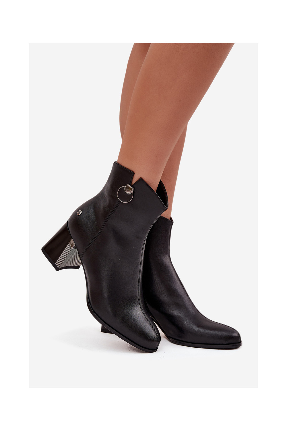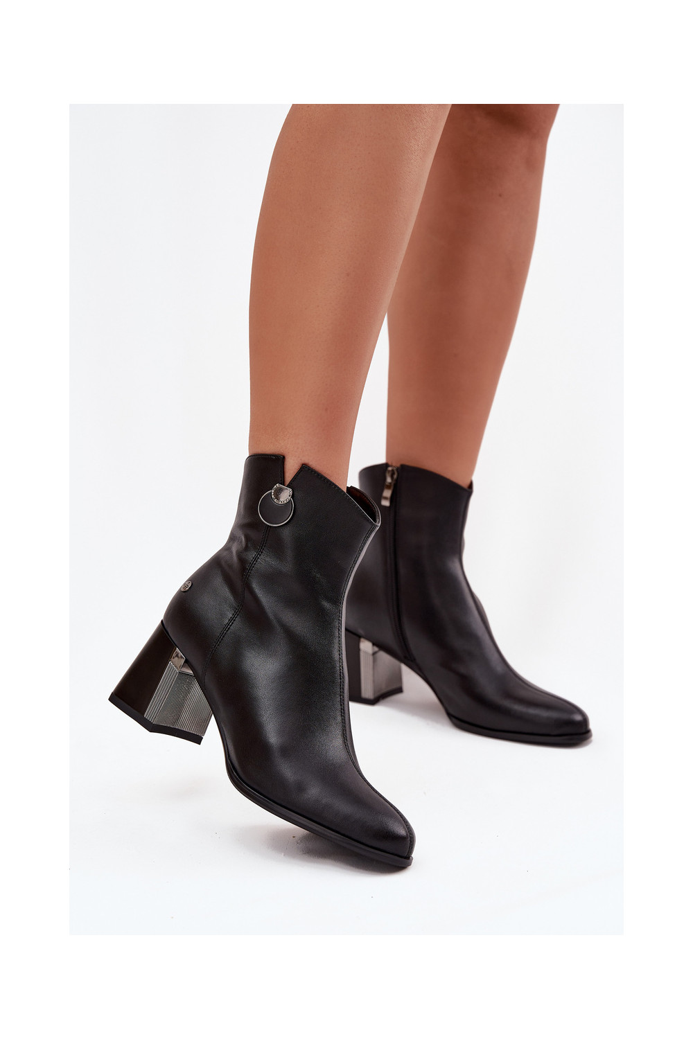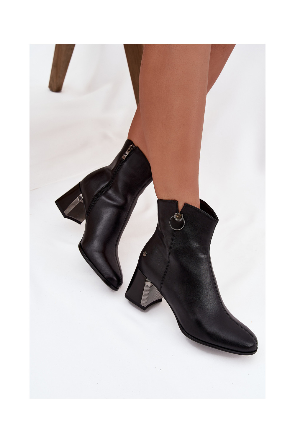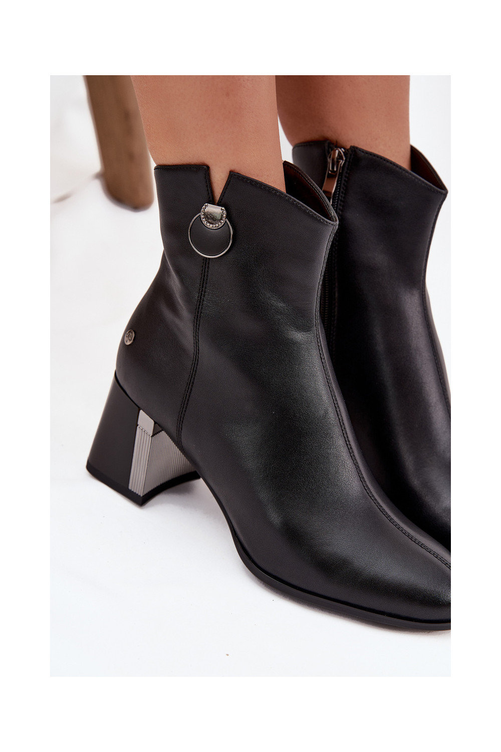 zateplené Dřeváky Z Naturalnej Skóry s podpatky K7203-04 Černé