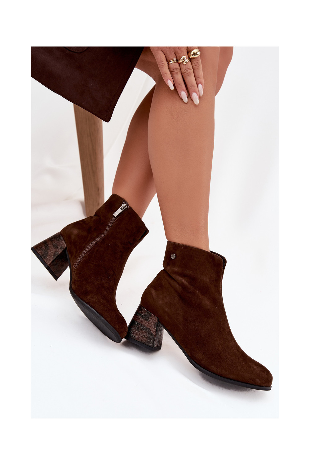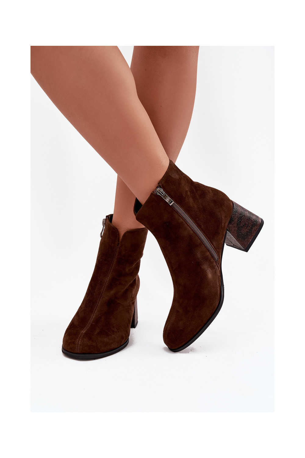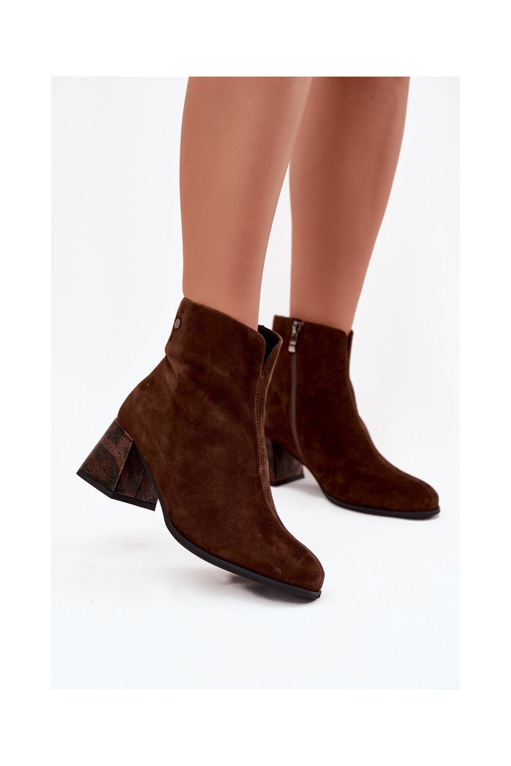 ze semiše Dámské podpatky K7202-02 Czekoladowe