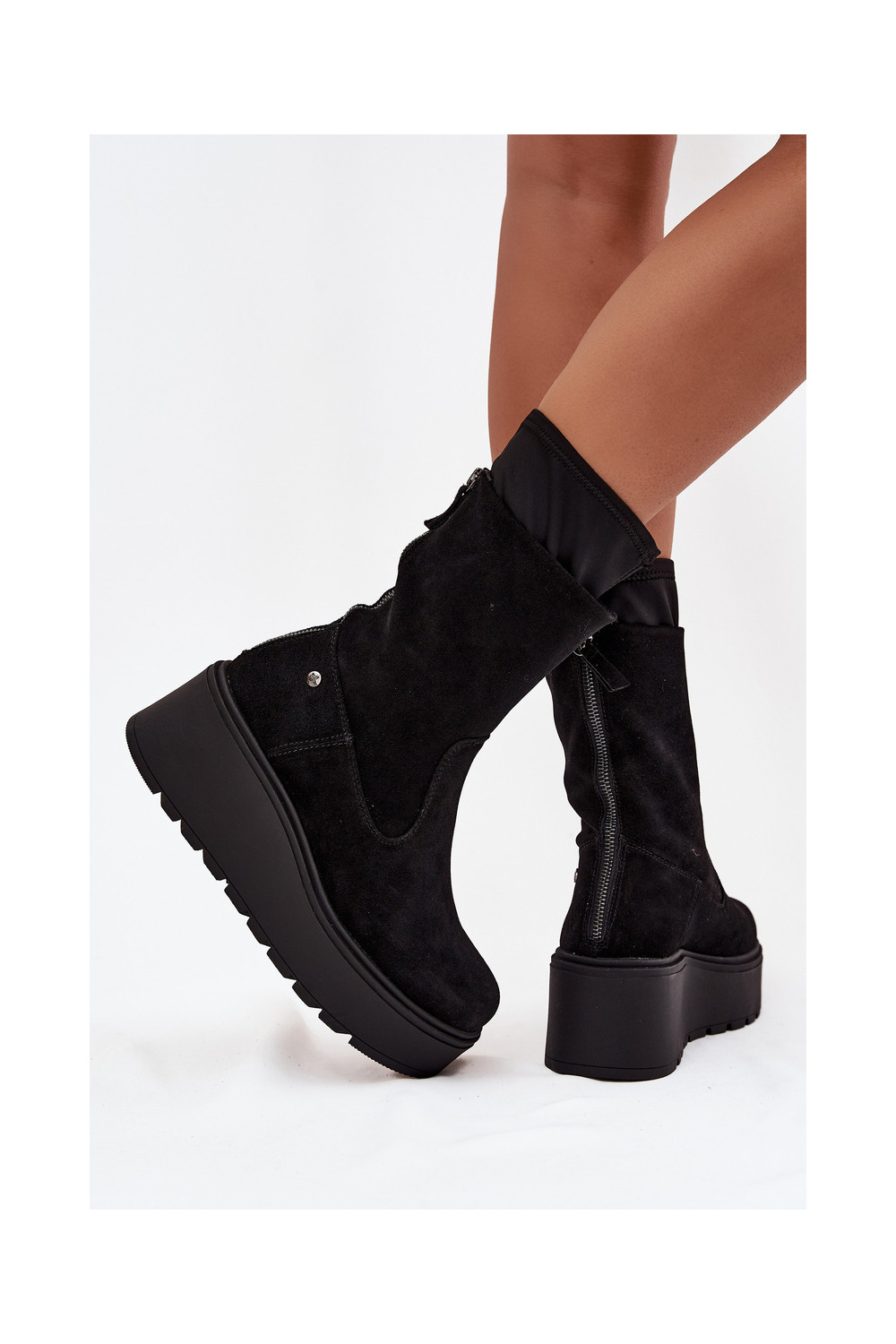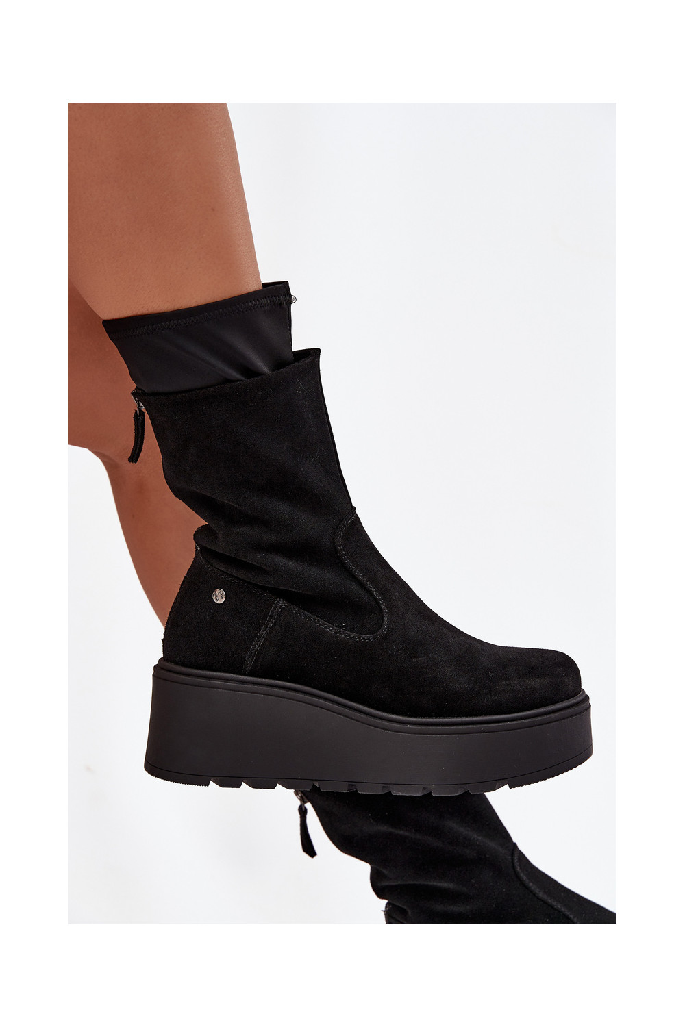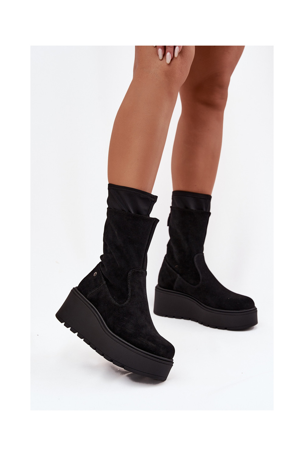 Semišové boty s platformou A7161-20 Černé