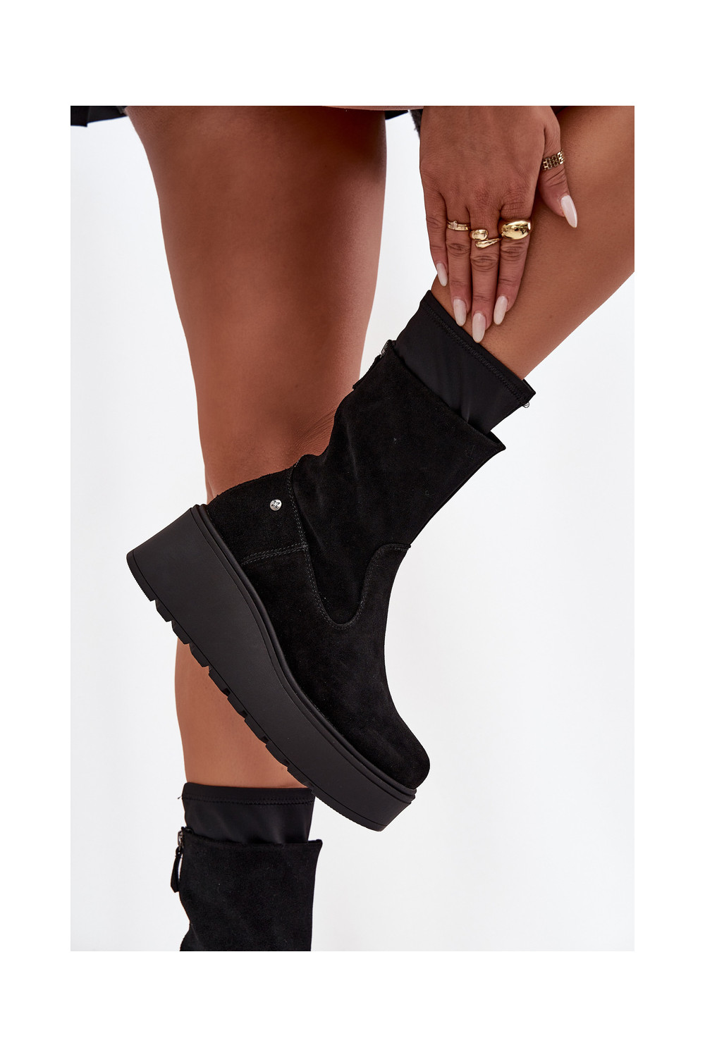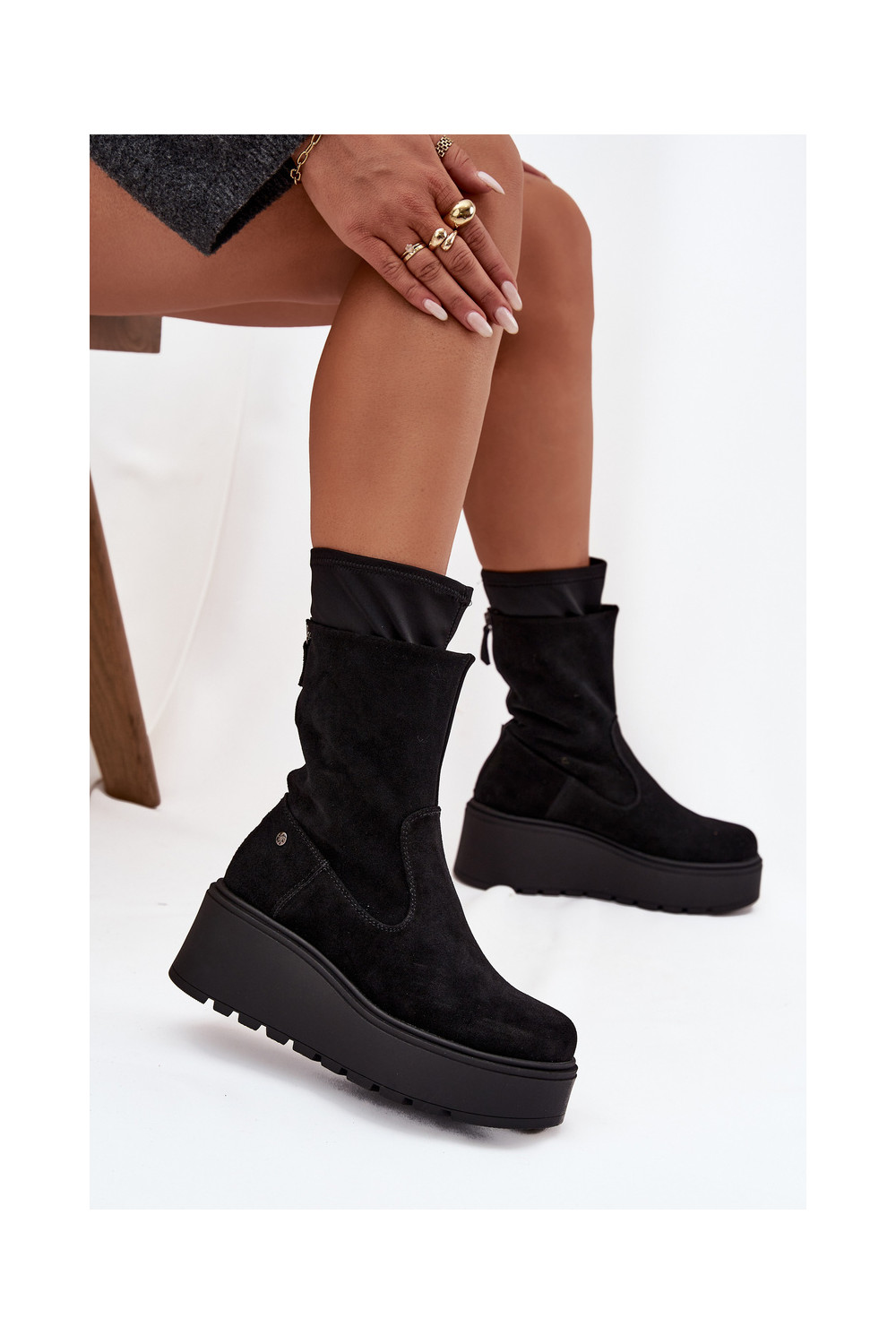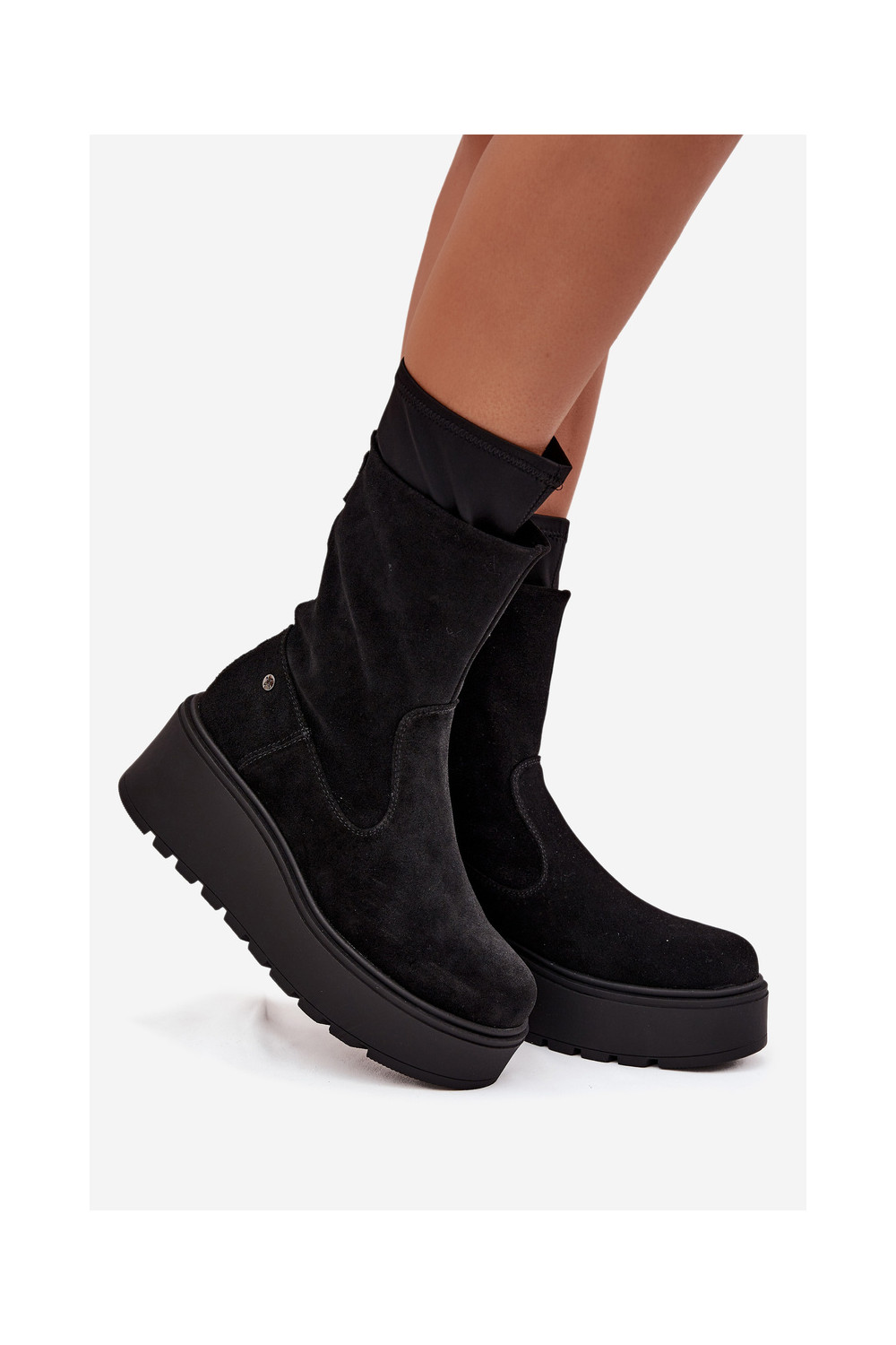 Semišové boty s platformou A7161-20 Černé