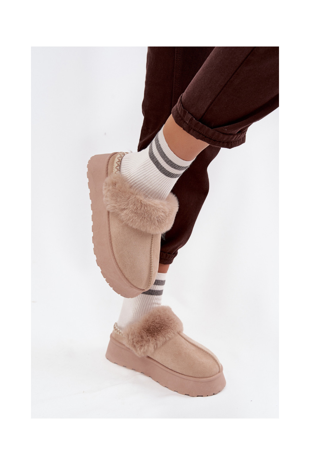 Sněhule s platformou s kožešinou I Haftem béžové Querina