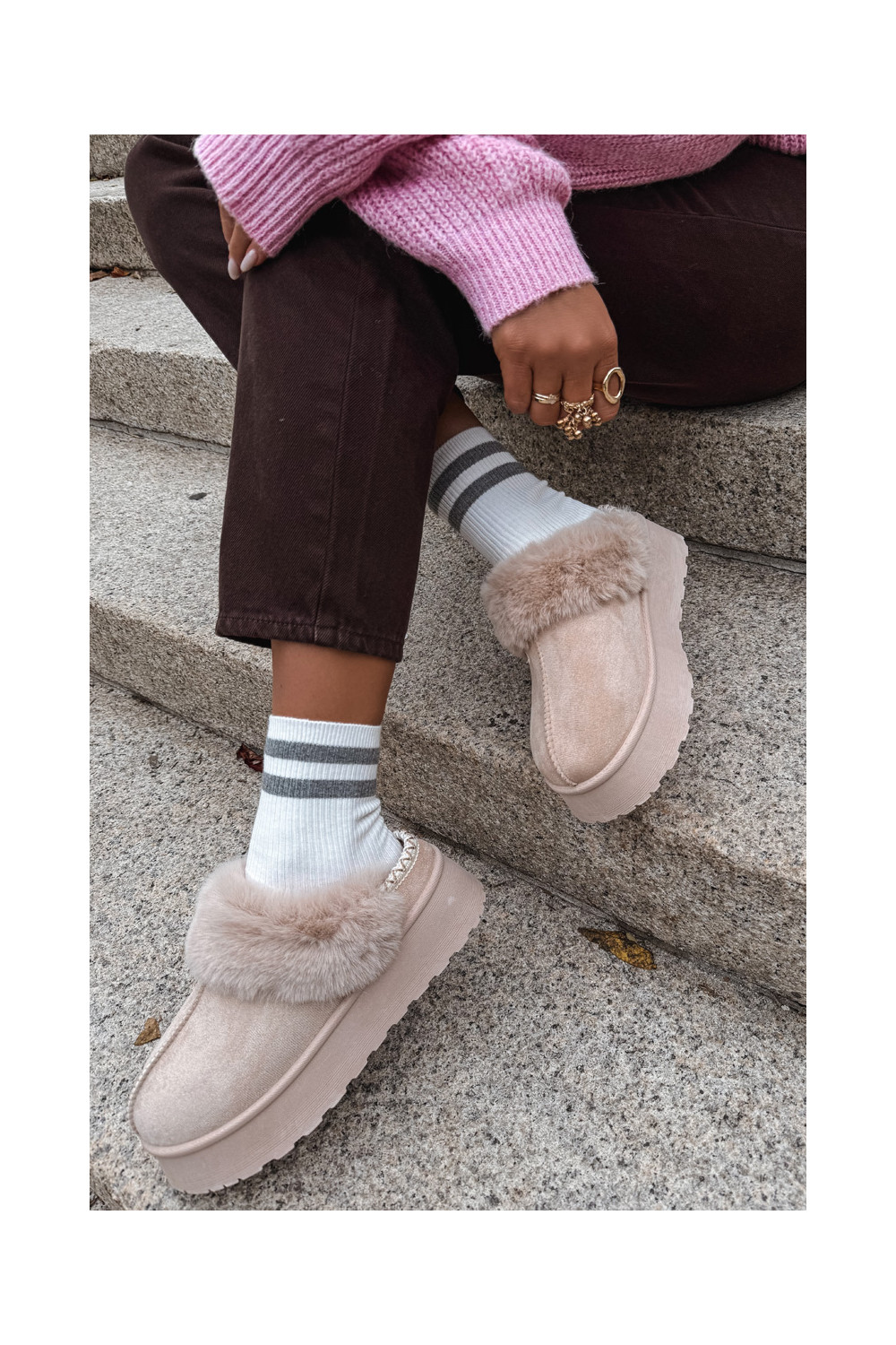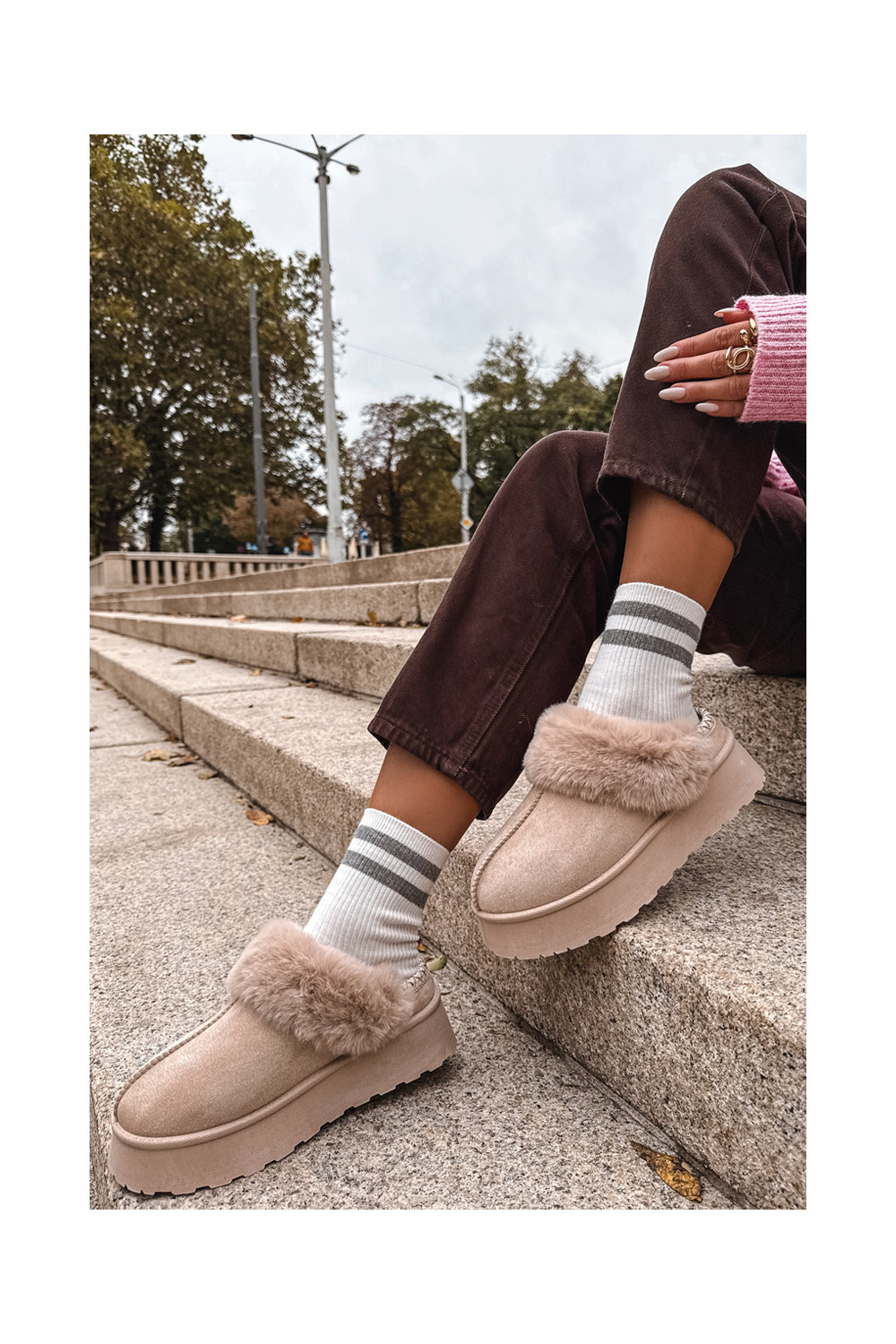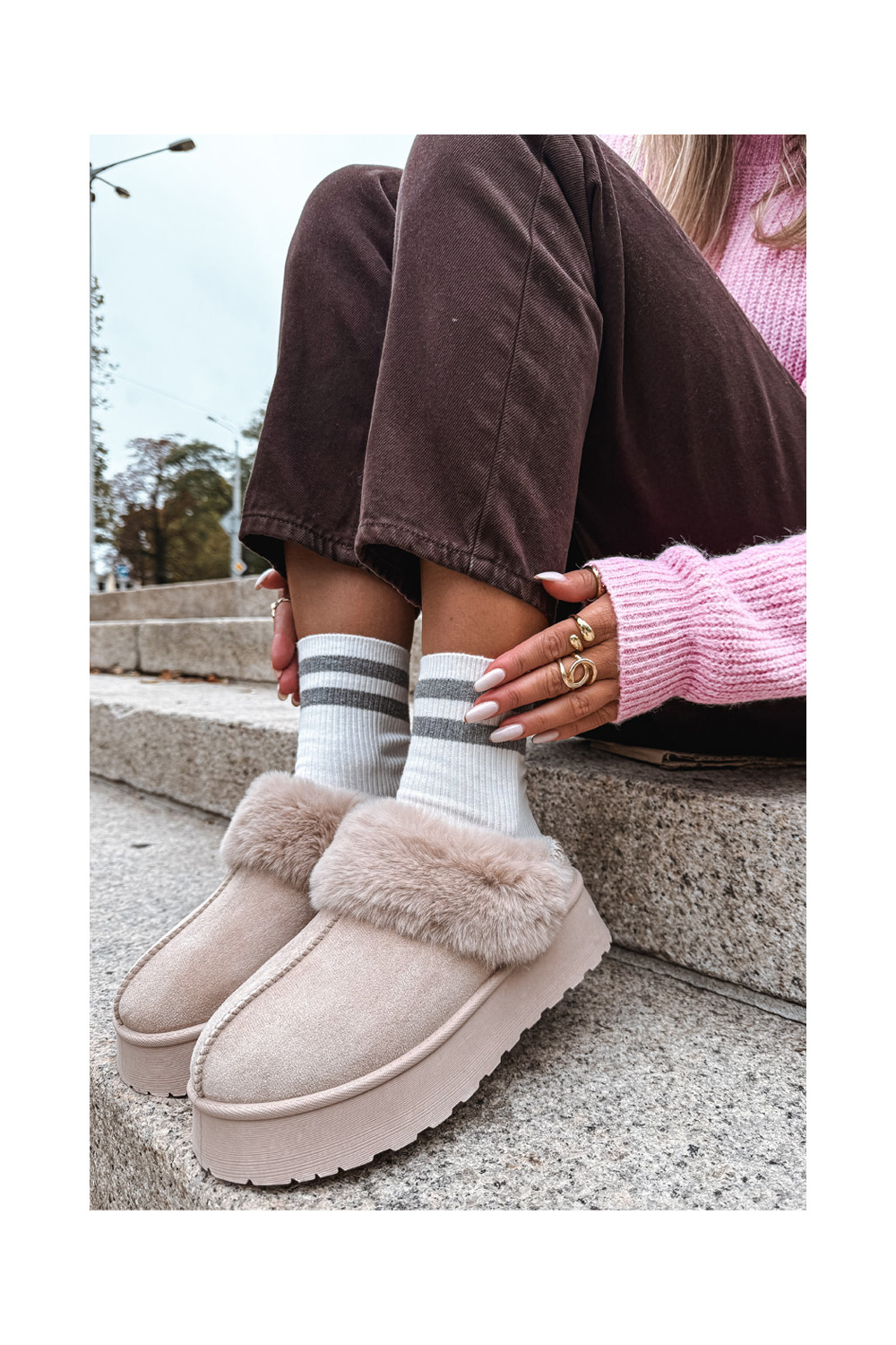 Sněhule s platformou s kožešinou I Haftem béžové Querina