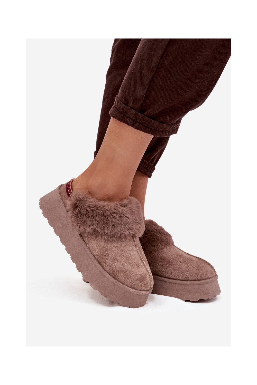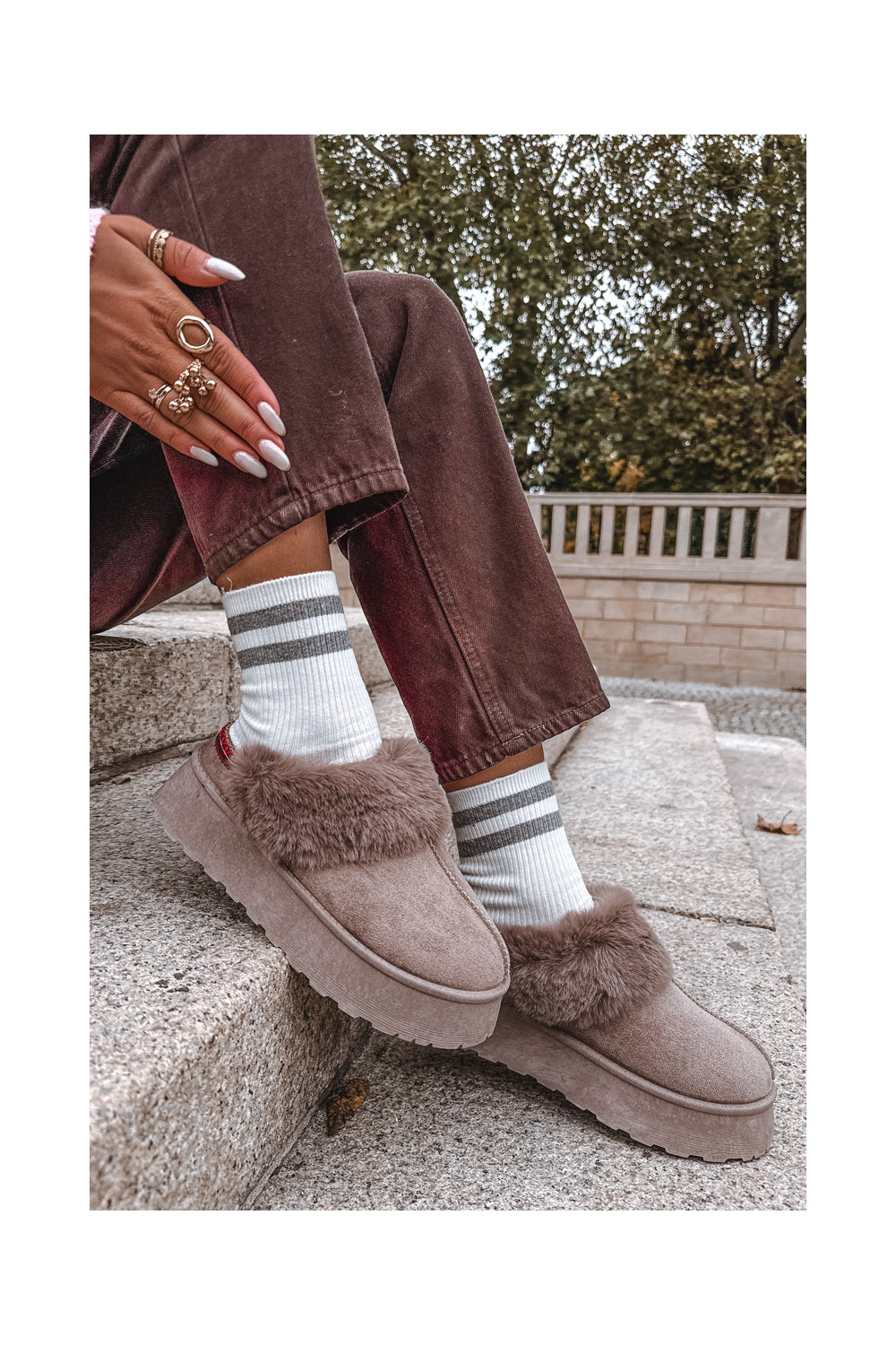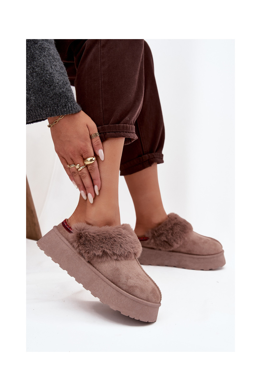 Sněhule s platformou s kožešinou I Haftem béžové Querina