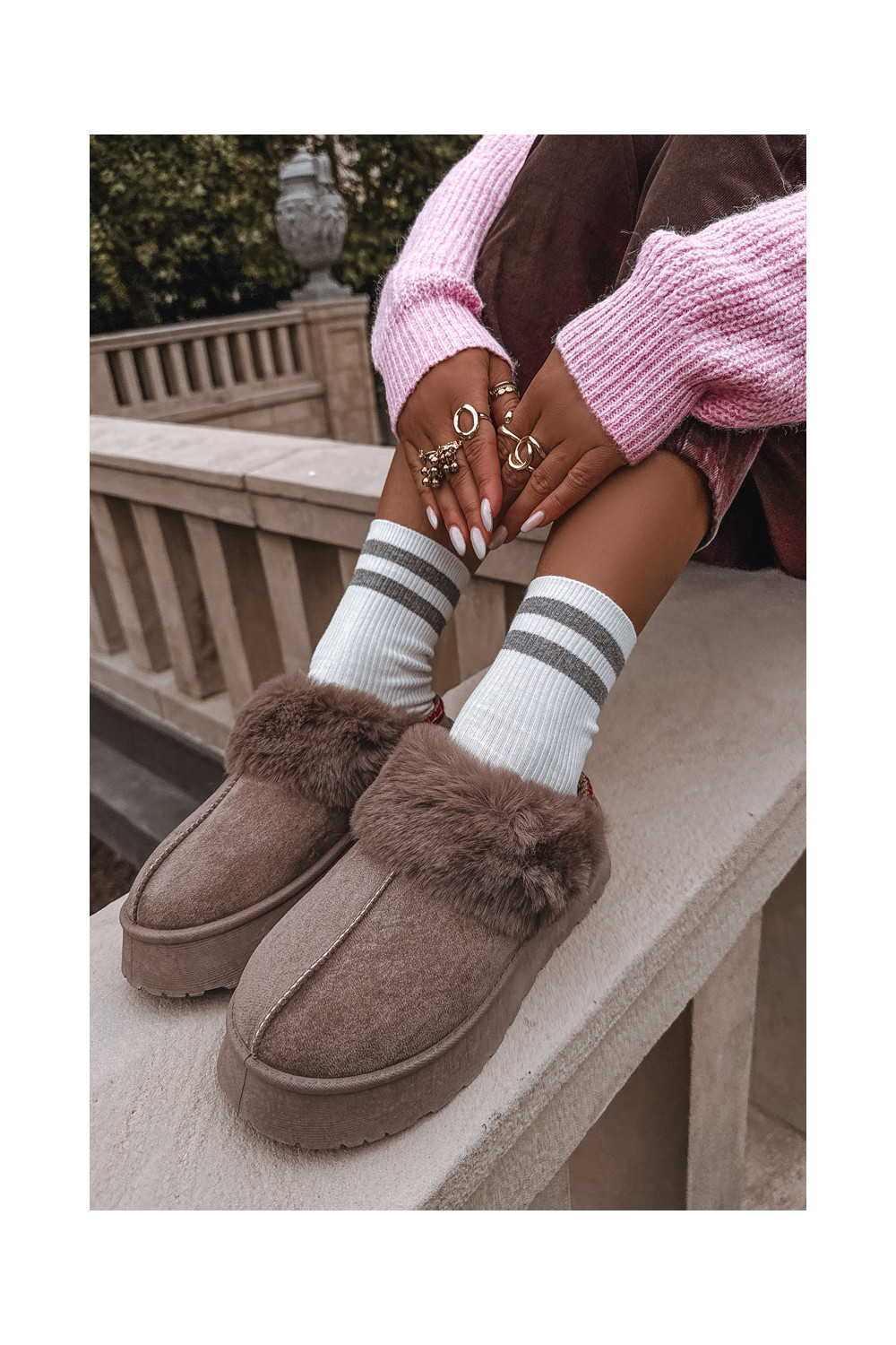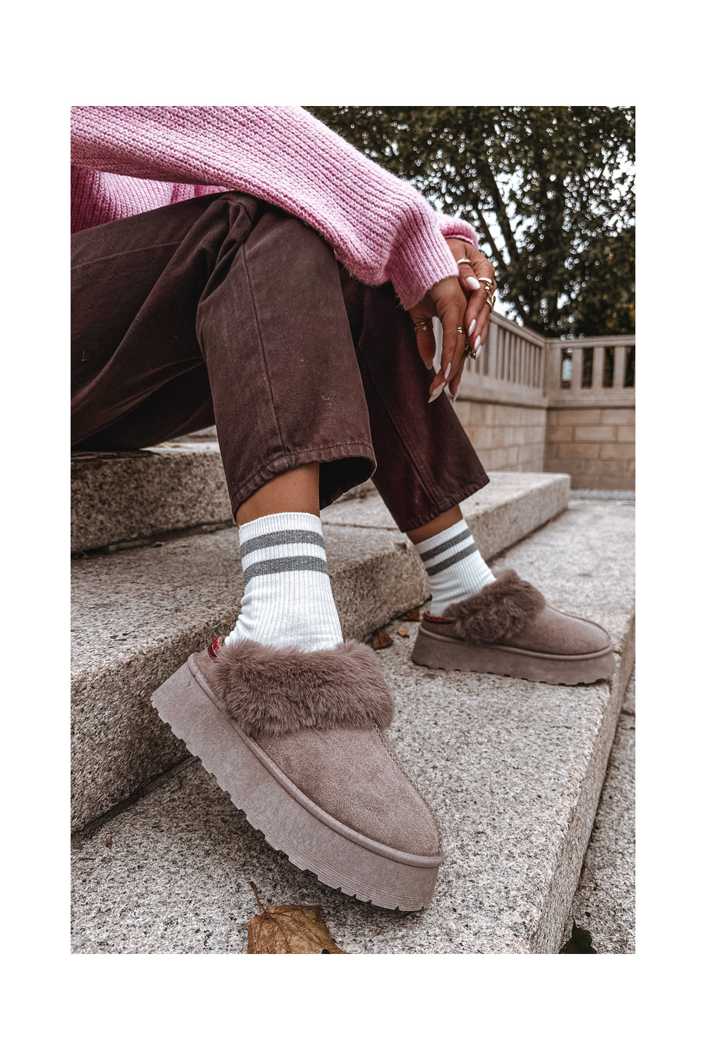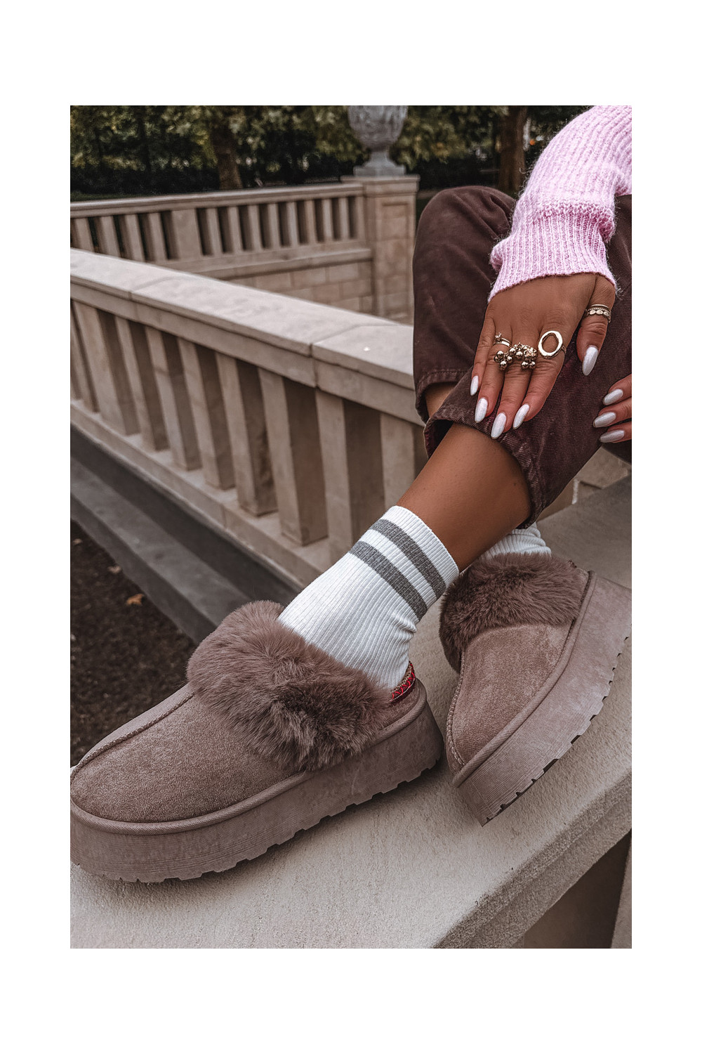 Sněhule s platformou s kožešinou I Haftem béžové Querina