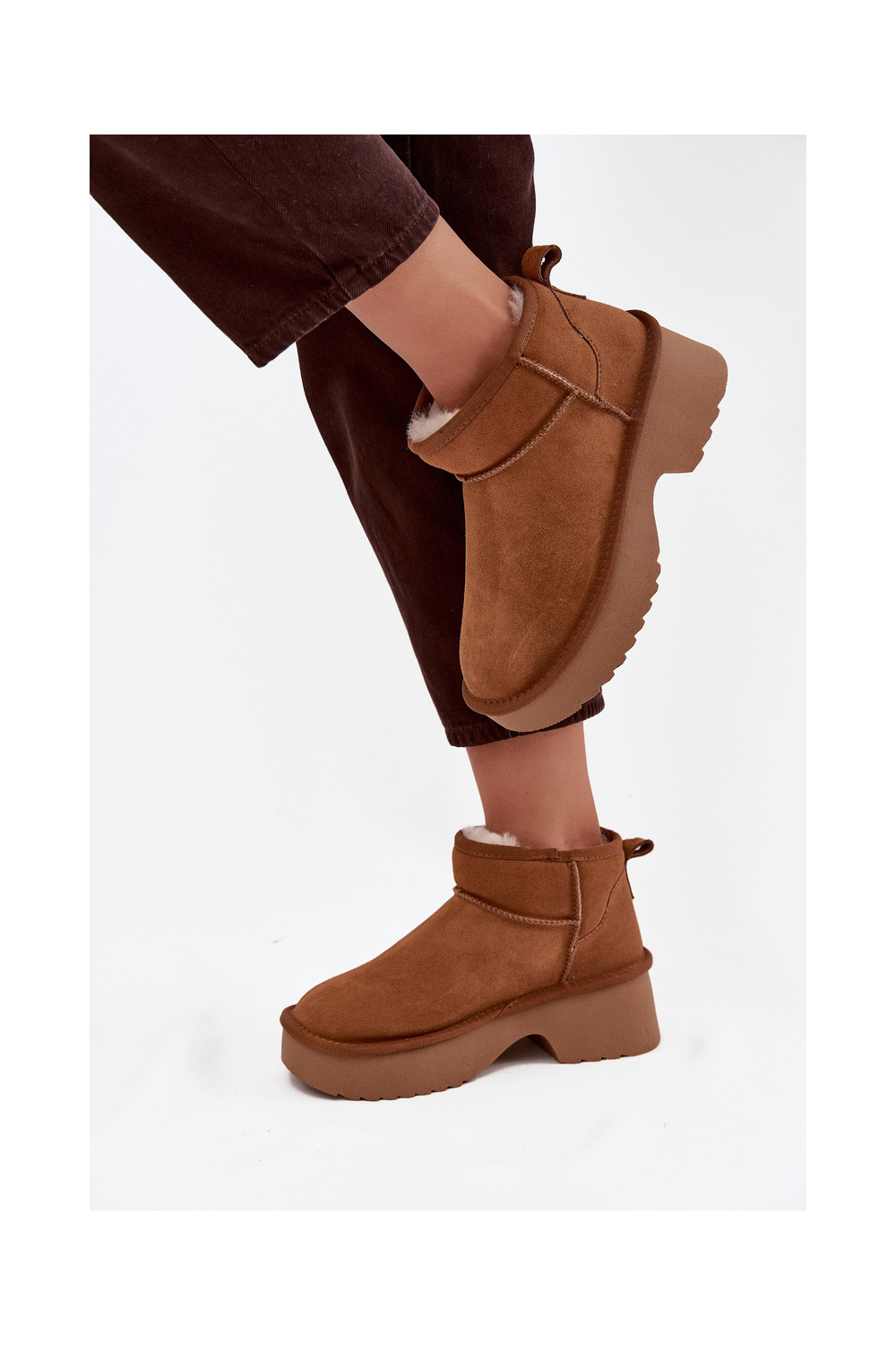 Sněhule Z Naturalnego Zamszu zateplené s kožešinou uvnitř hnědáMilora