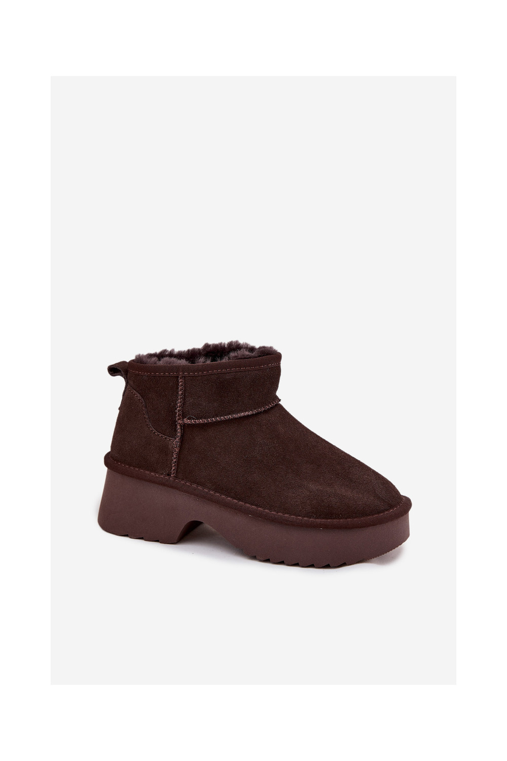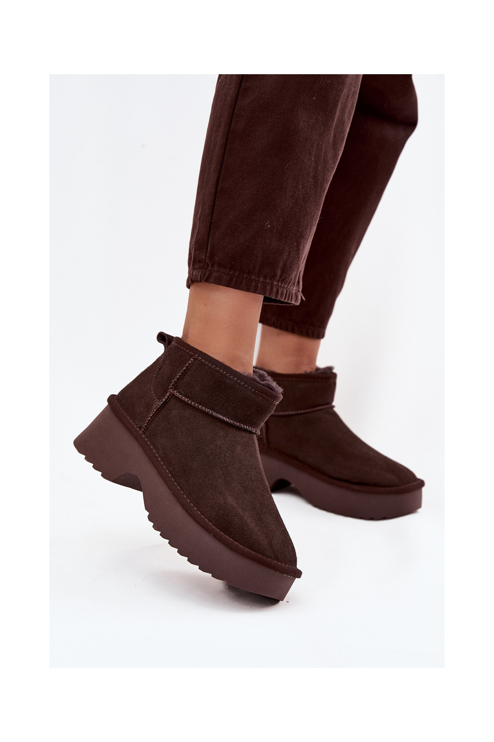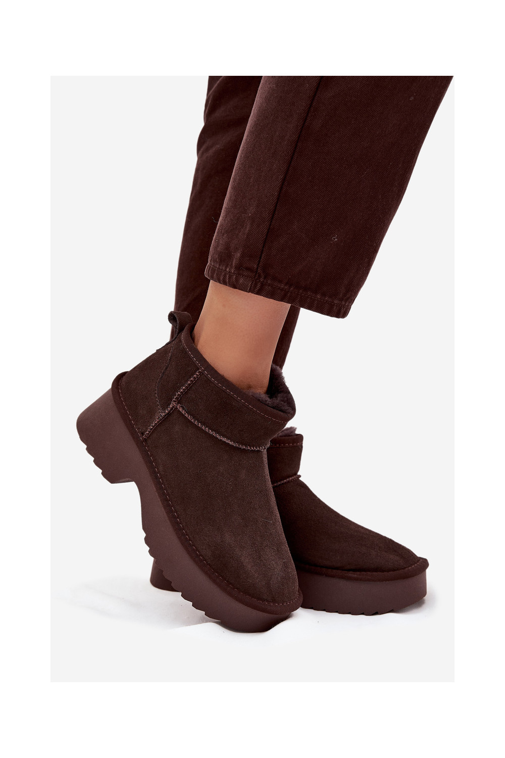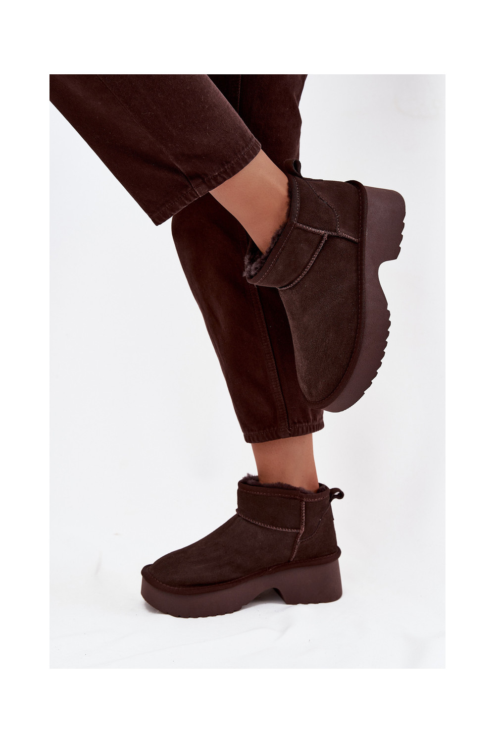 Sněhule Z Naturalnego Zamszu zateplené s kožešinou uvnitř Czekoladowe Milora