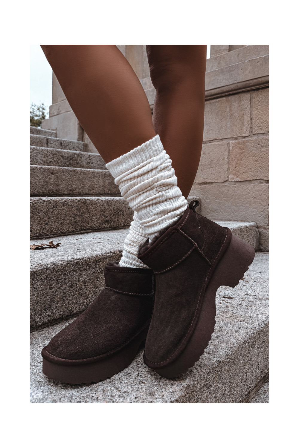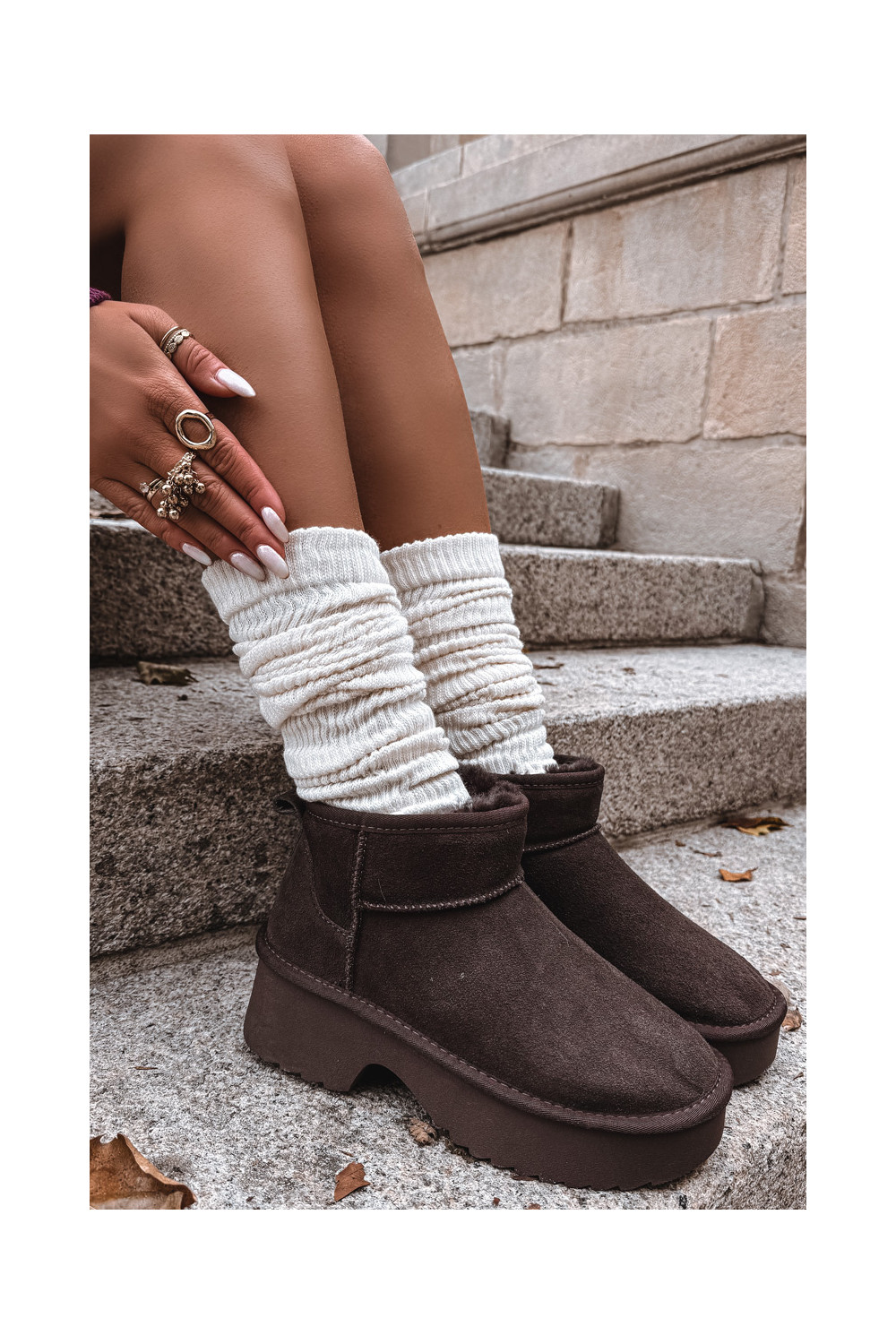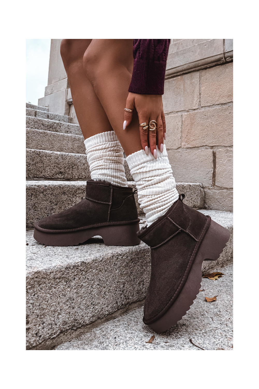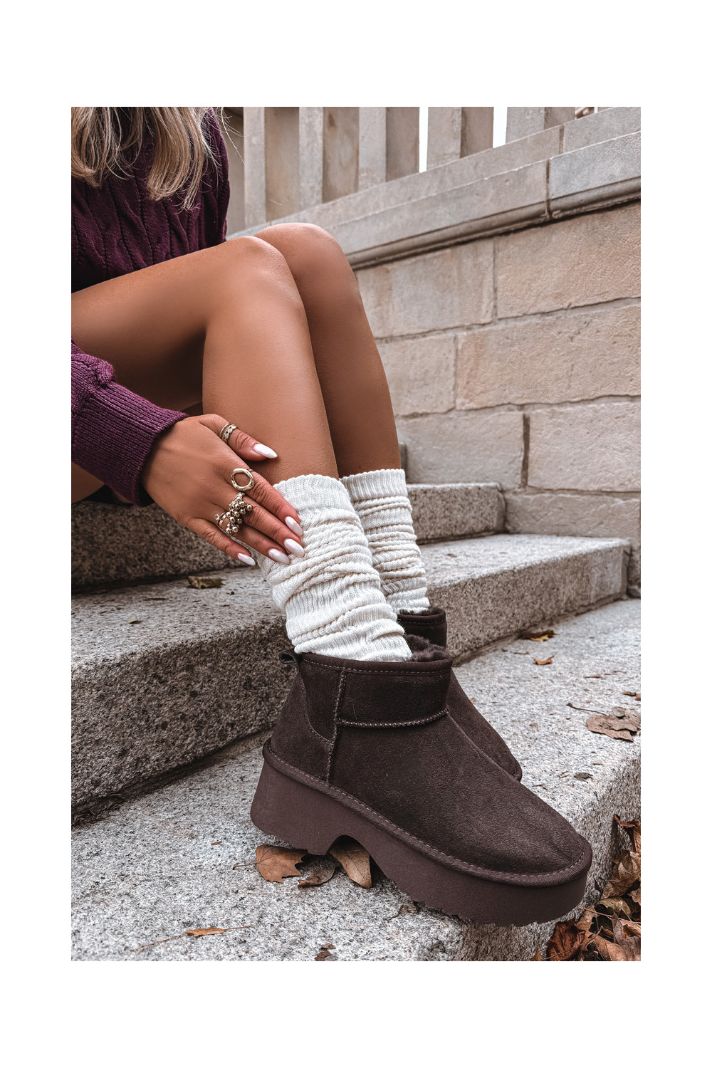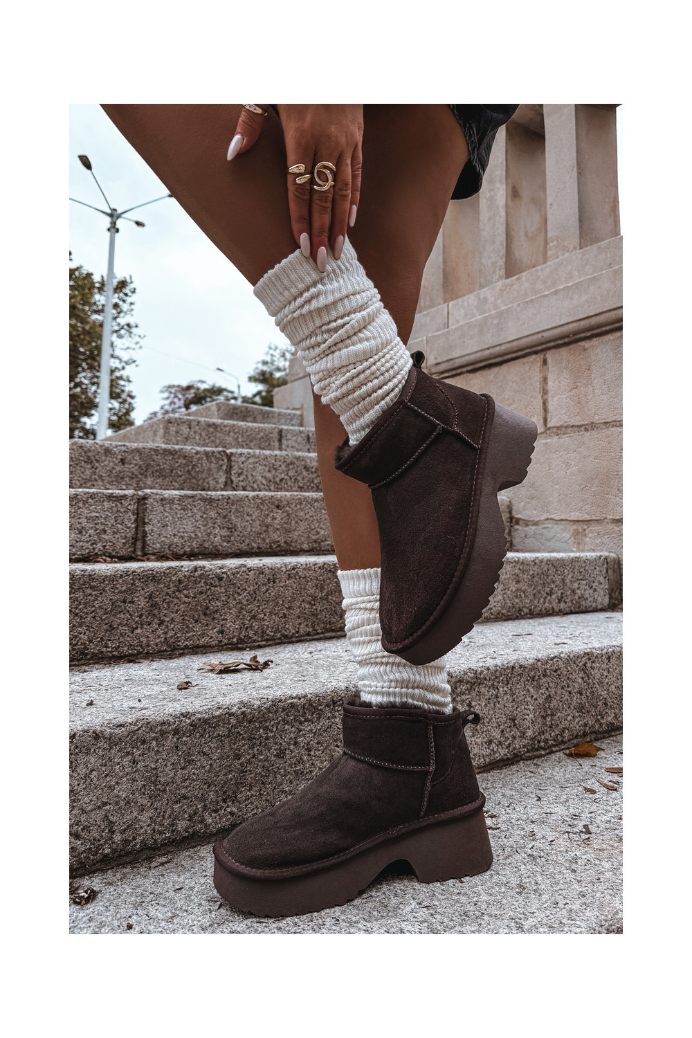 Sněhule Z Naturalnego Zamszu zateplené s kožešinou uvnitř Czekoladowe Milora