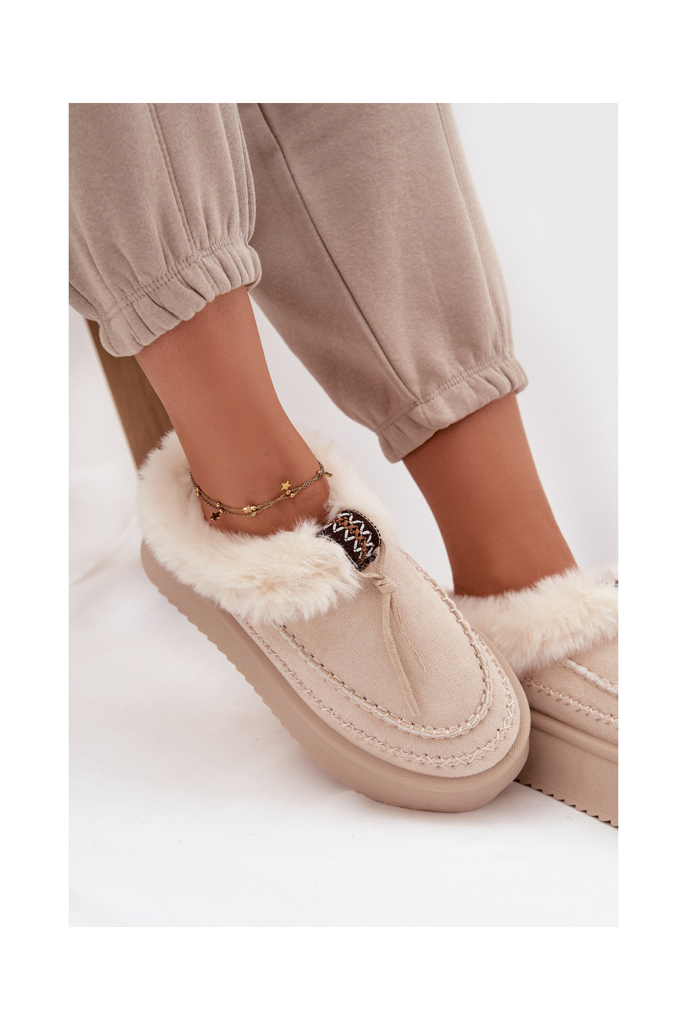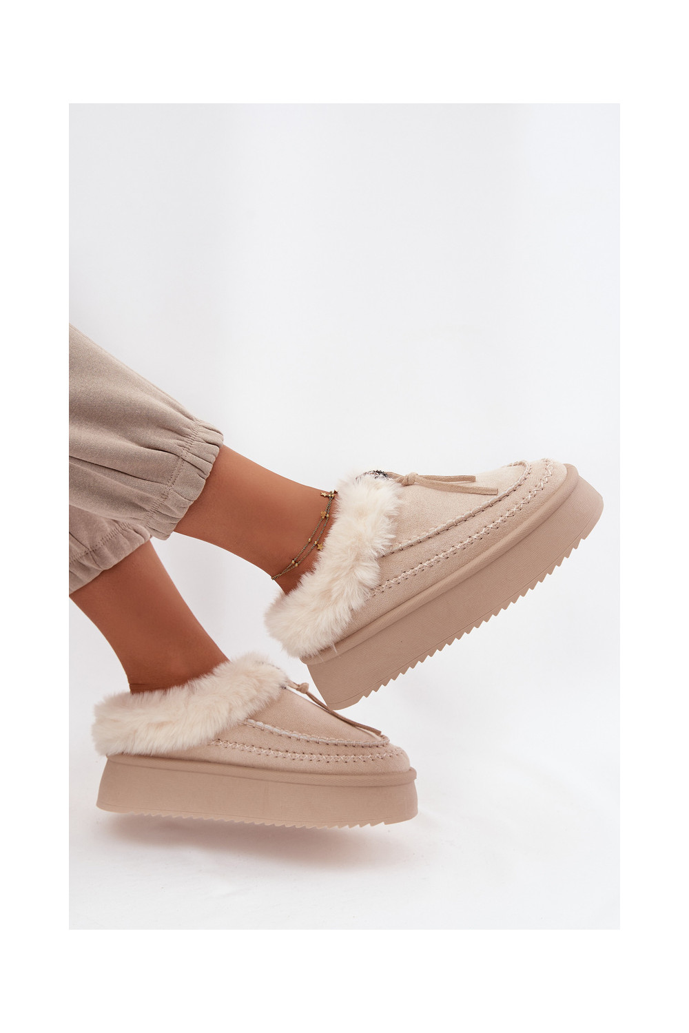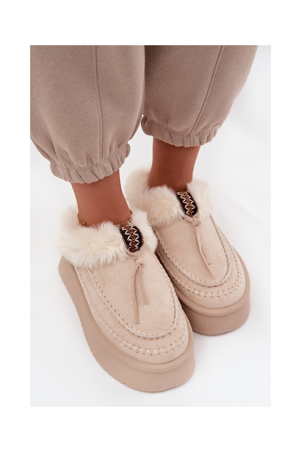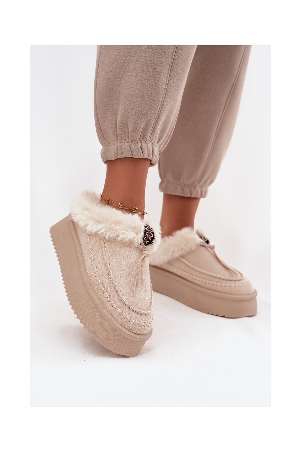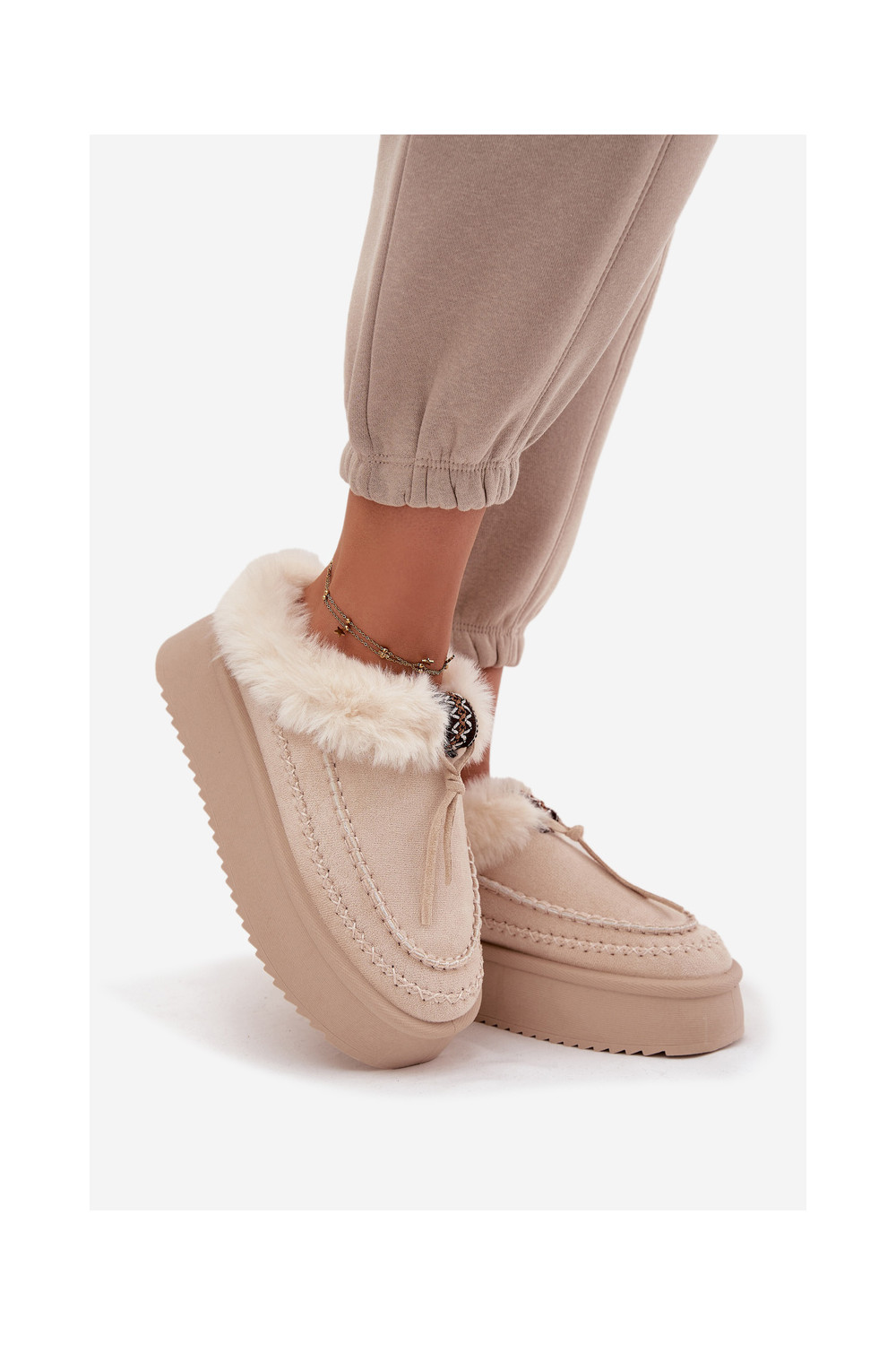 Sněhule s kožešinou s platformou béžové Rosmira