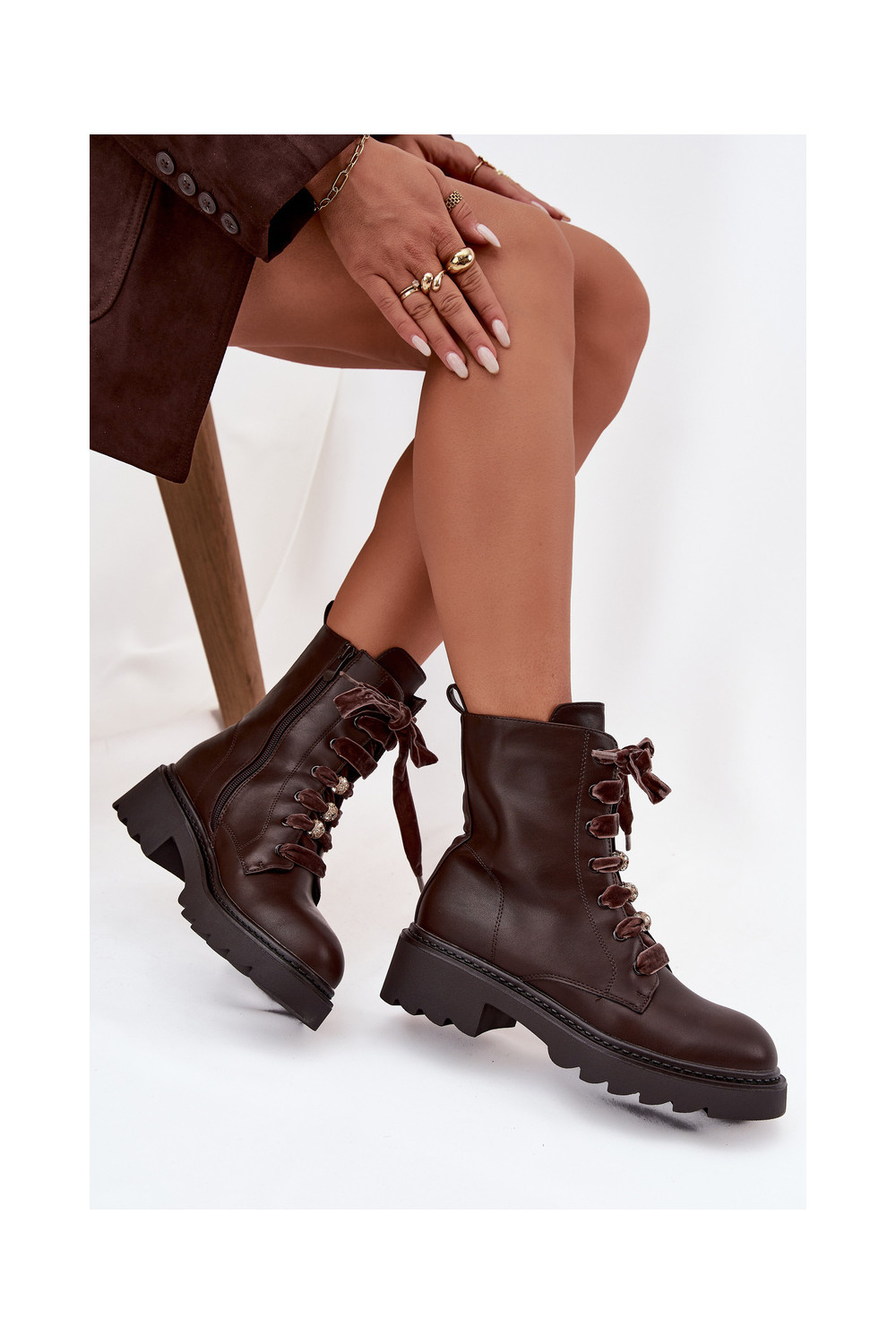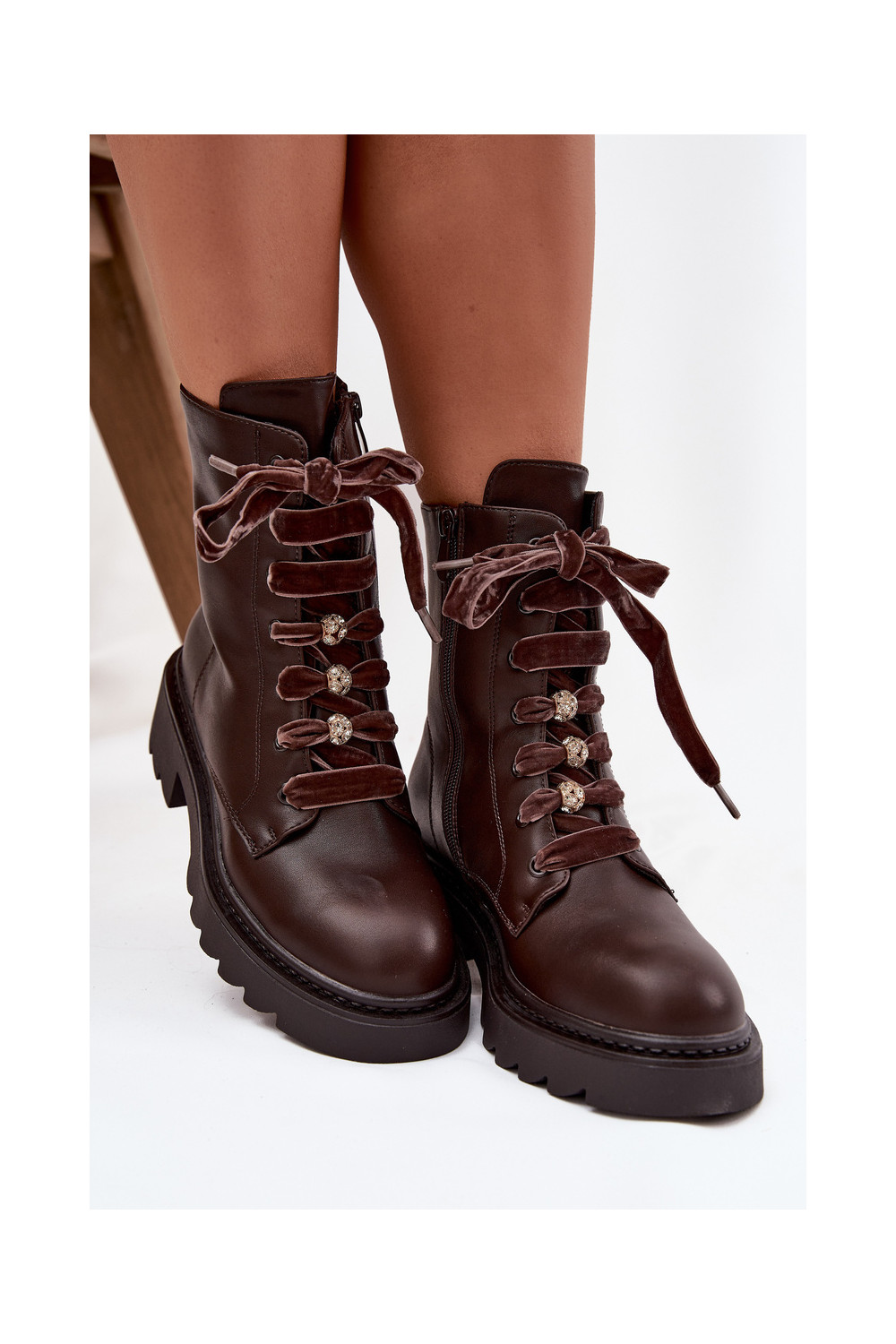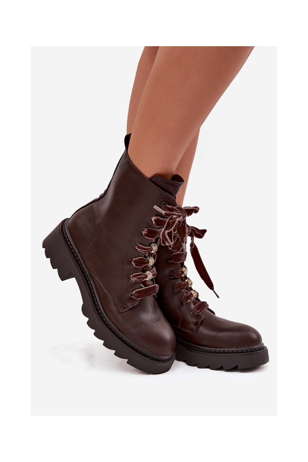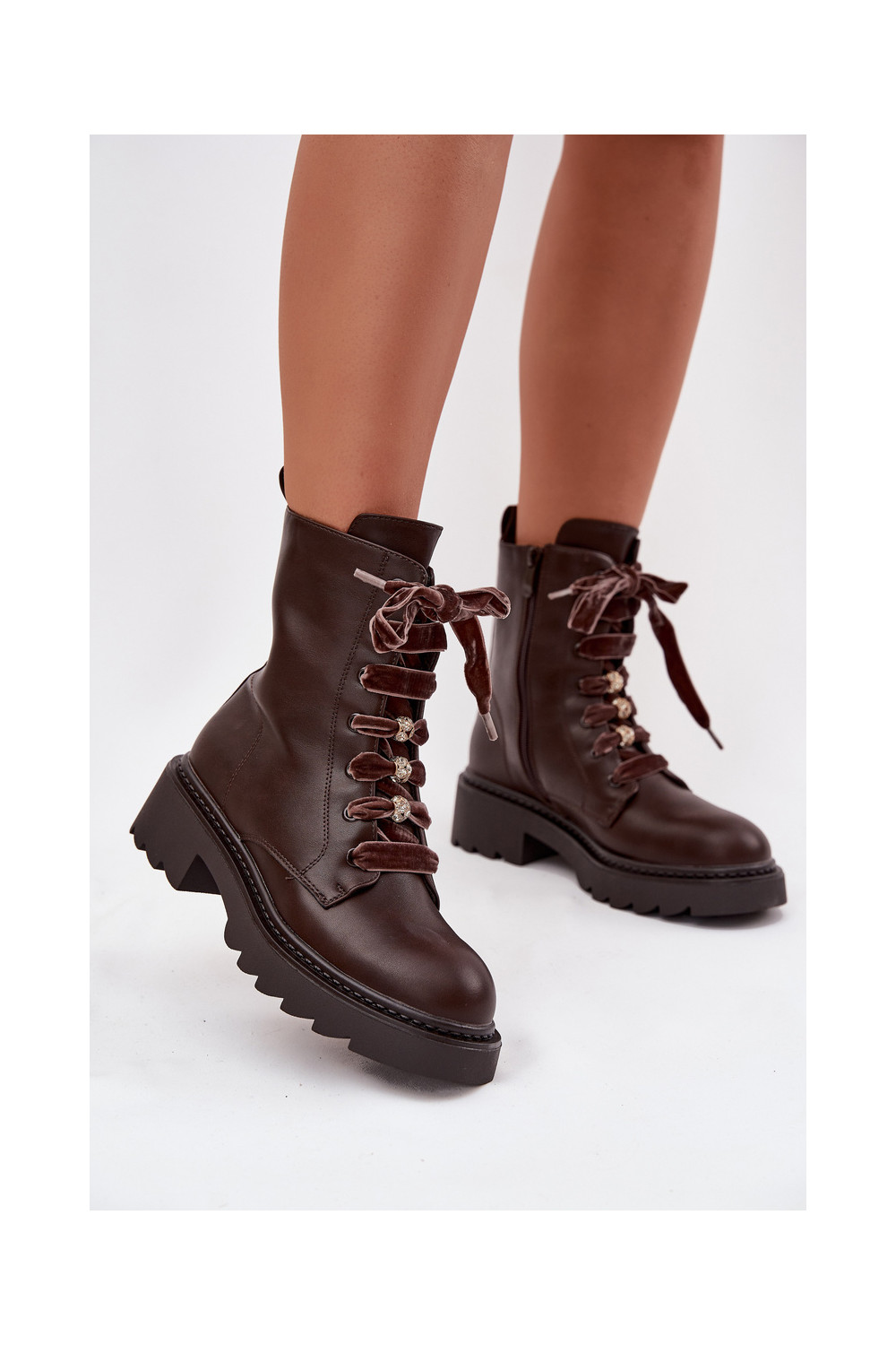 zateplené Dámské podpatky m Czekoladowe Elindra