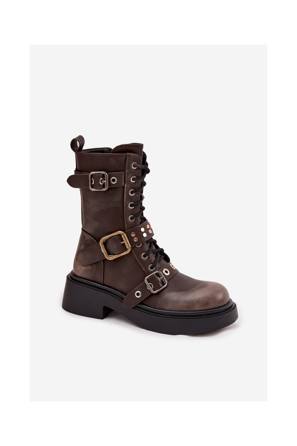 zateplené boty s přezkami hnědá Marisse