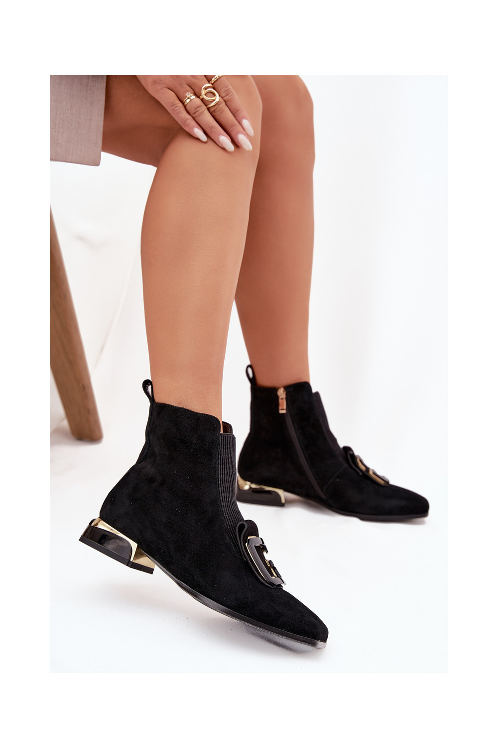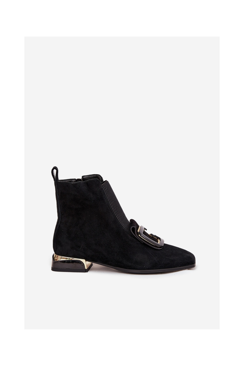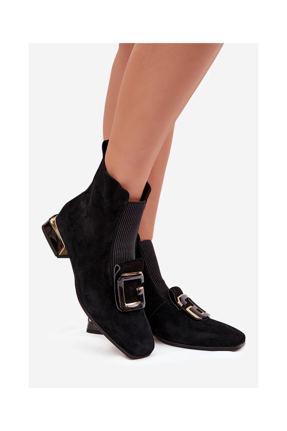 Semišové boty na nízkém podpatku s ornamenty D&A MR52-217 Černé
