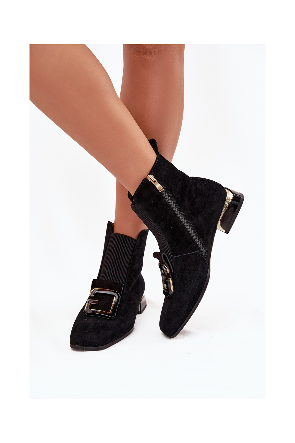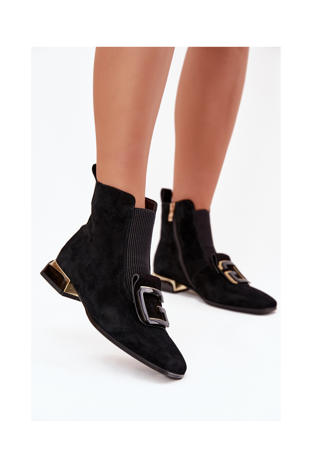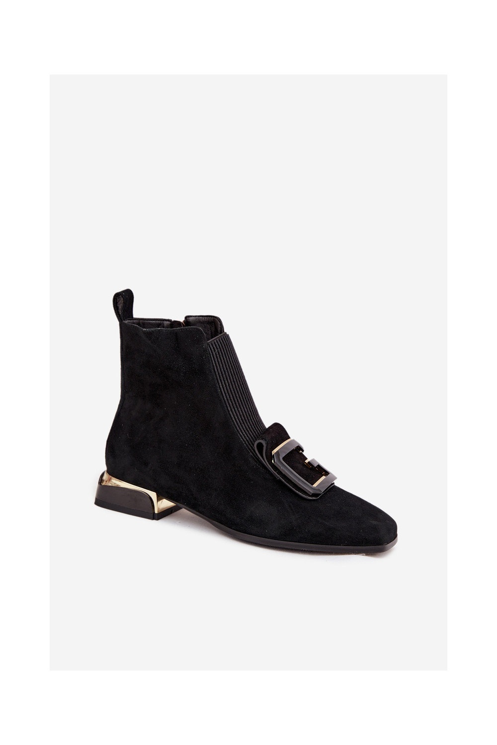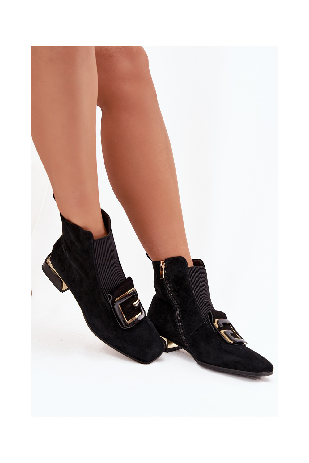 Semišové boty na nízkém podpatku s ornamenty D&A MR52-217 Černé