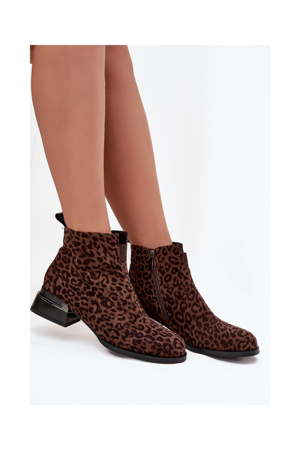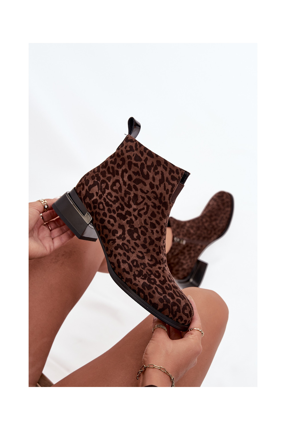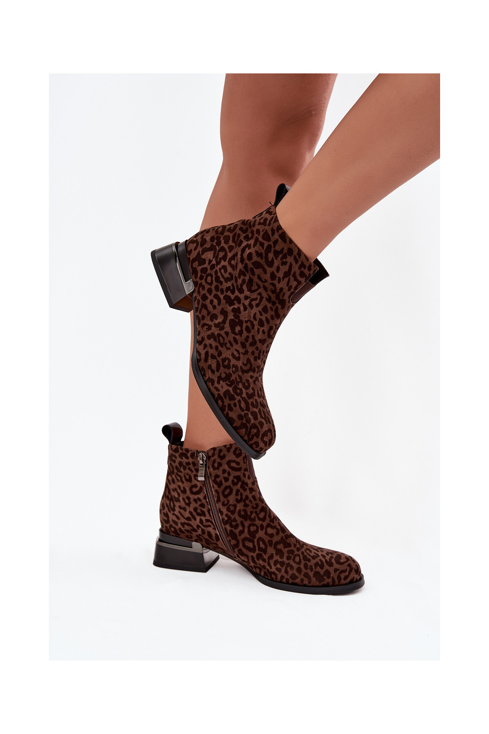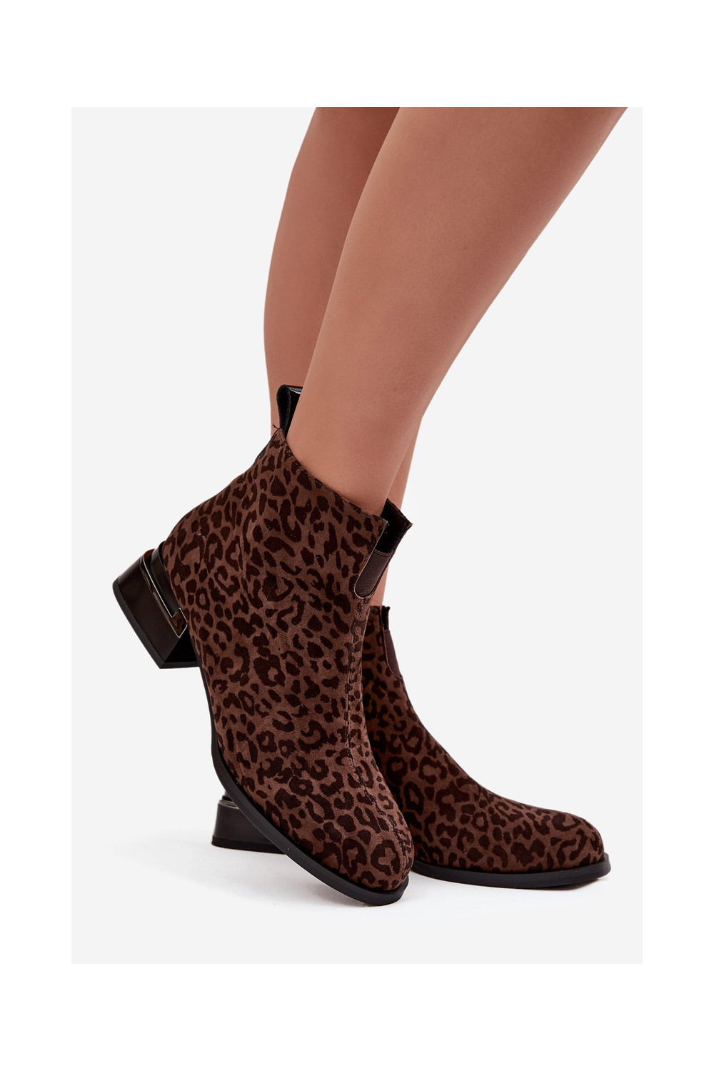 Dřeváky Z Naturalnego Zamszu se vzory leopardí kožešiny D&A JC52-852 hnědá