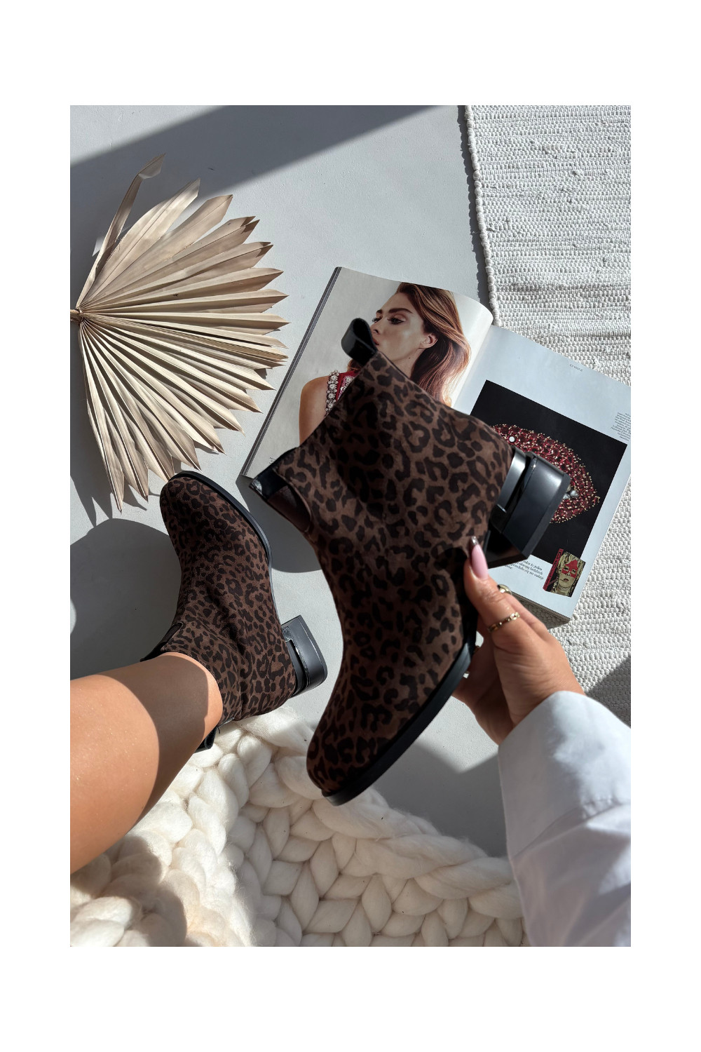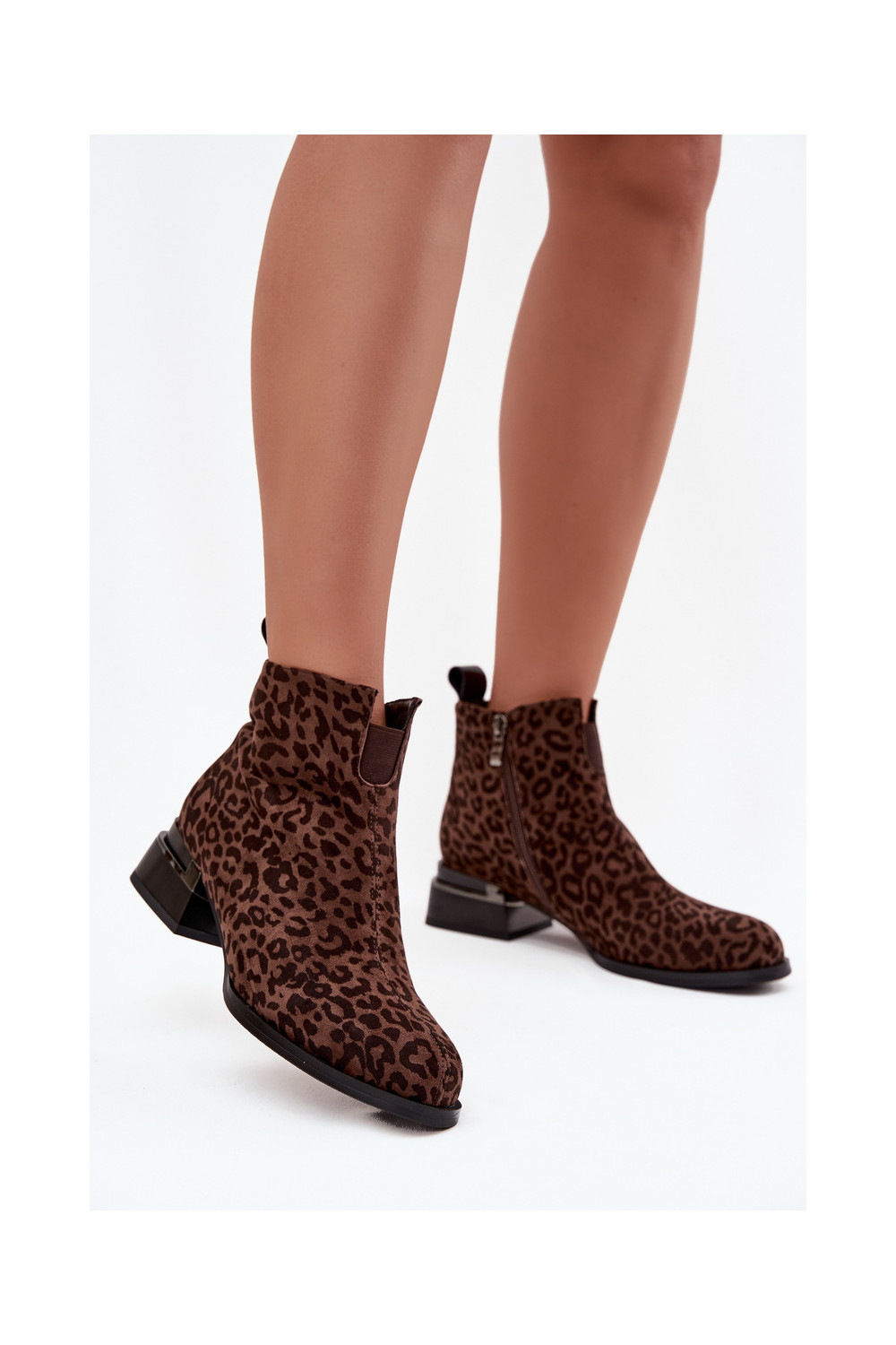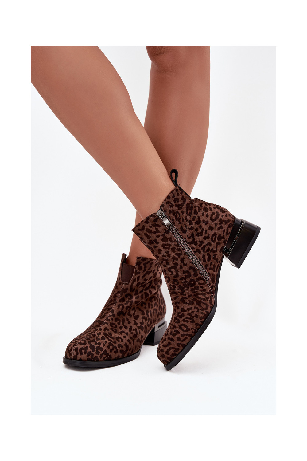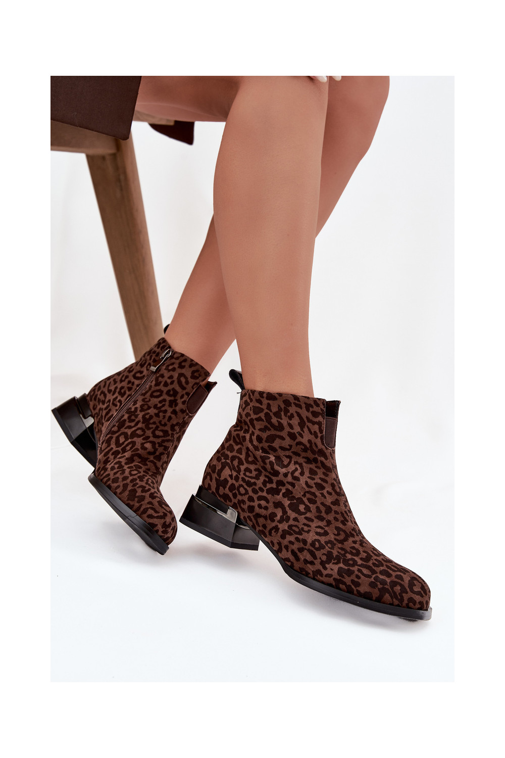 Dřeváky Z Naturalnego Zamszu se vzory leopardí kožešiny D&A JC52-852 hnědá
