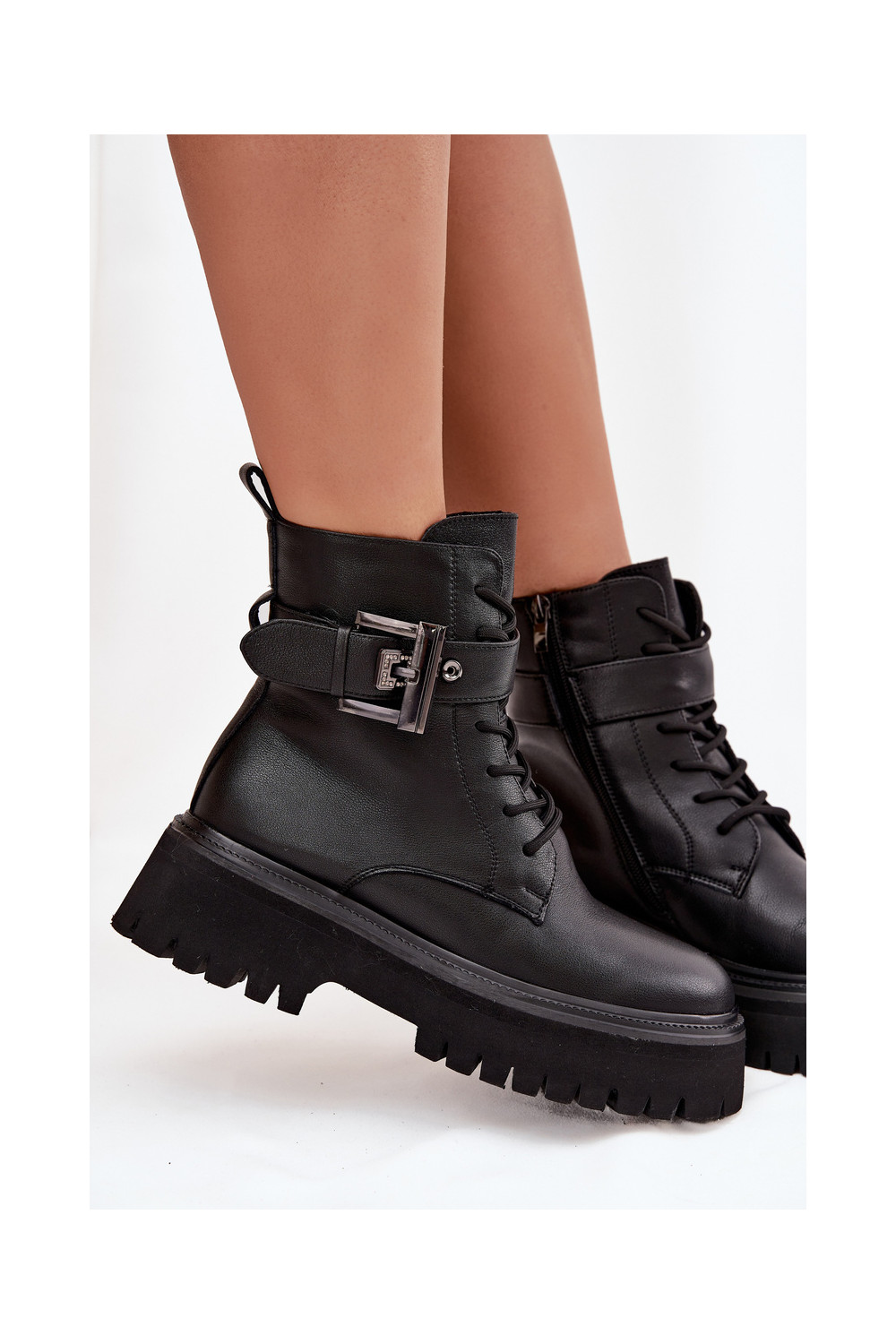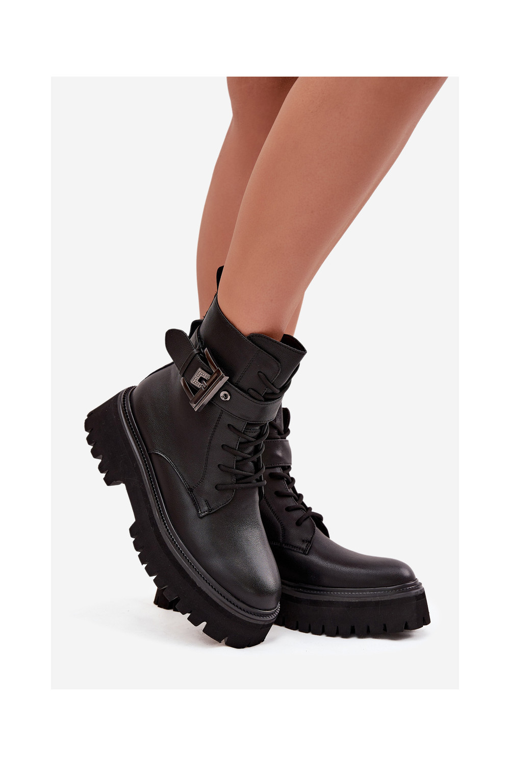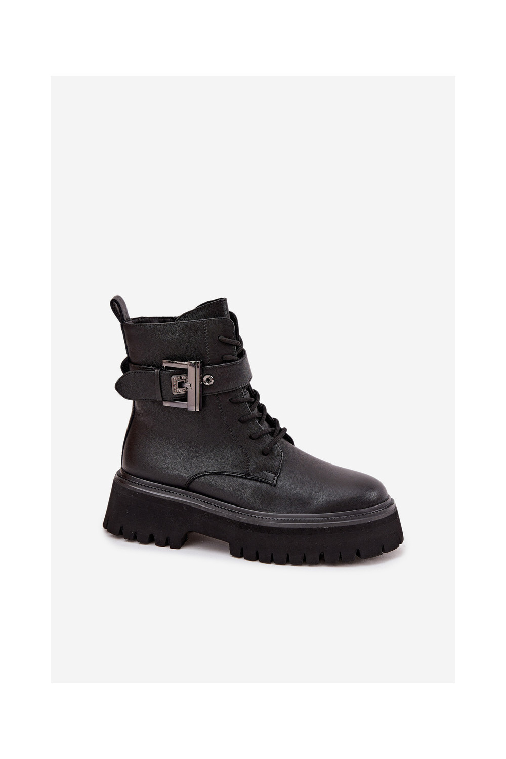 Dřeváky Dámské boty zateplené zdobené s přezkami D&A MK52-032 Černé