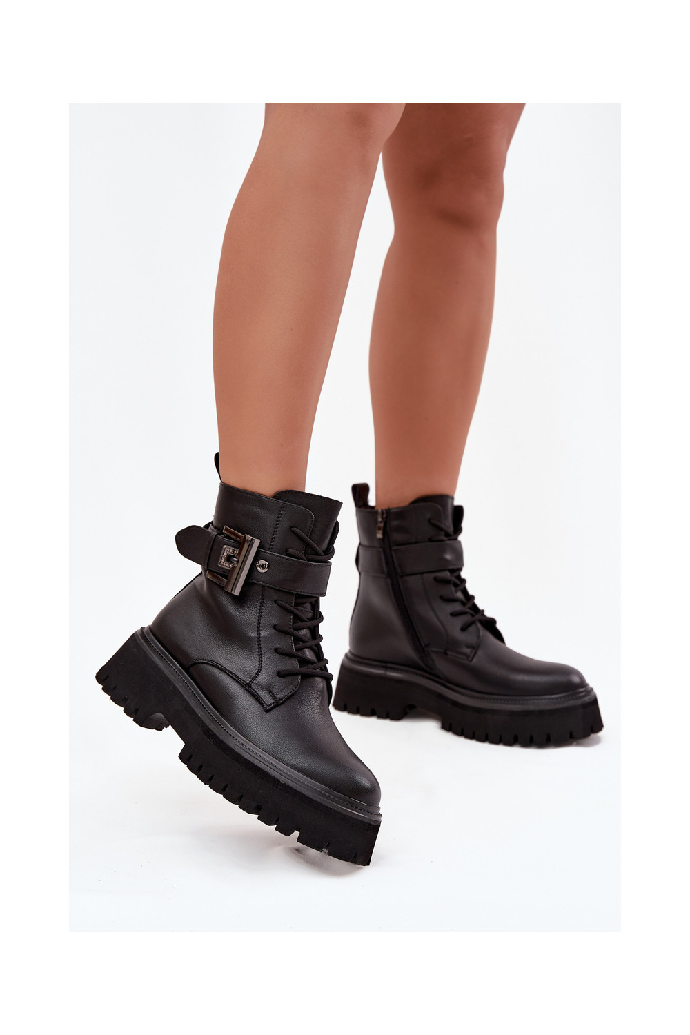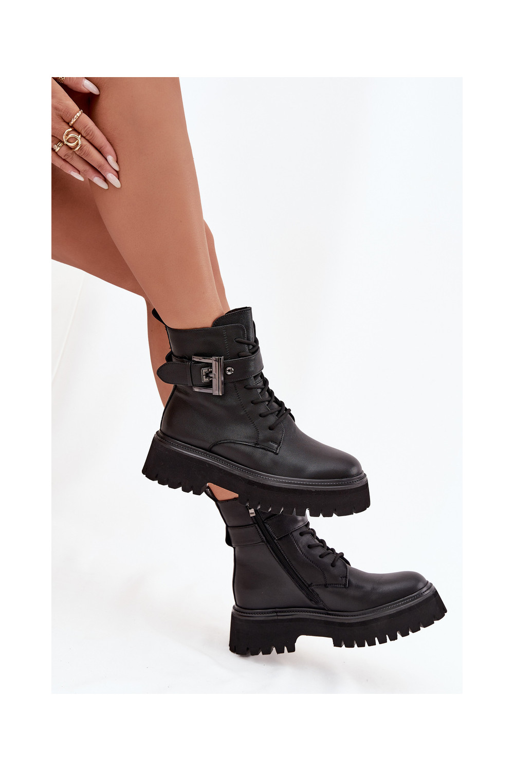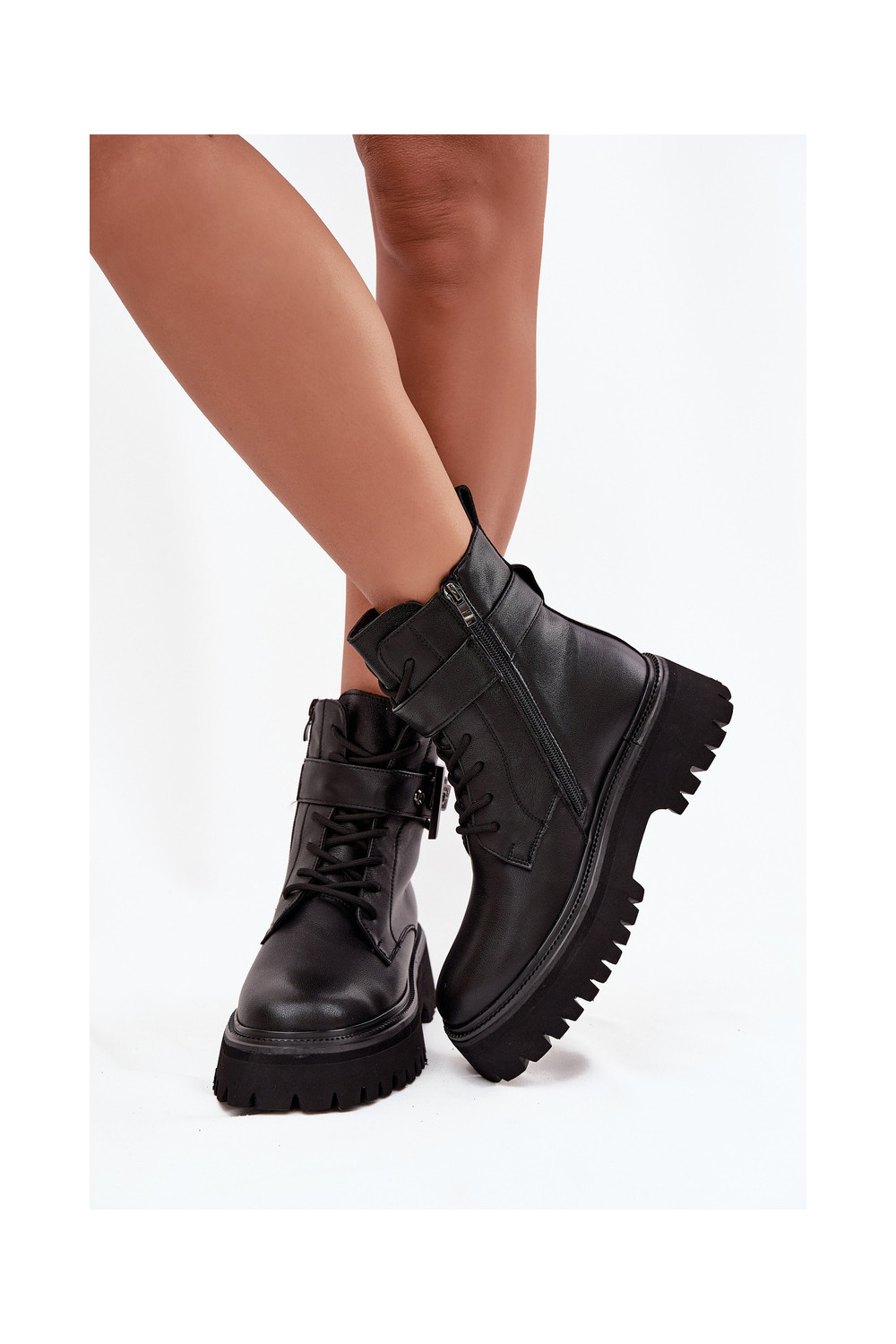 Dřeváky Dámské boty zateplené zdobené s přezkami D&A MK52-032 Černé
