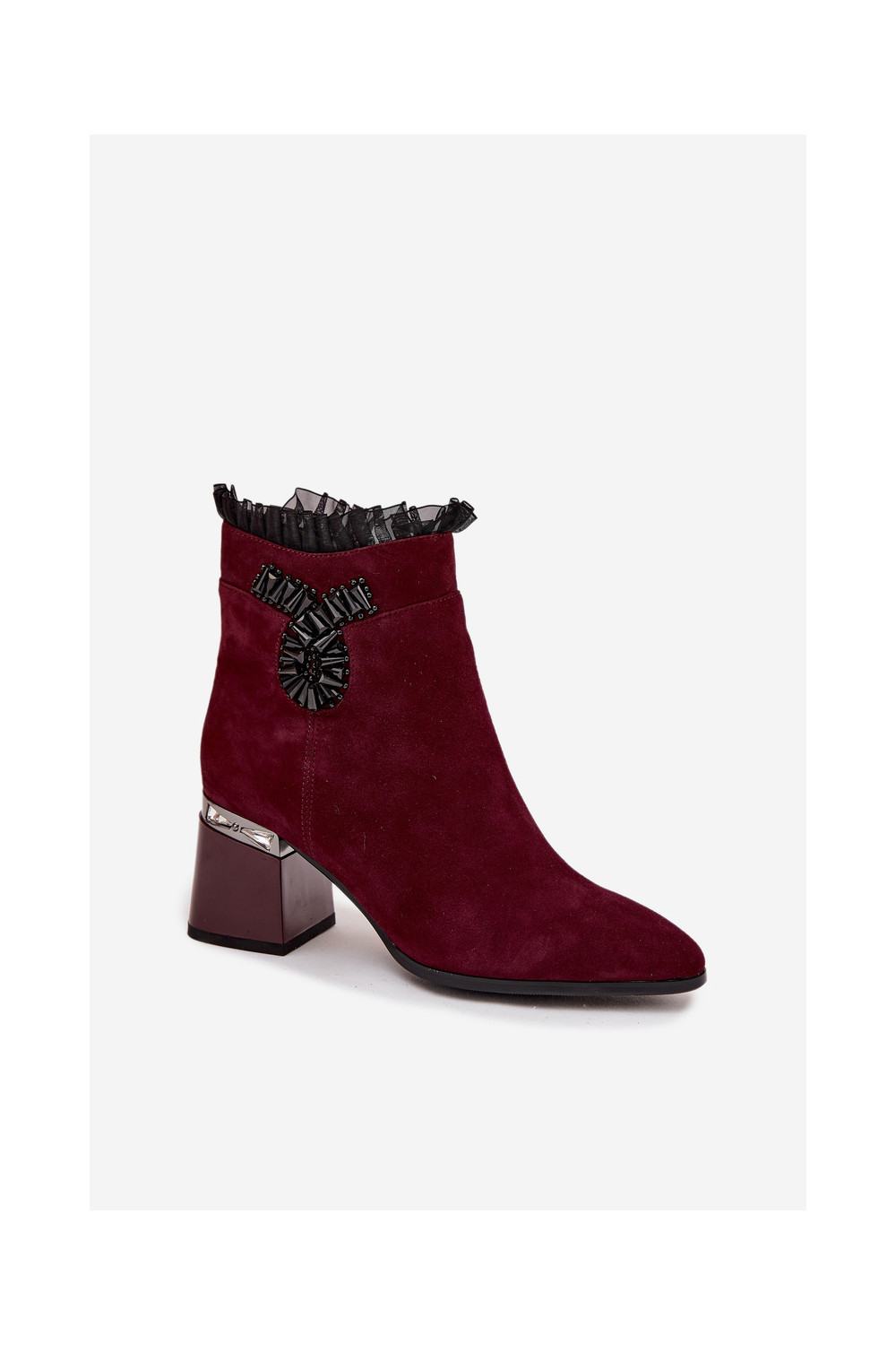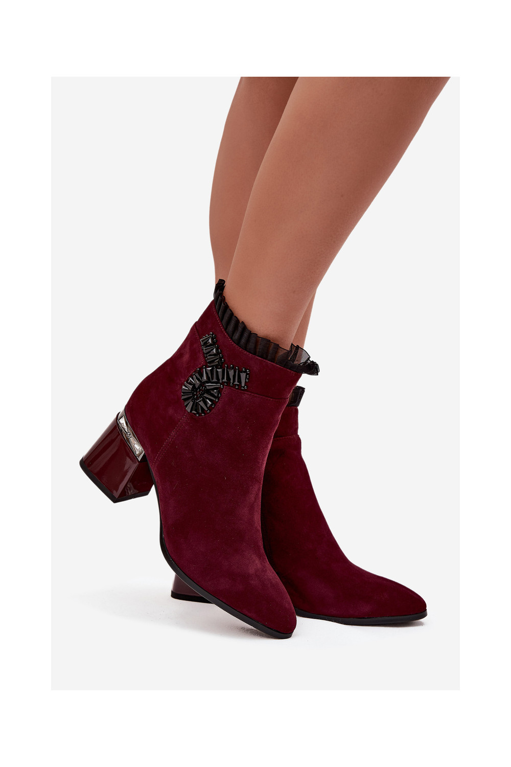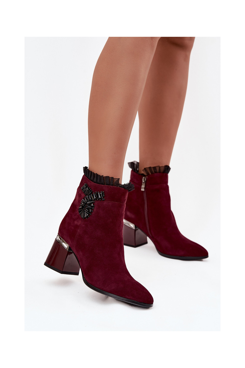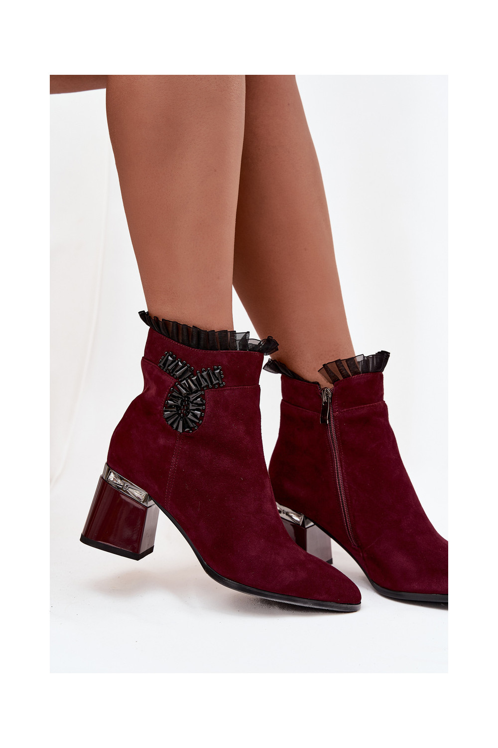 ze semiše Dámské podpatky s ornamenty zateplené D&A MR52-127 vínová