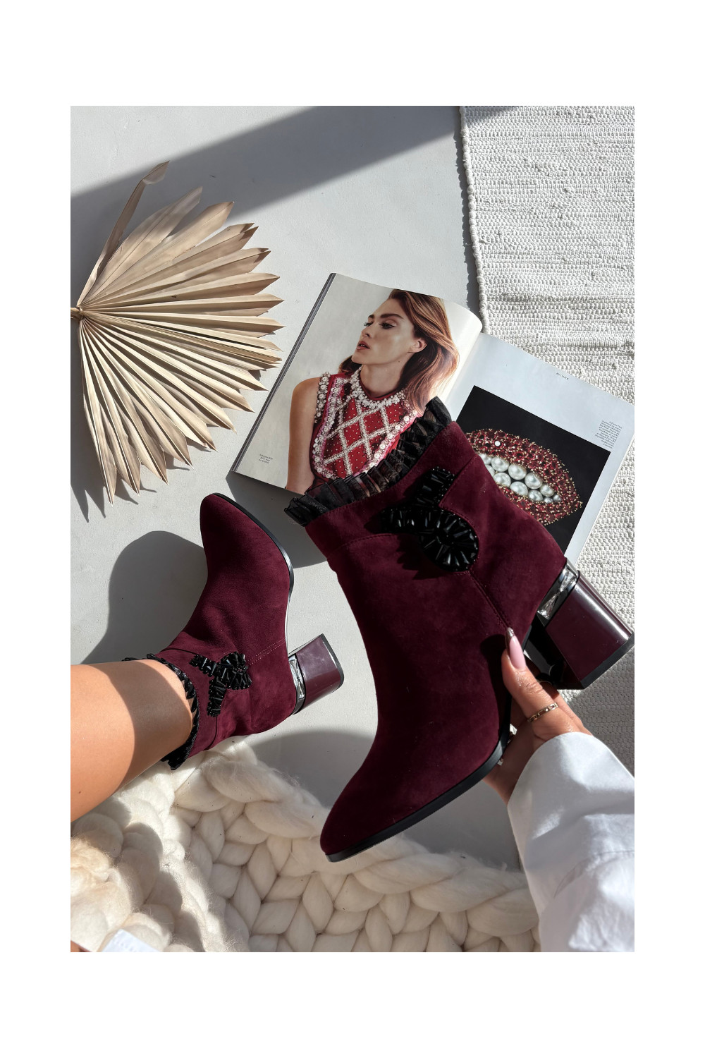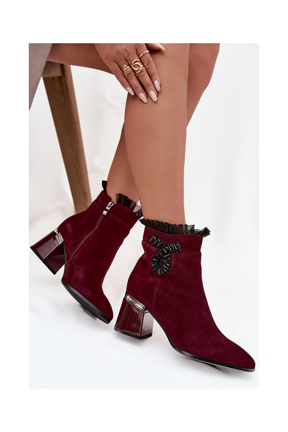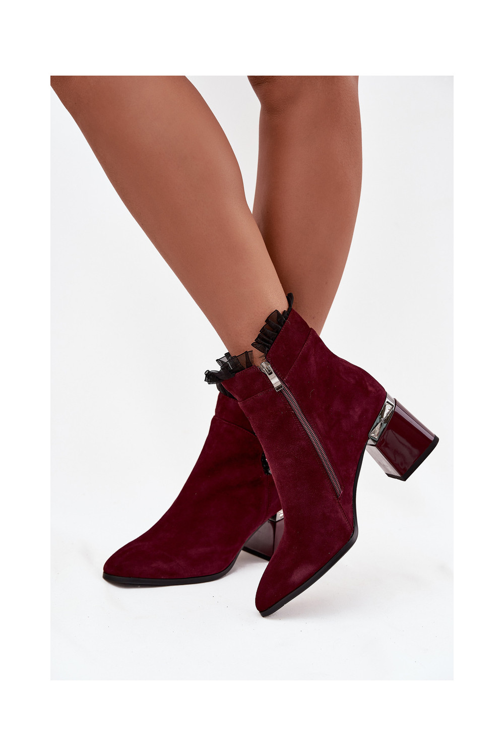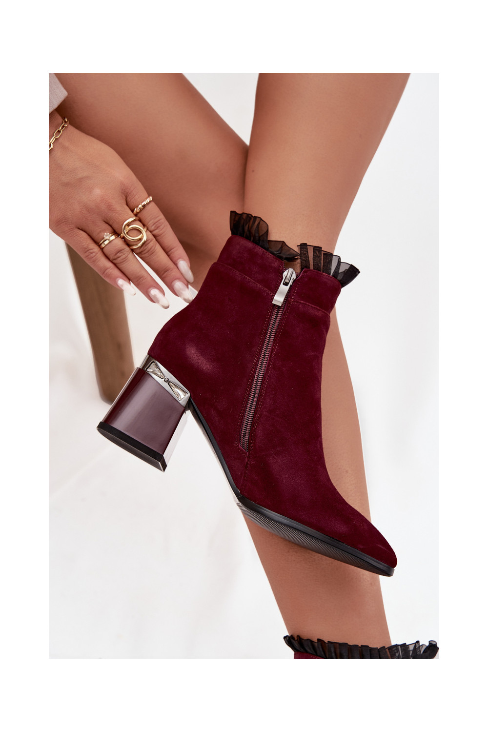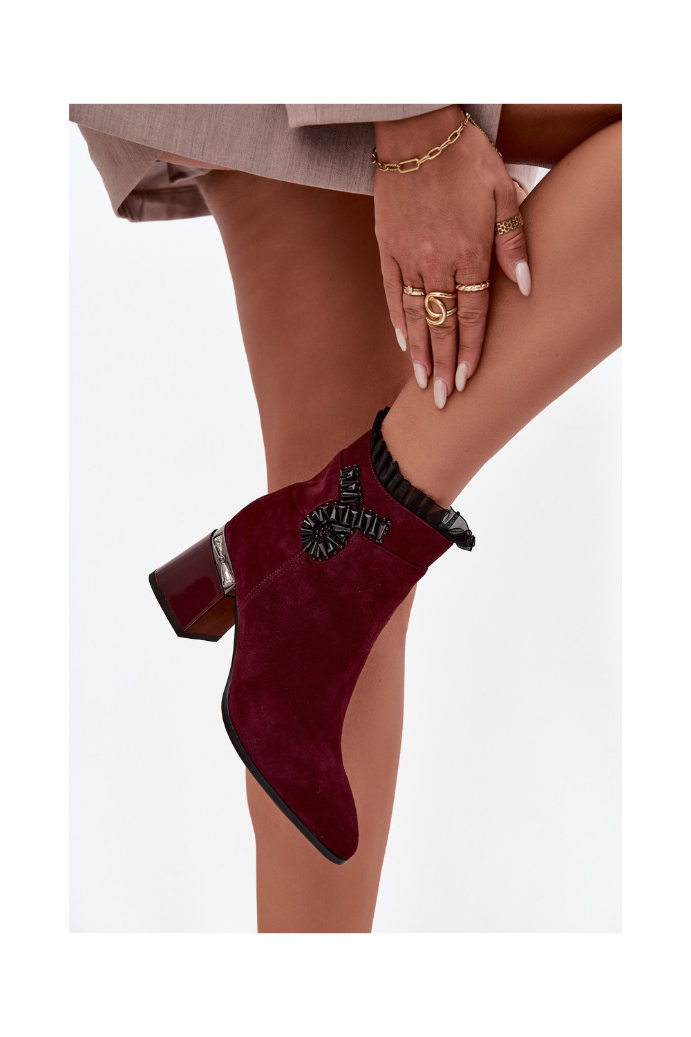 ze semiše Dámské podpatky s ornamenty zateplené D&A MR52-127 vínová