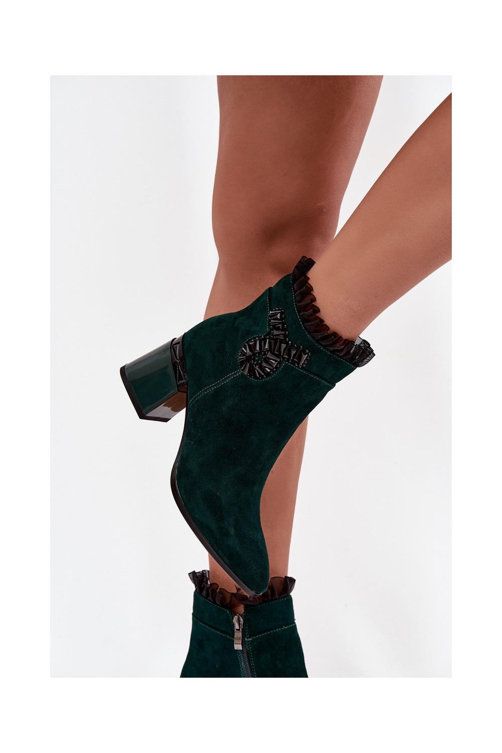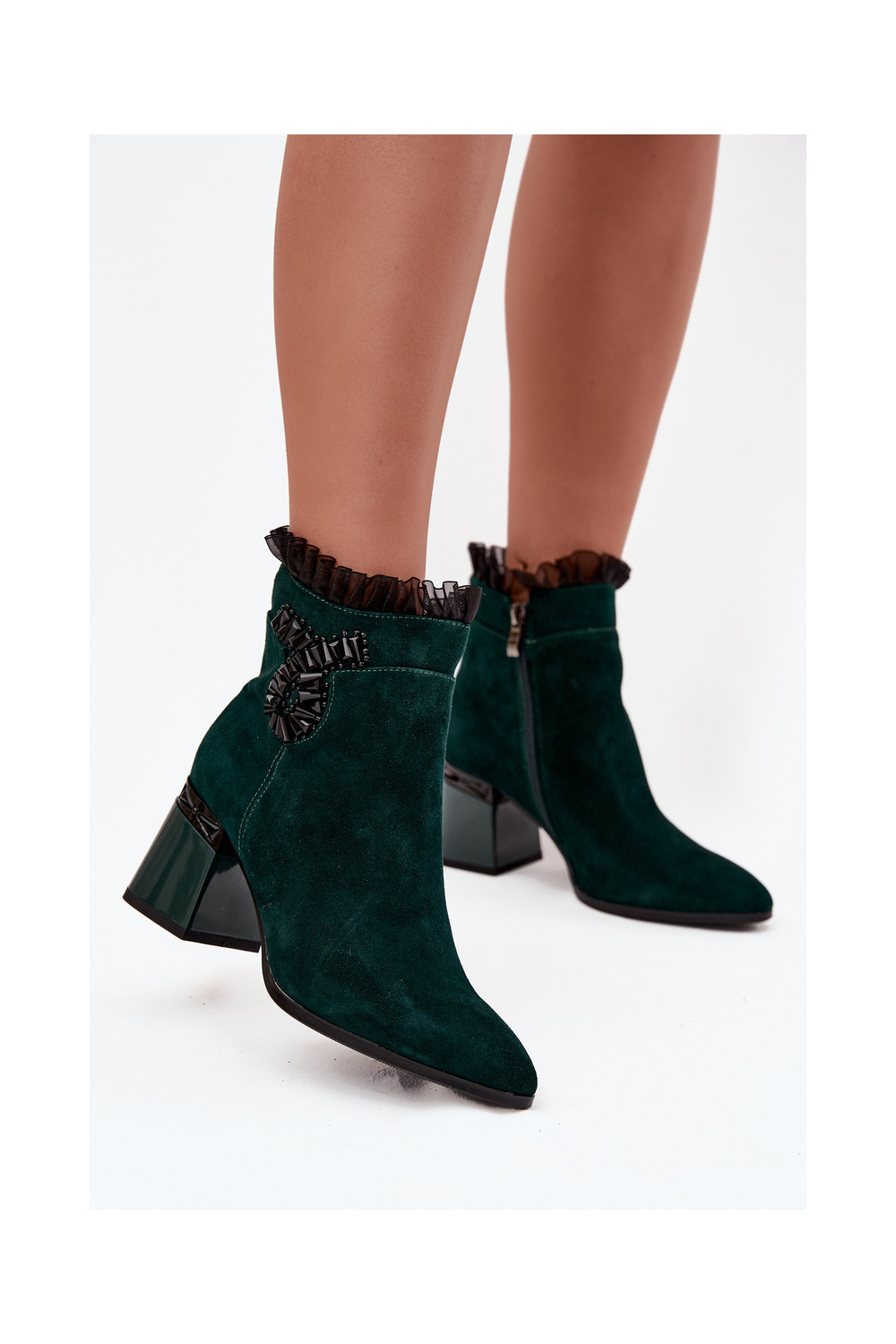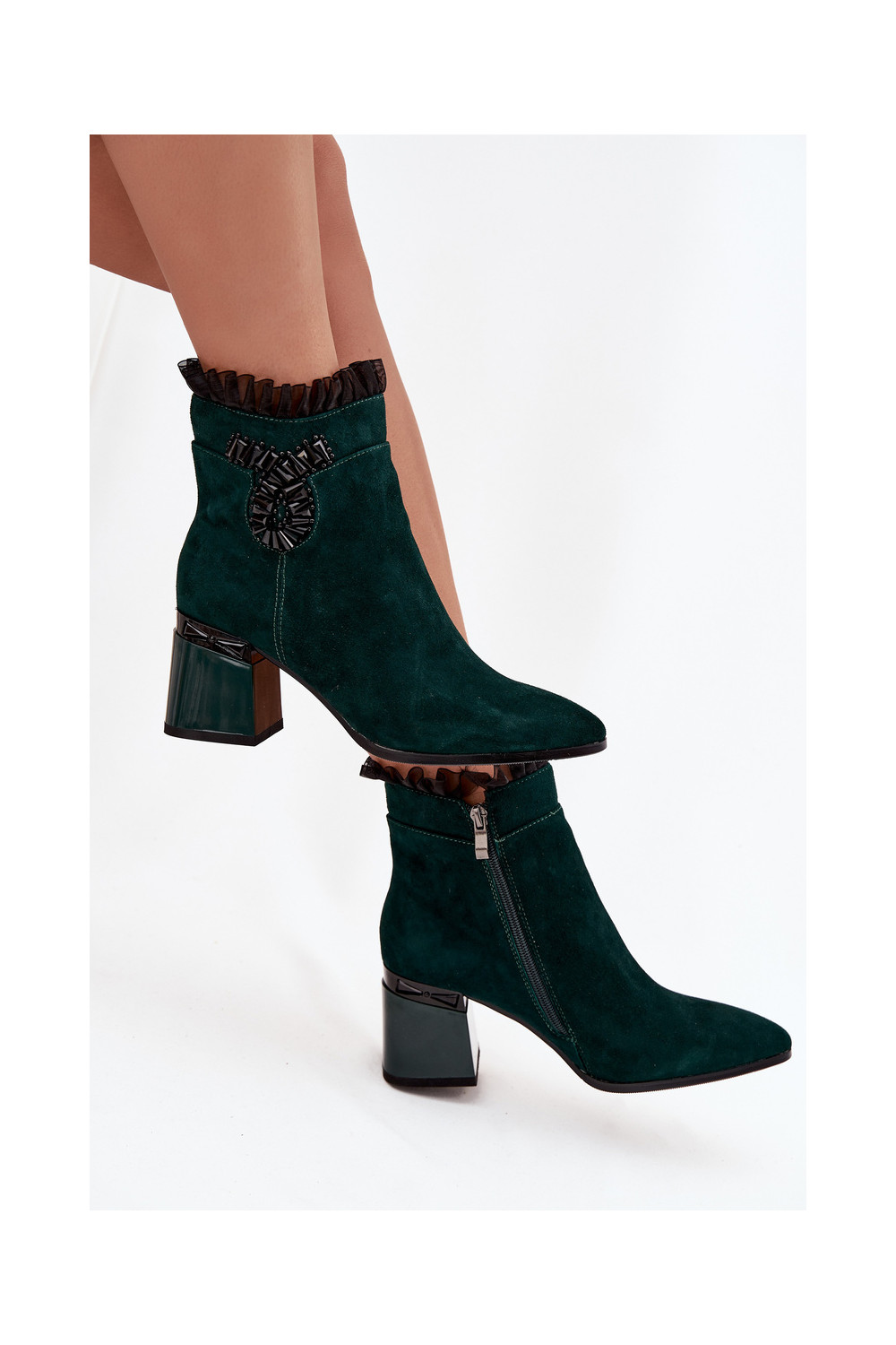 ze semiše Dámské podpatky s ornamenty zateplené D&A MR52-127 Butelkowa Zieleń