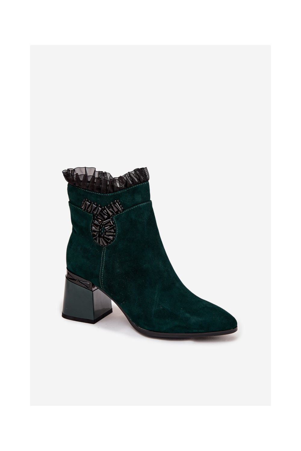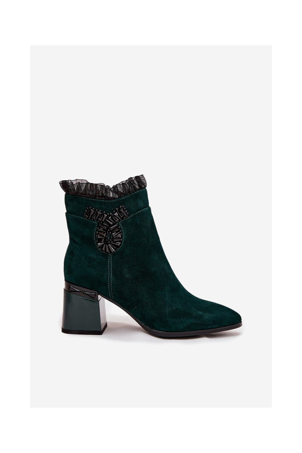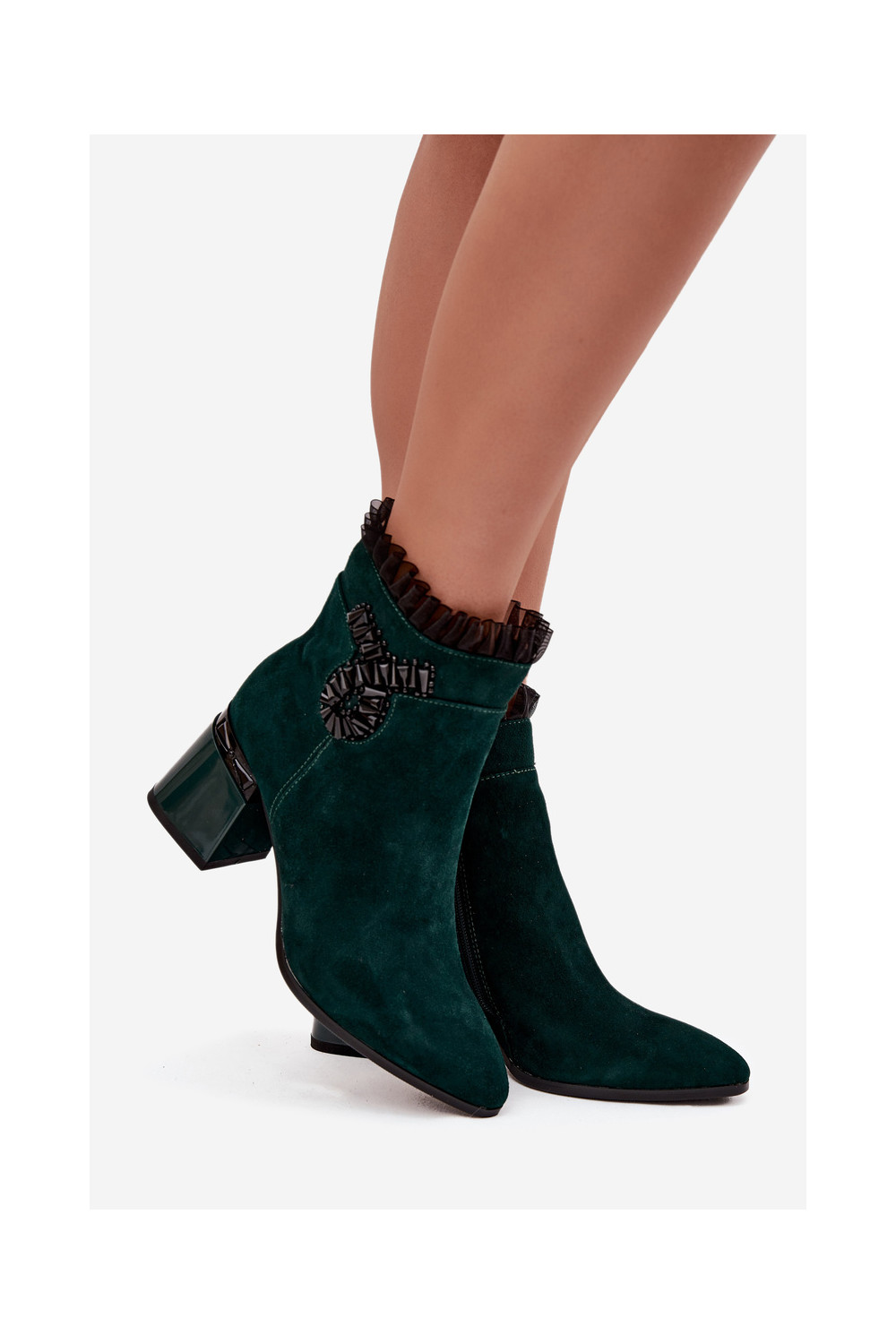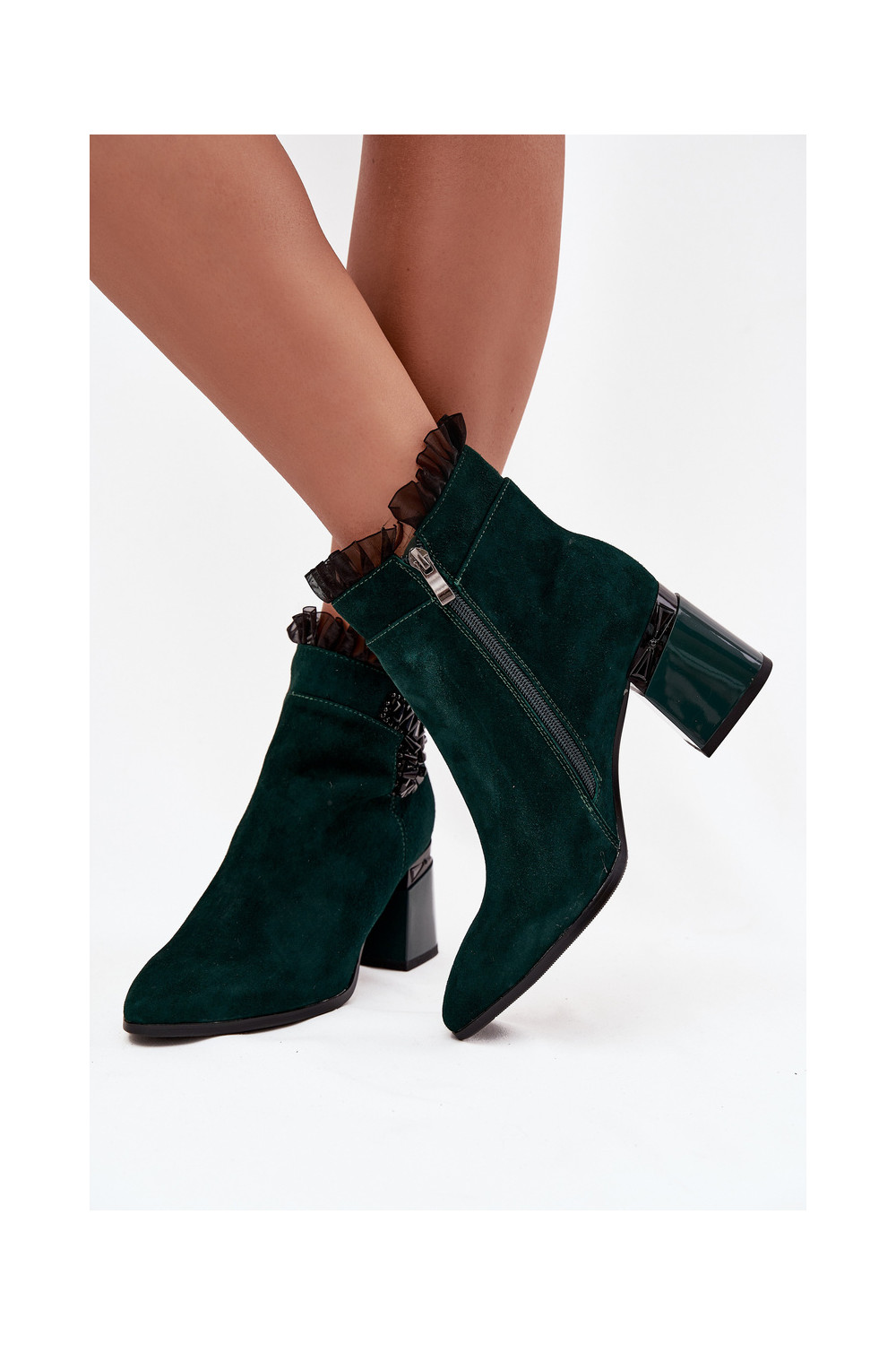 ze semiše Dámské podpatky s ornamenty zateplené D&A MR52-127 Butelkowa Zieleń