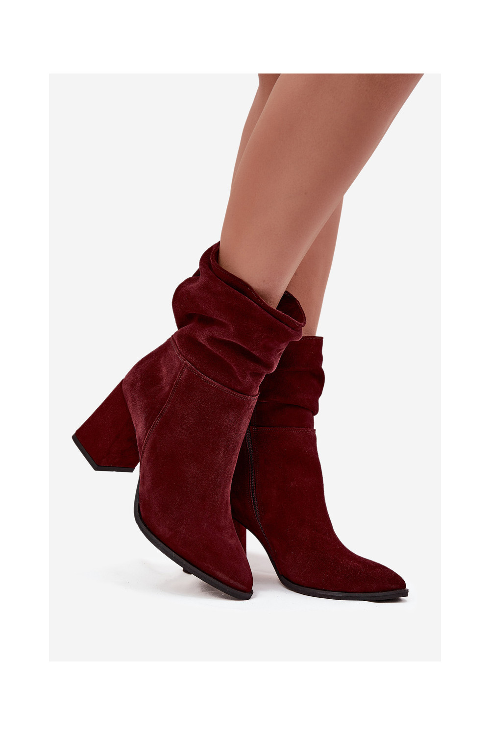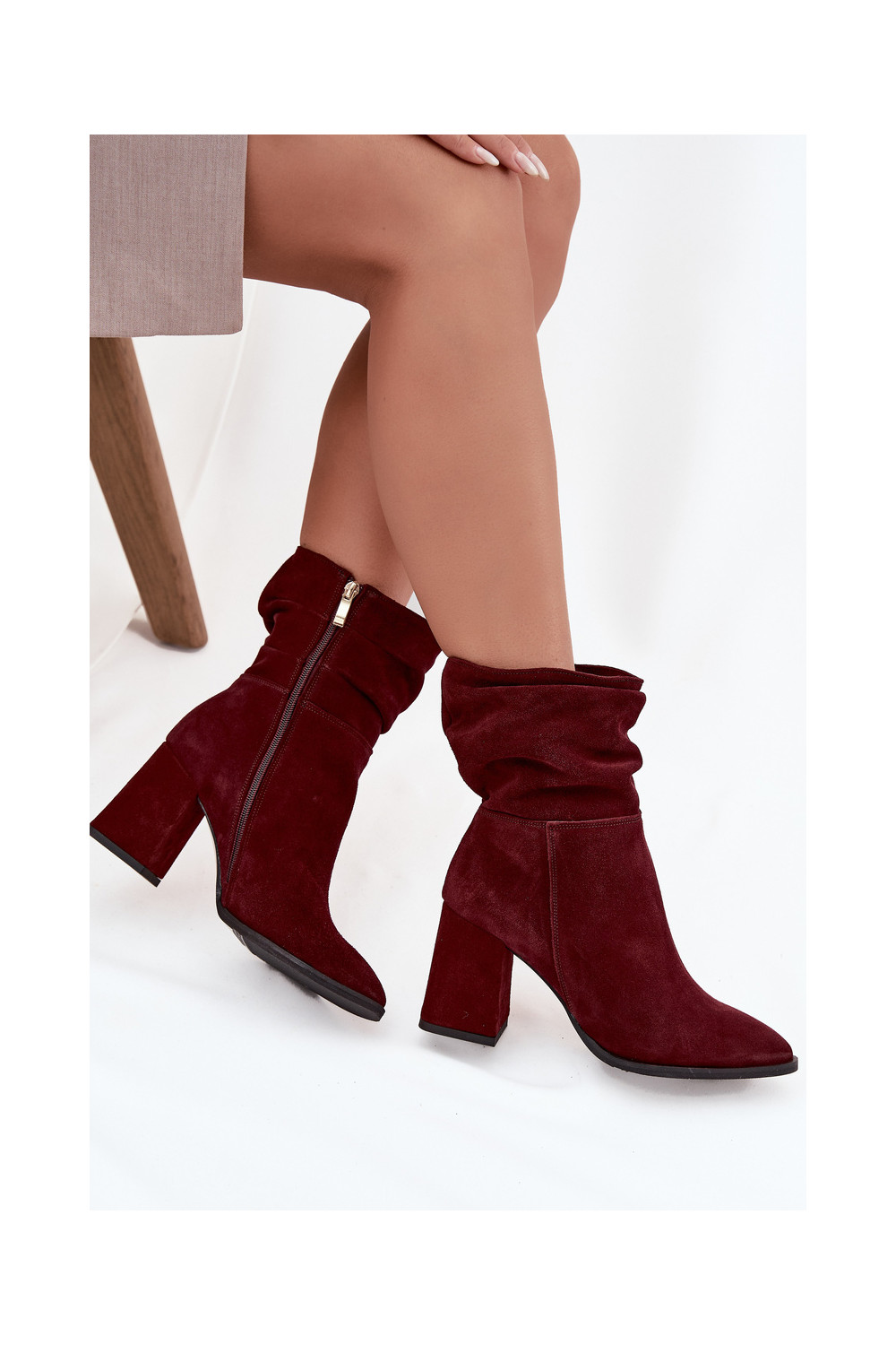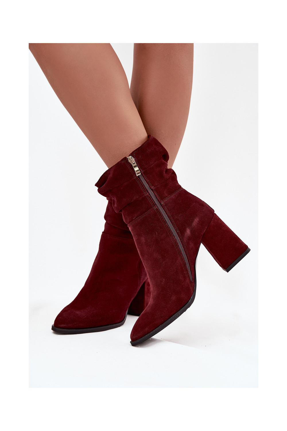 Dřeváky Z Naturalnego Zamszu zateplené s podpatky Zazoo 4216 vínová