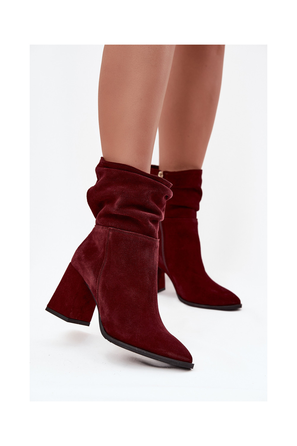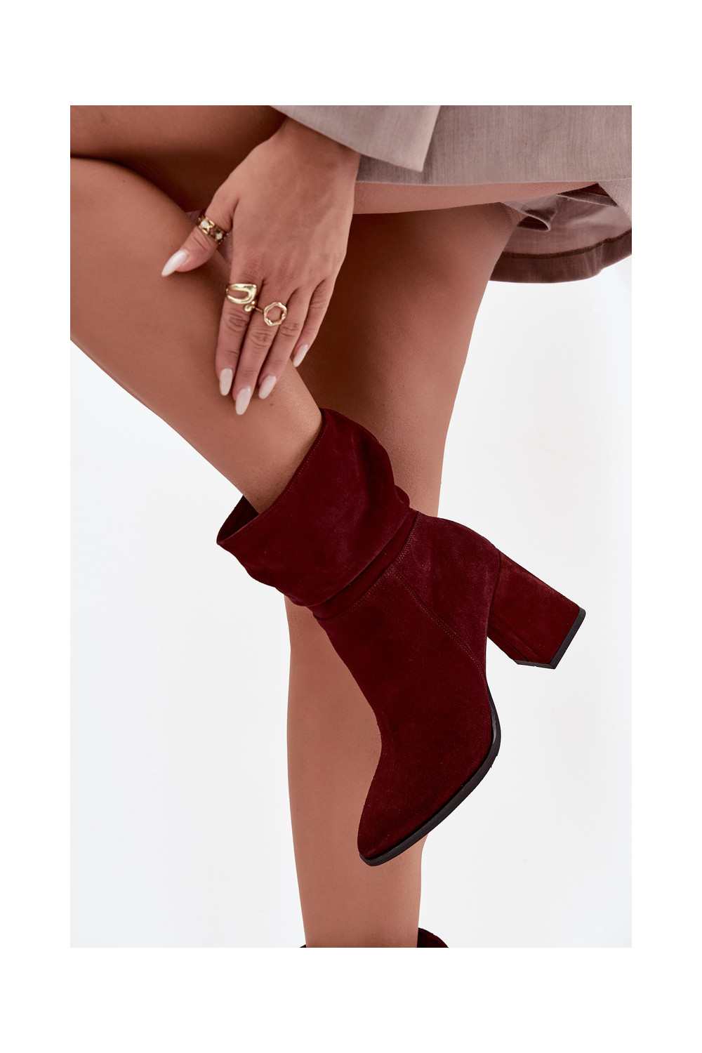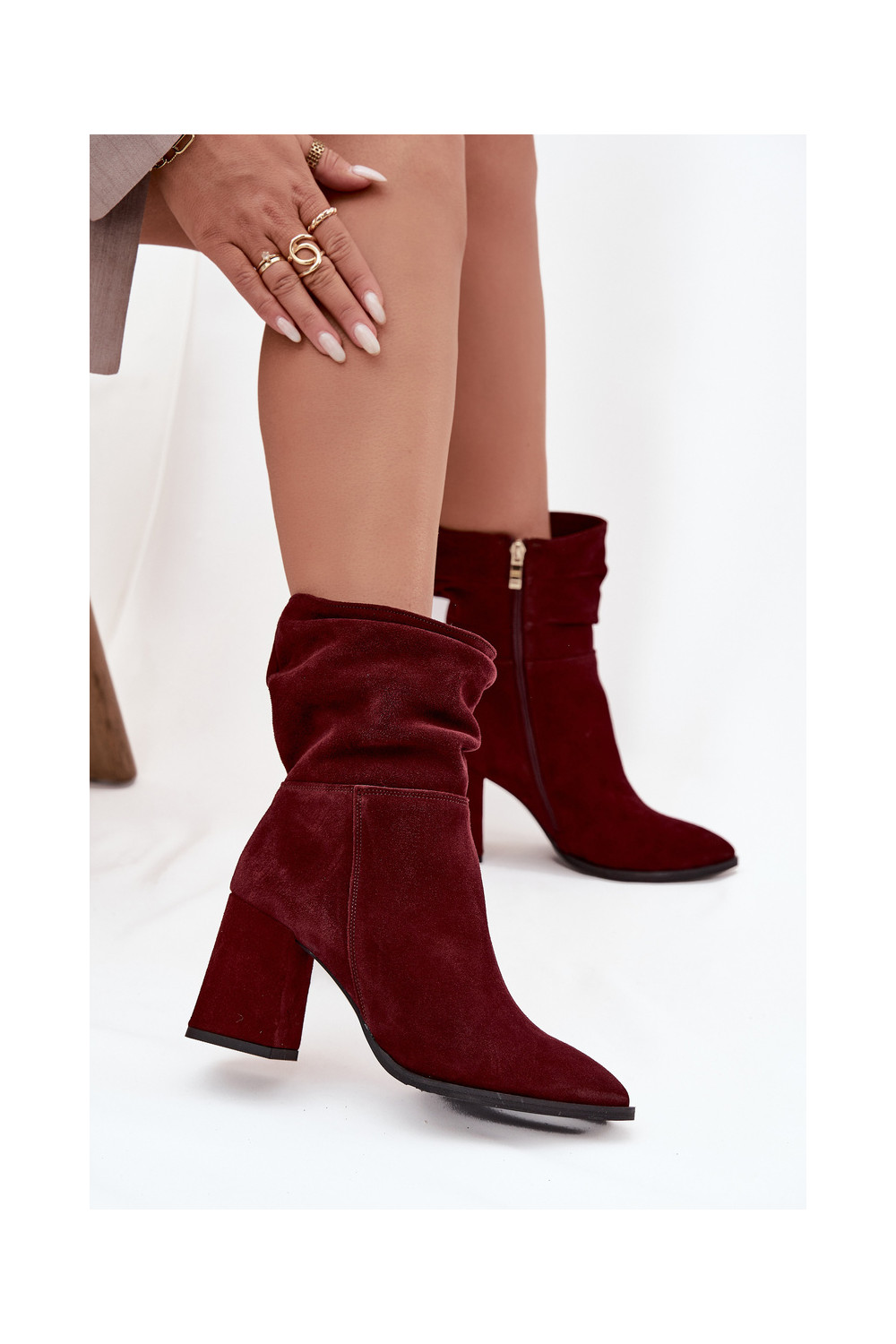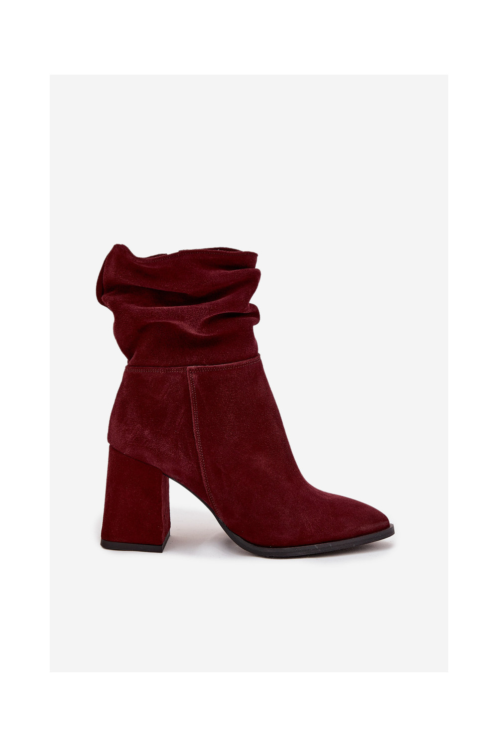 Dřeváky Z Naturalnego Zamszu zateplené s podpatky Zazoo 4216 vínová